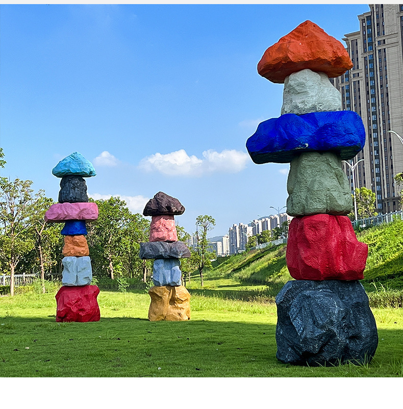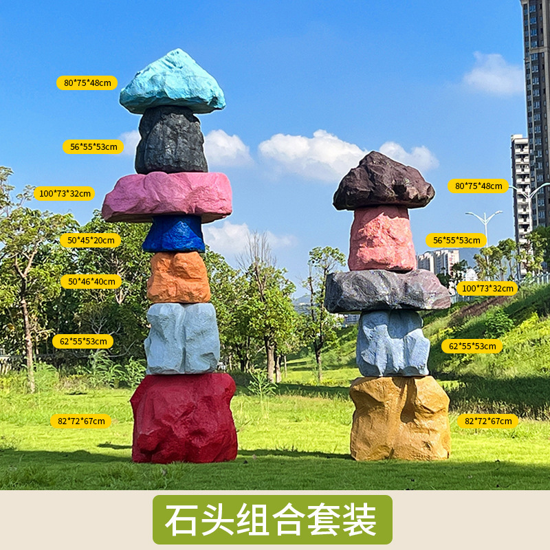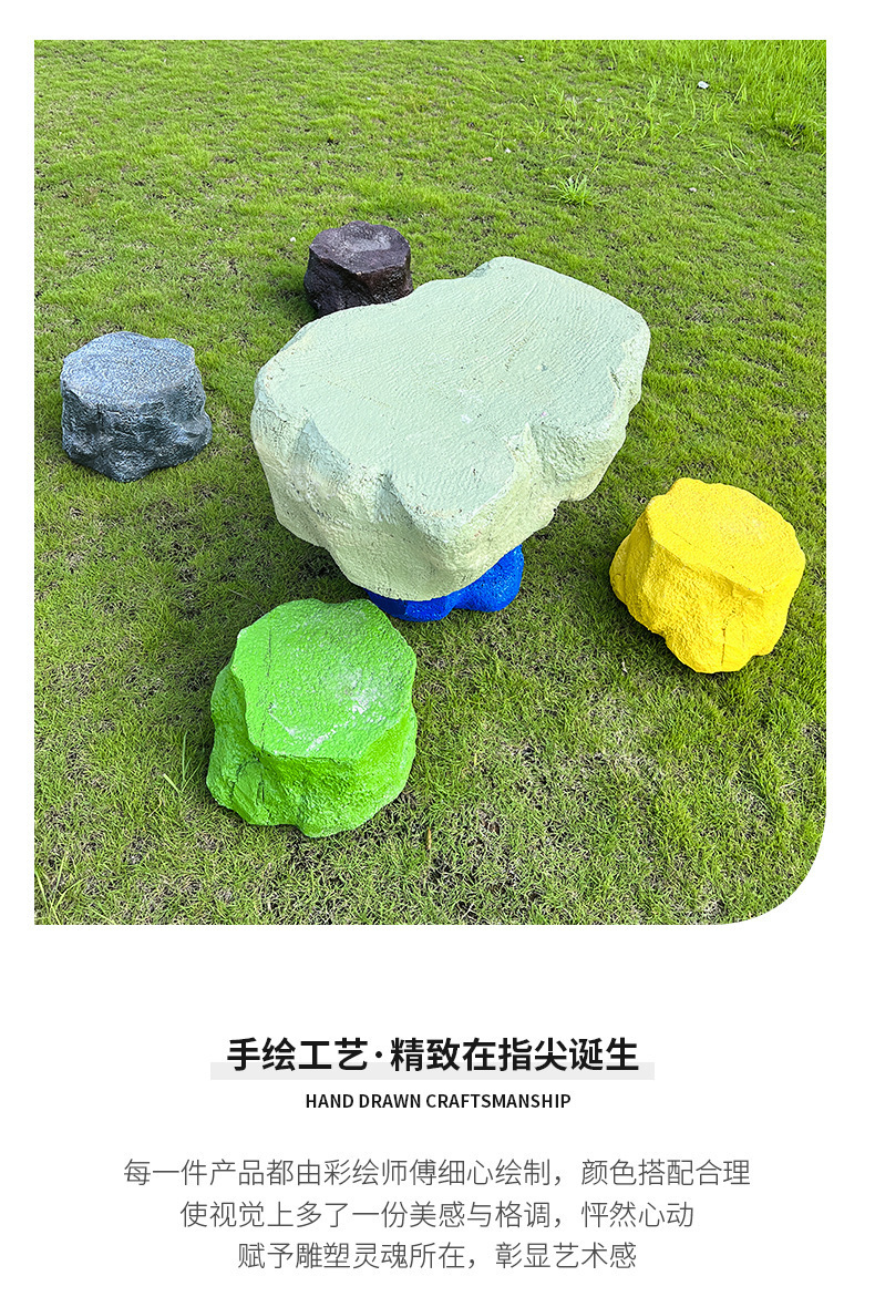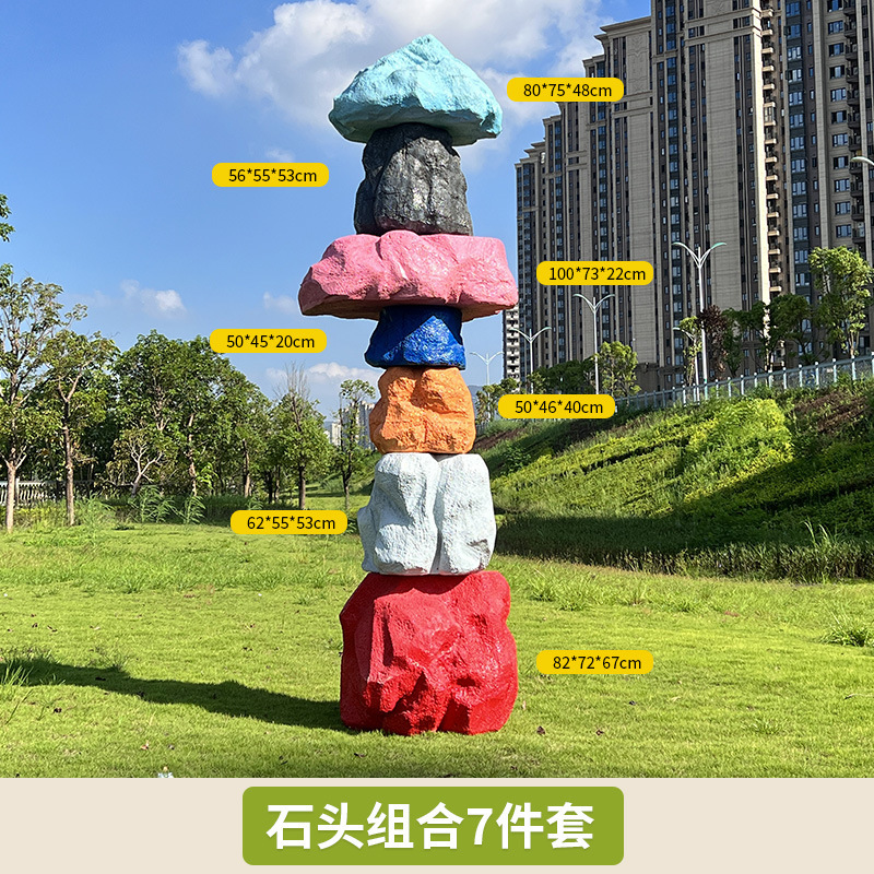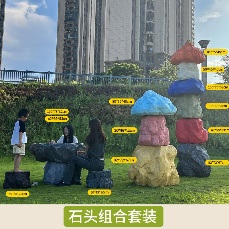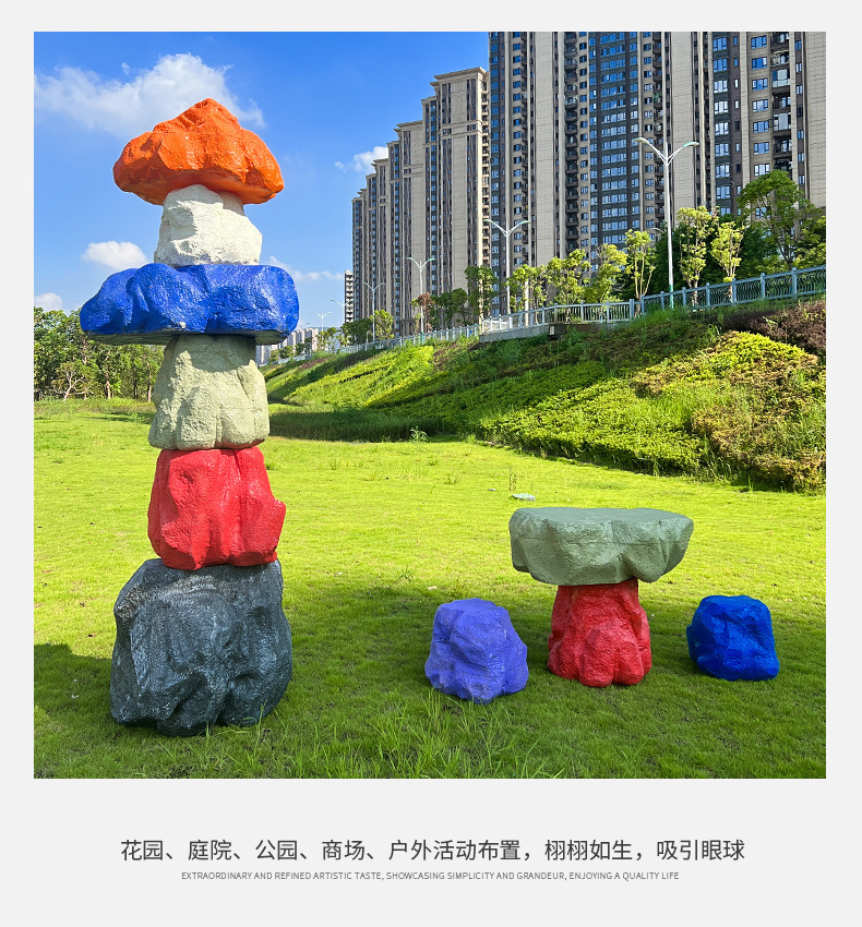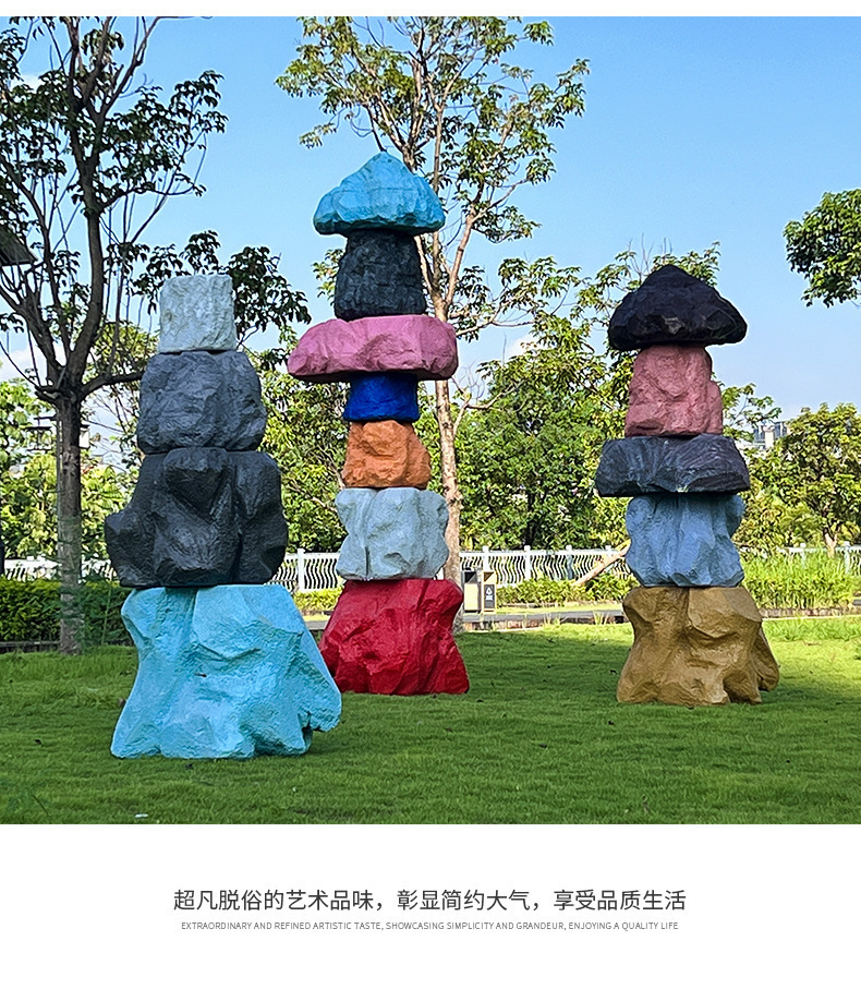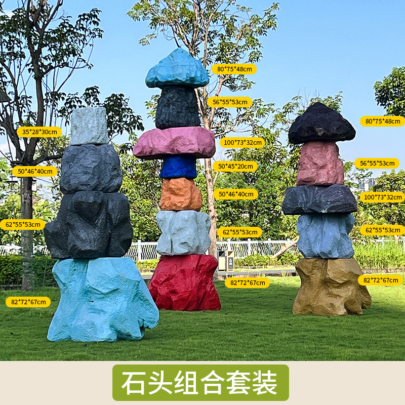 户外网红彩色石头座椅雕塑玻璃钢仿真造景庭院景区草坪装饰大摆件
