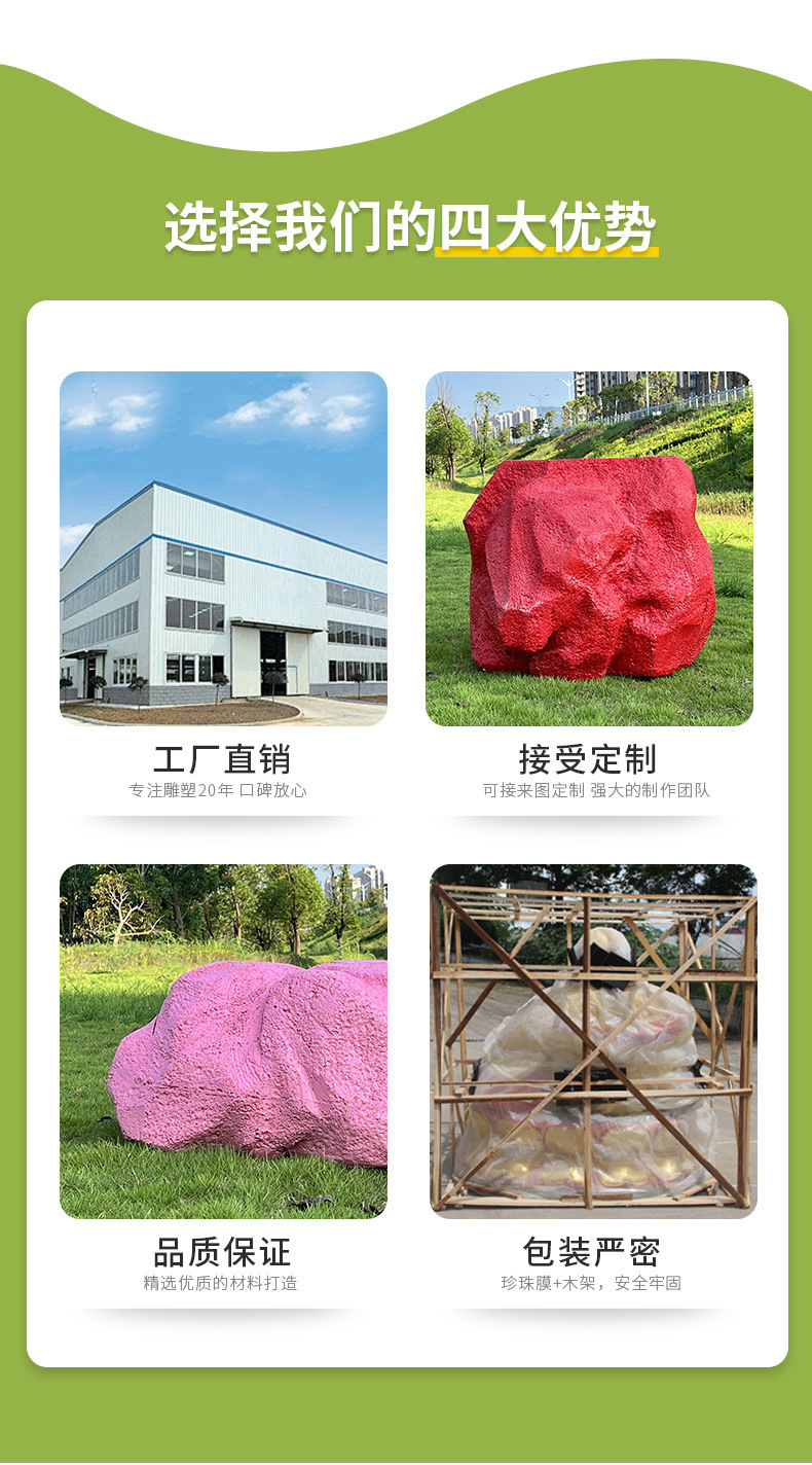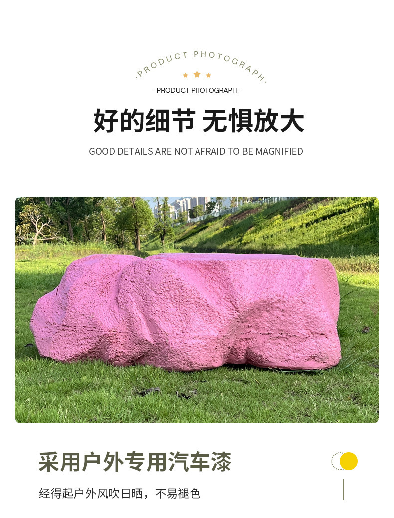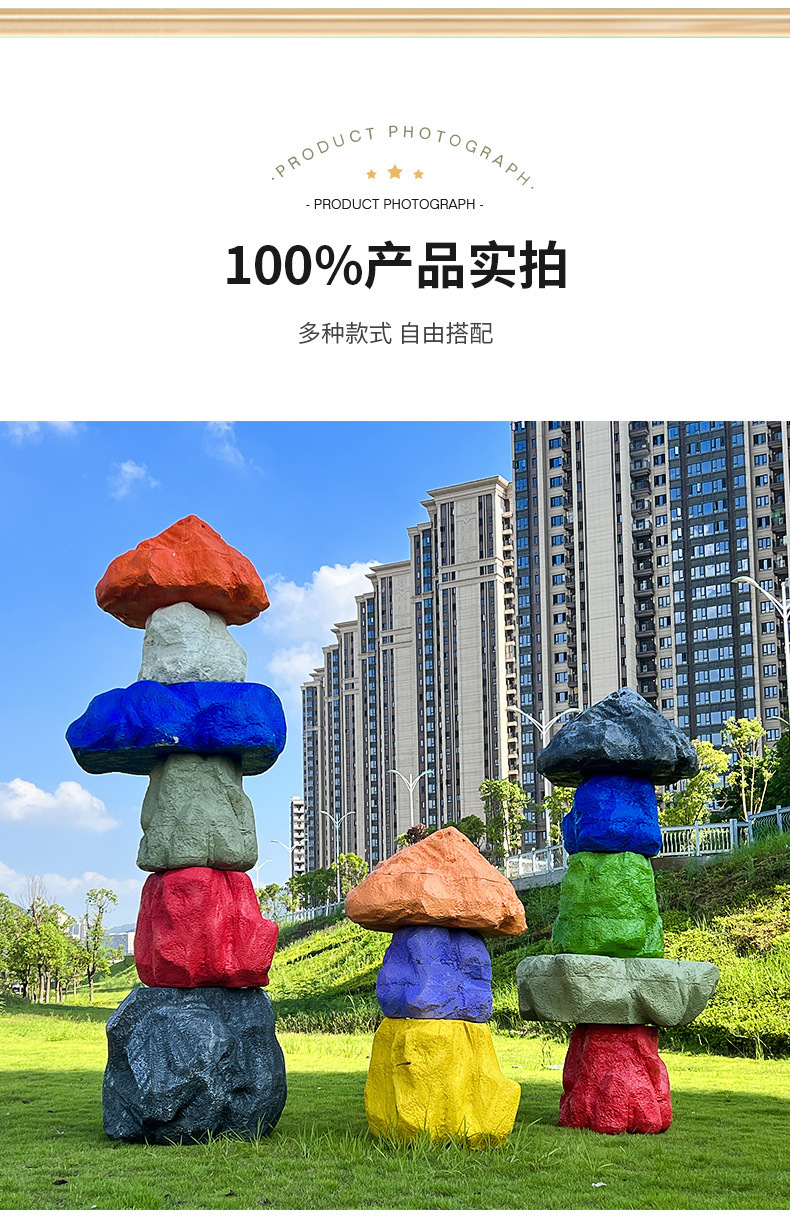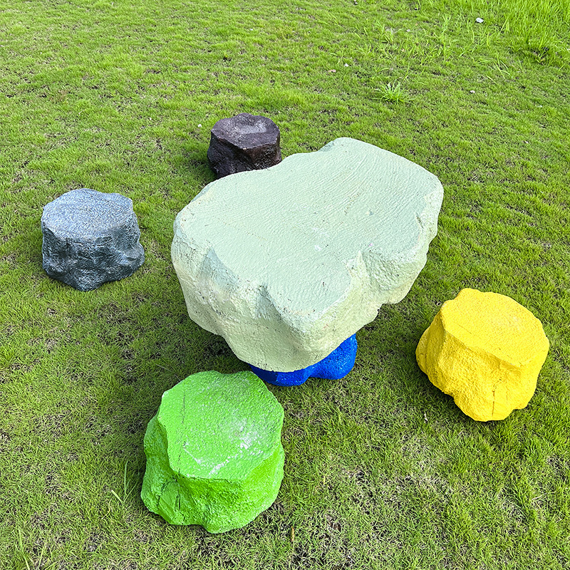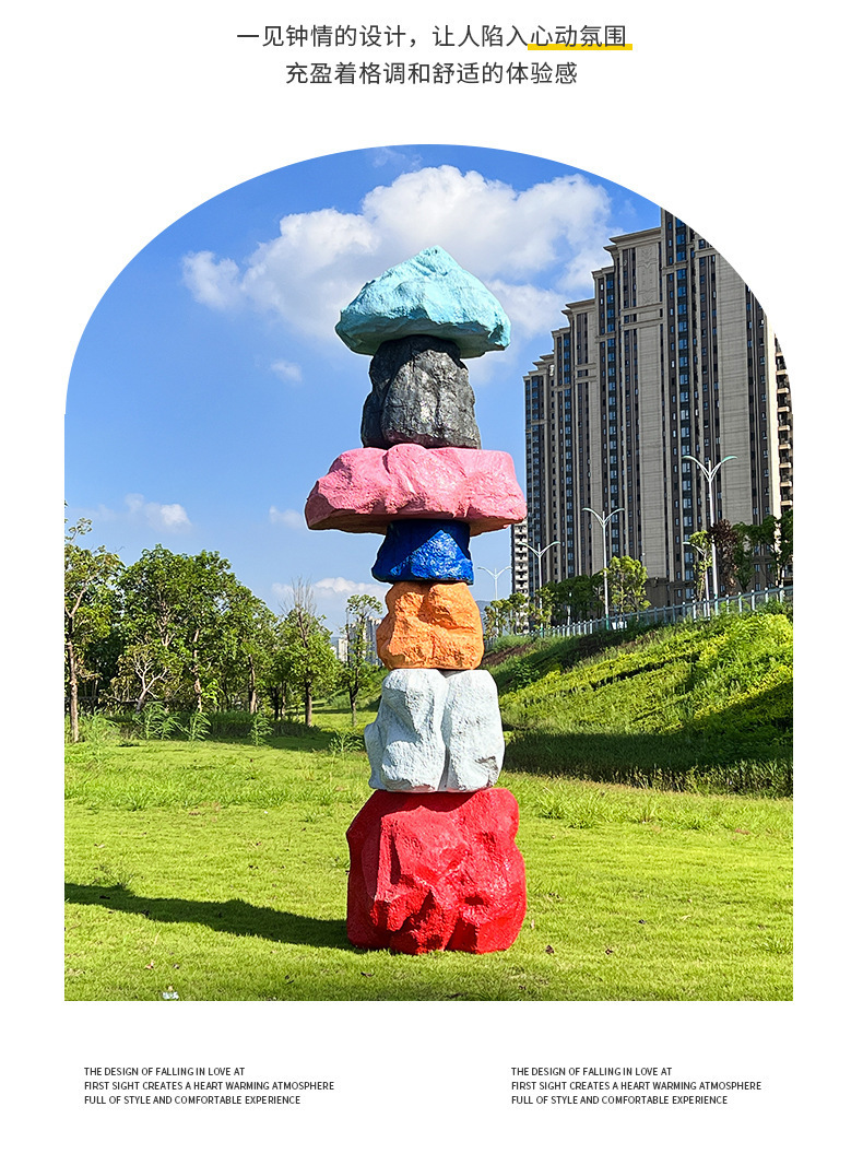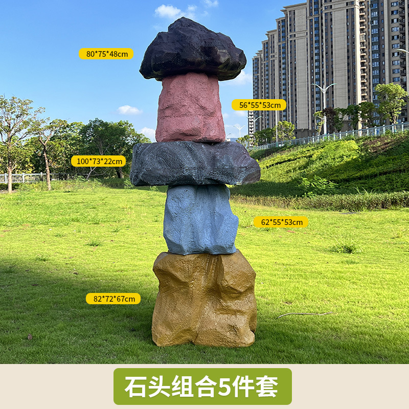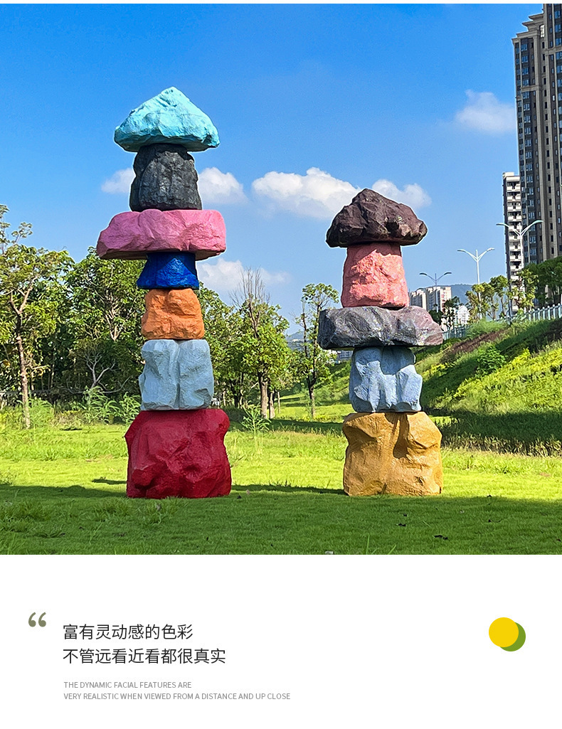 户外网红彩色石头座椅雕塑玻璃钢仿真造景庭院景区草坪装饰大摆件