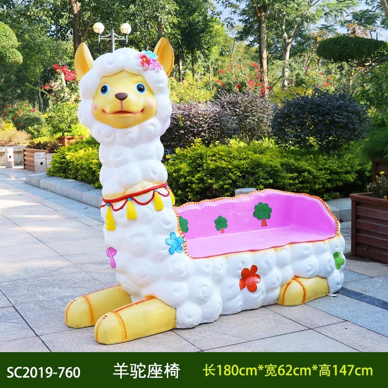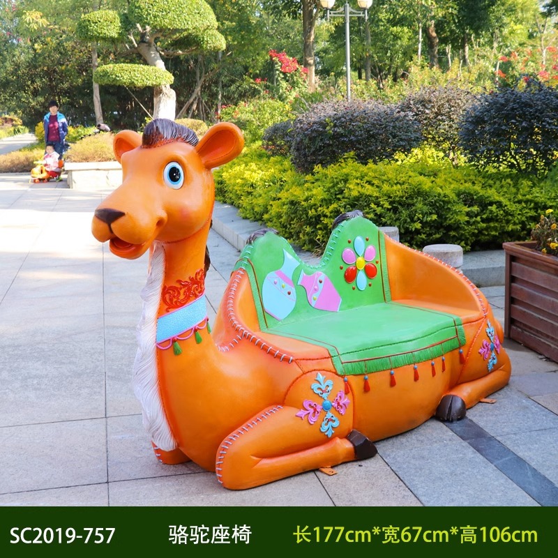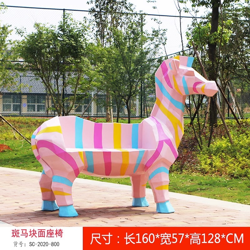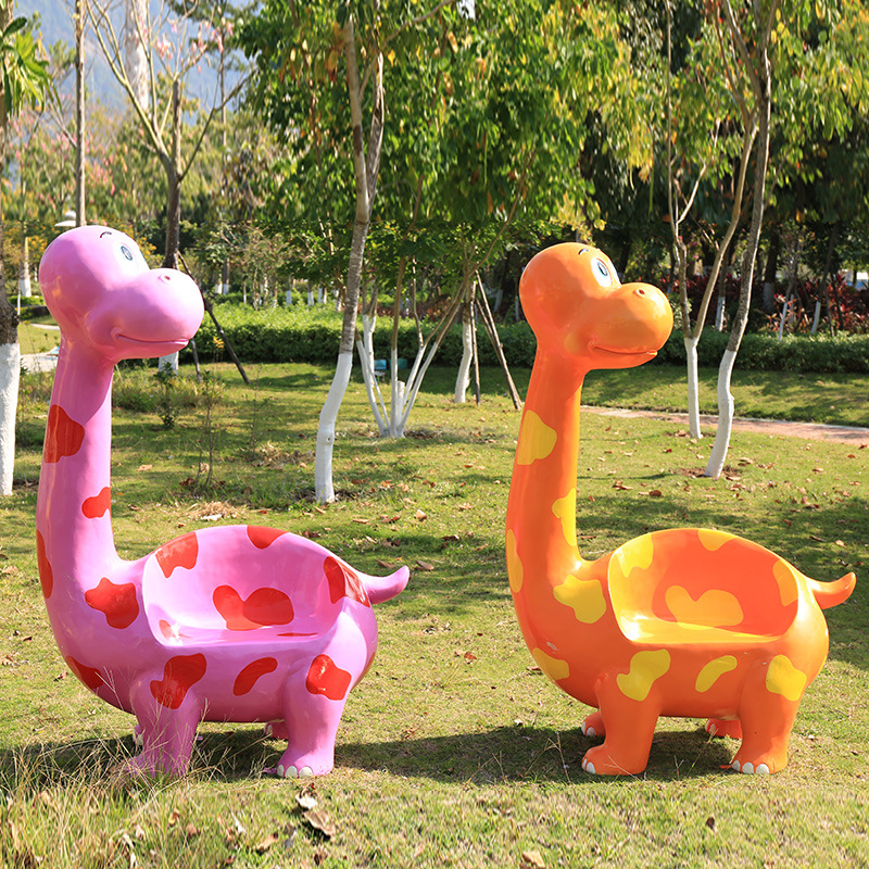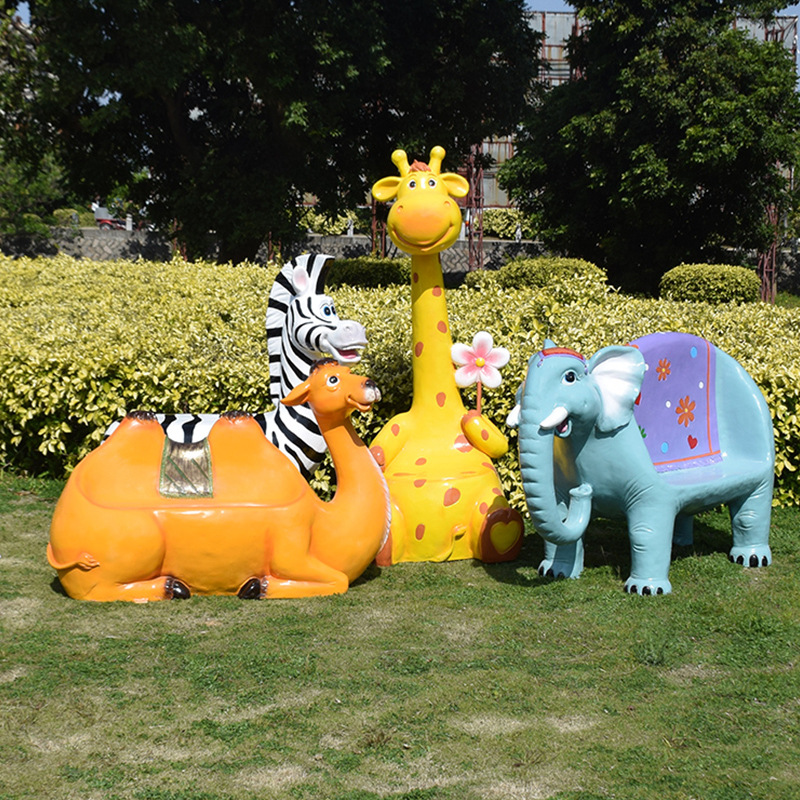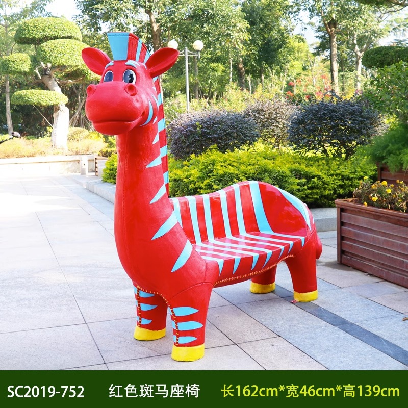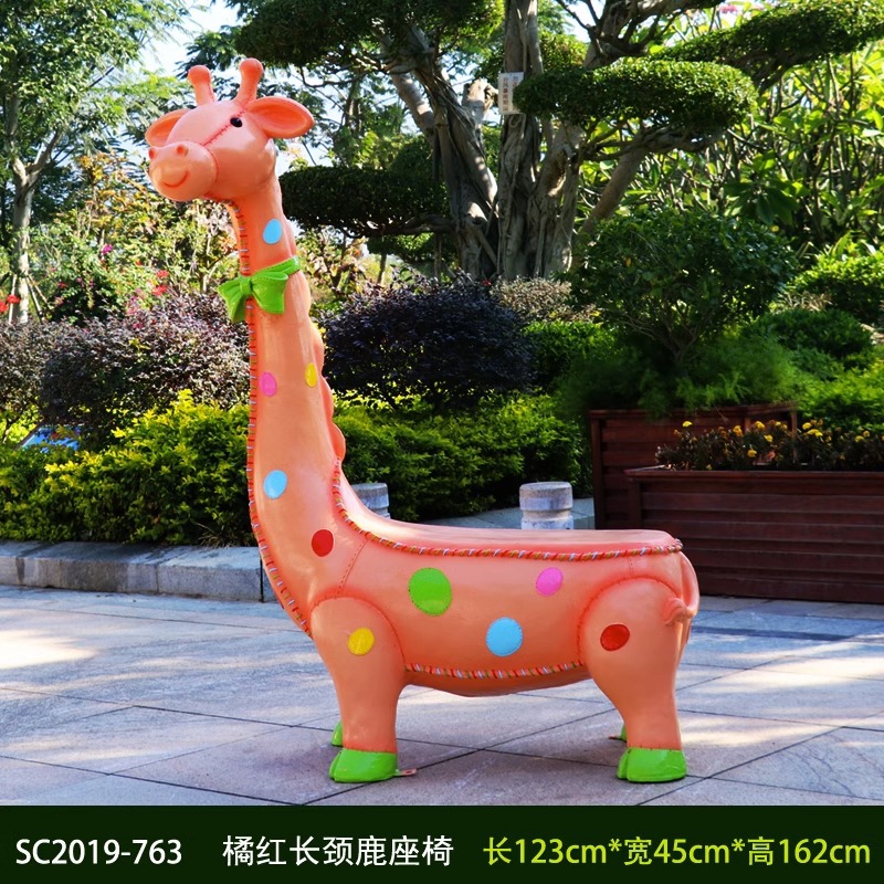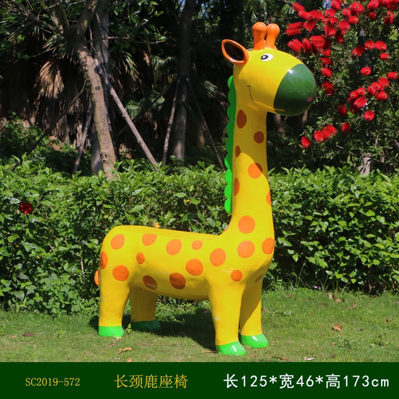 卡通长颈鹿动物座椅雕塑户外大摆件玻璃钢幼儿园景区园林休闲坐凳