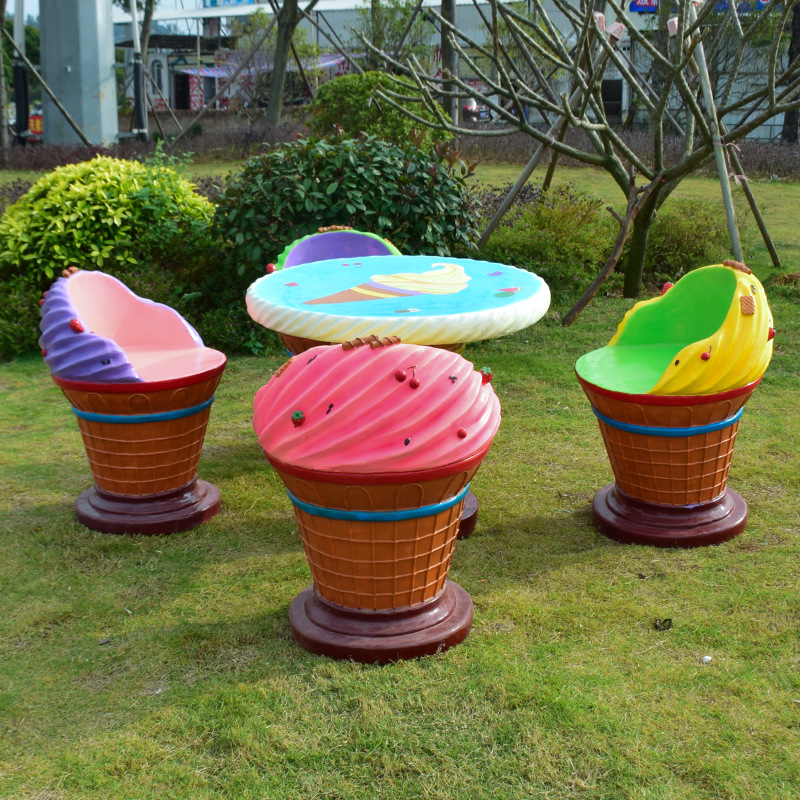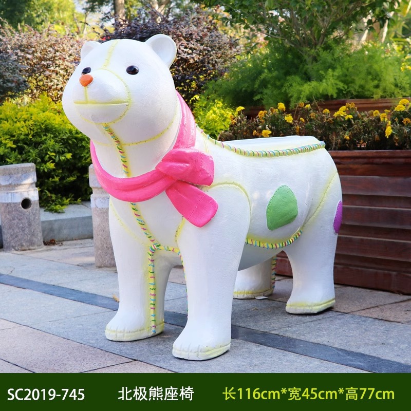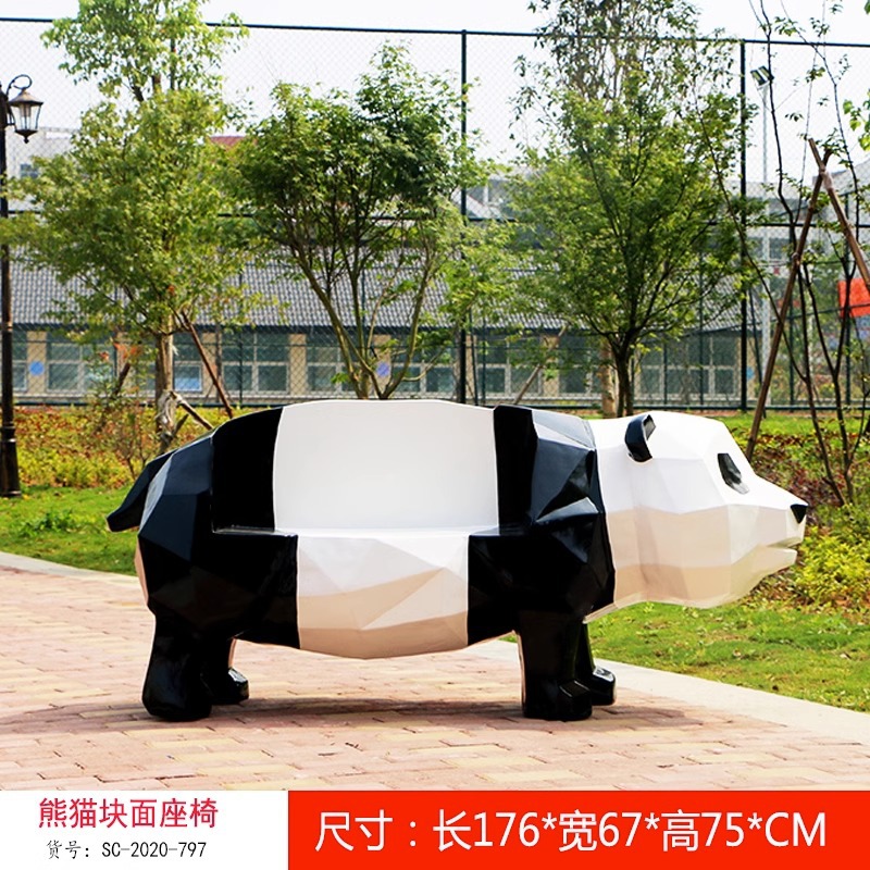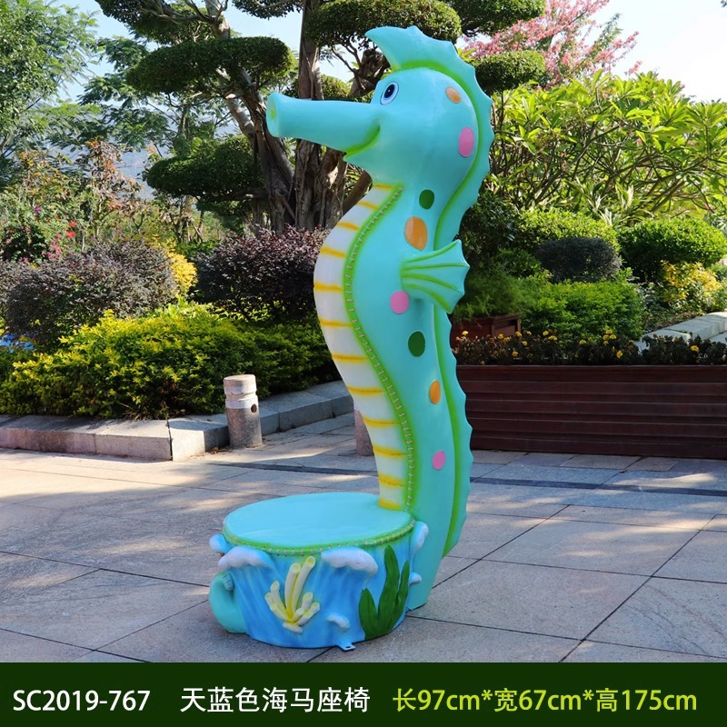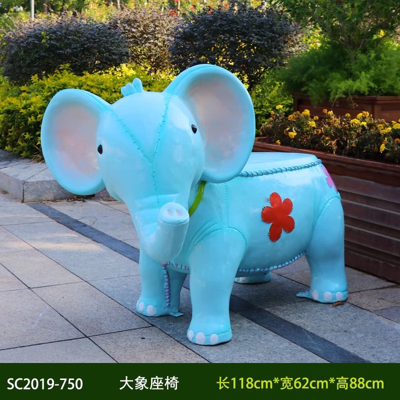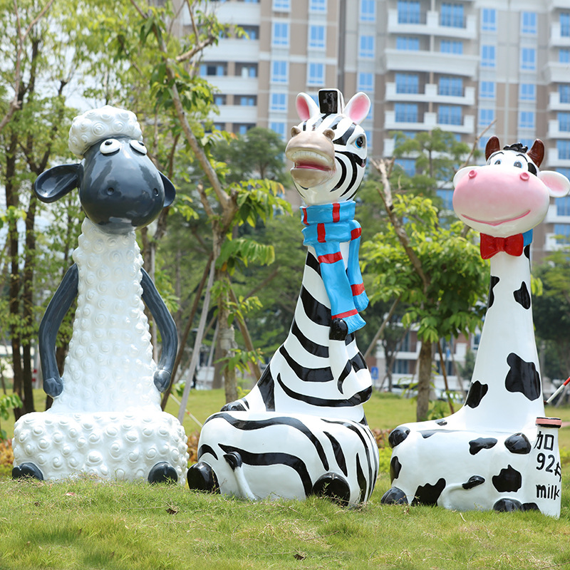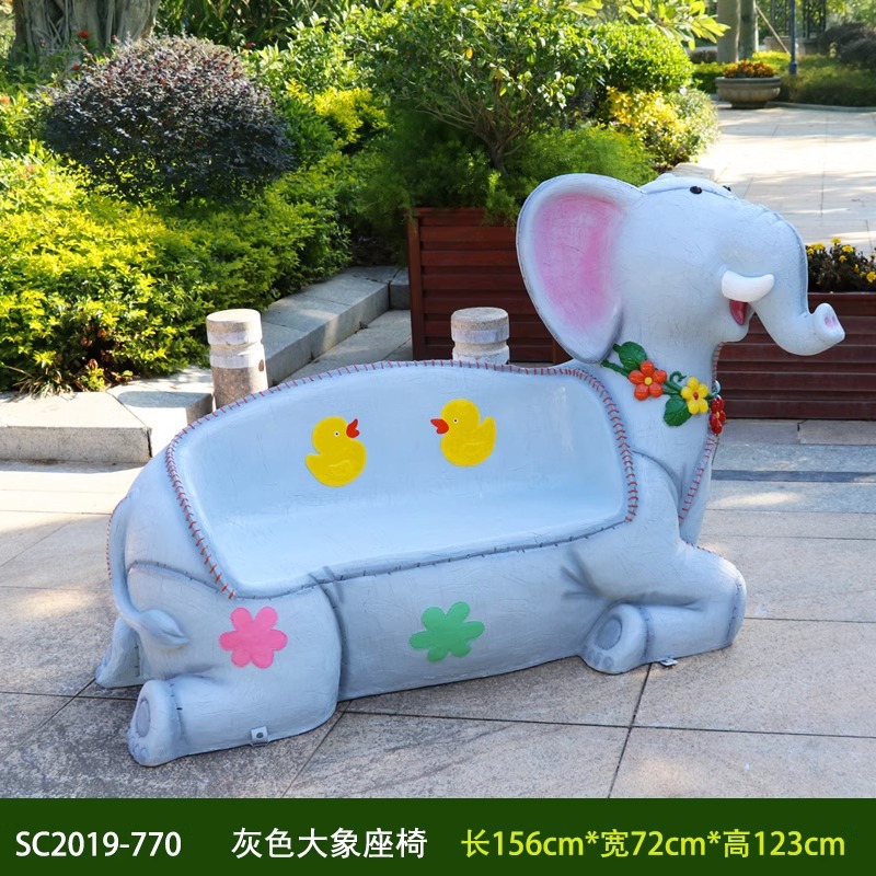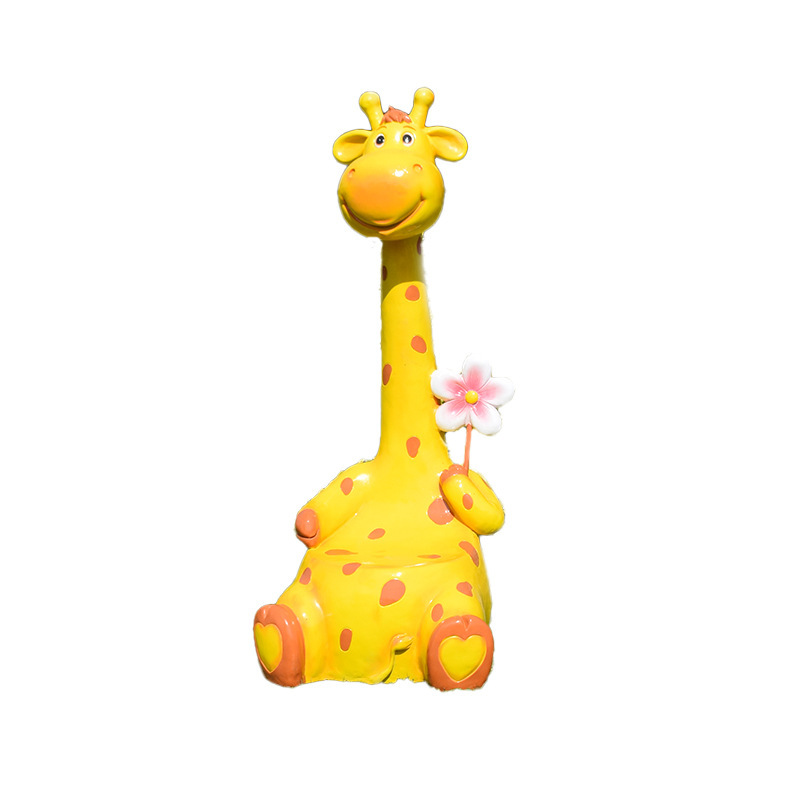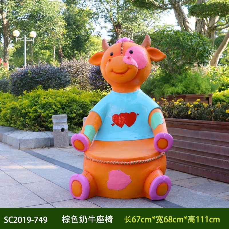 卡通长颈鹿动物座椅雕塑户外大摆件玻璃钢幼儿园景区园林休闲坐凳