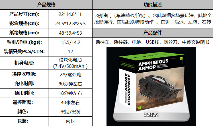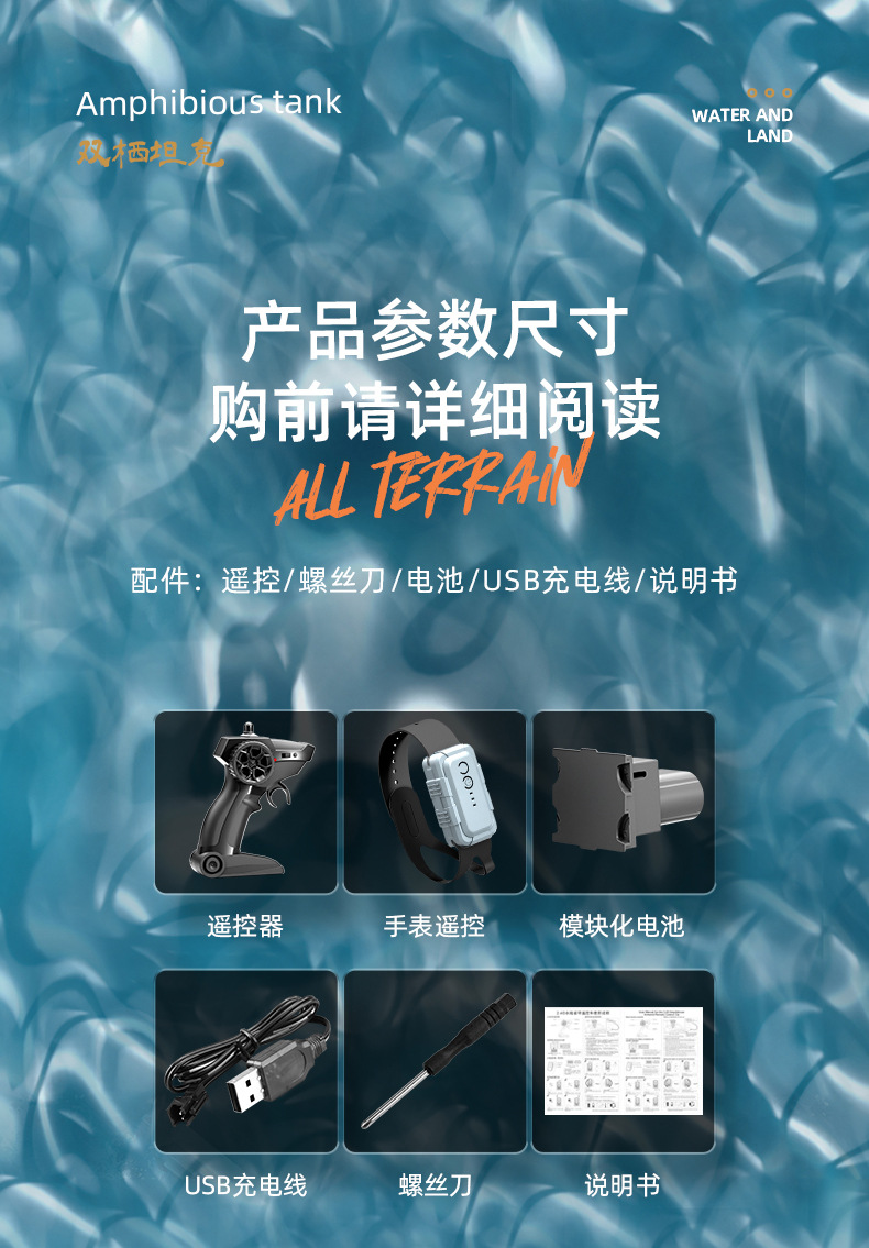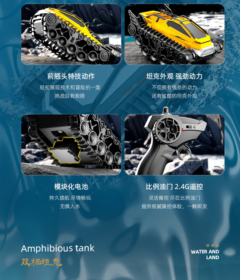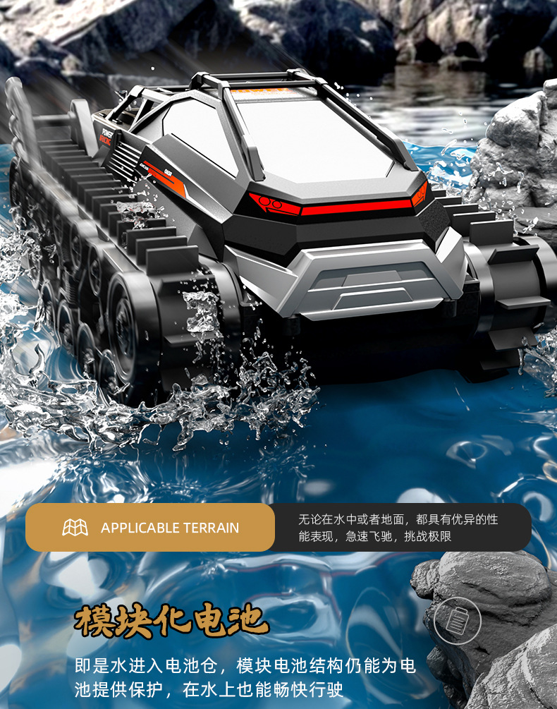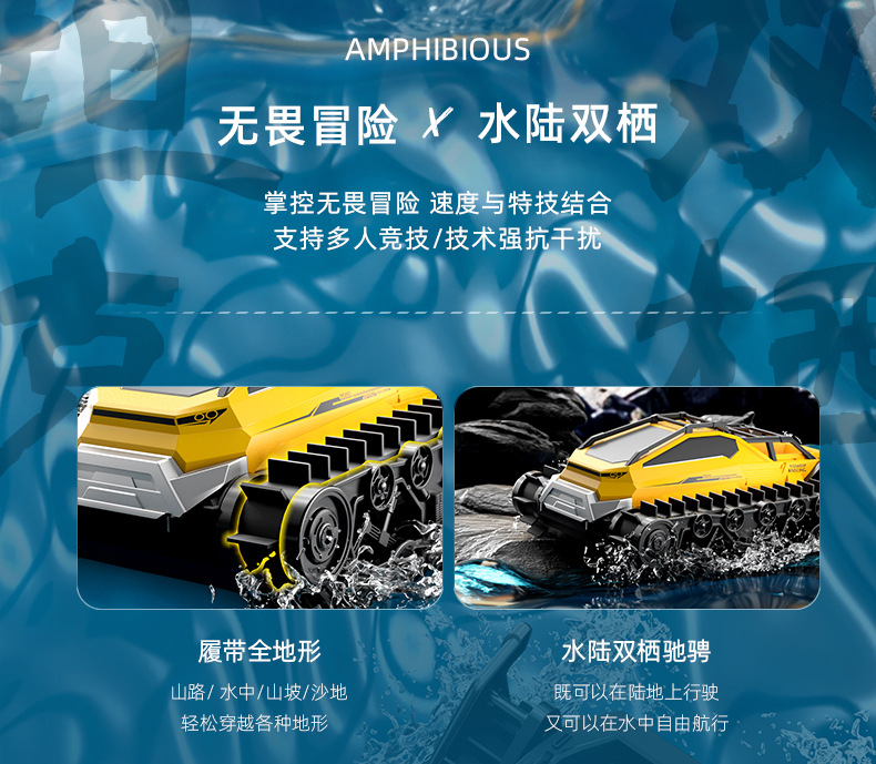 JJRC新款水陆两栖2.4G遥控车 儿童夏季水上玩具特技防水履带坦克