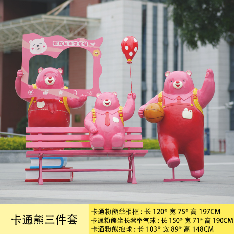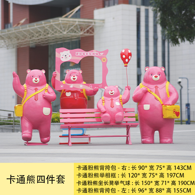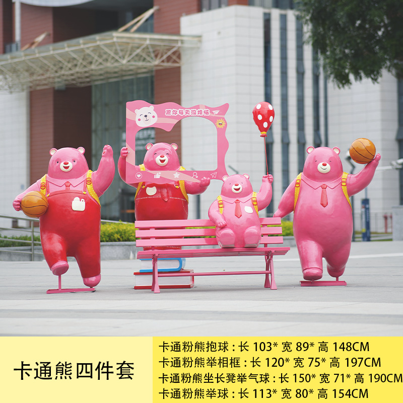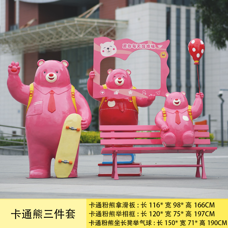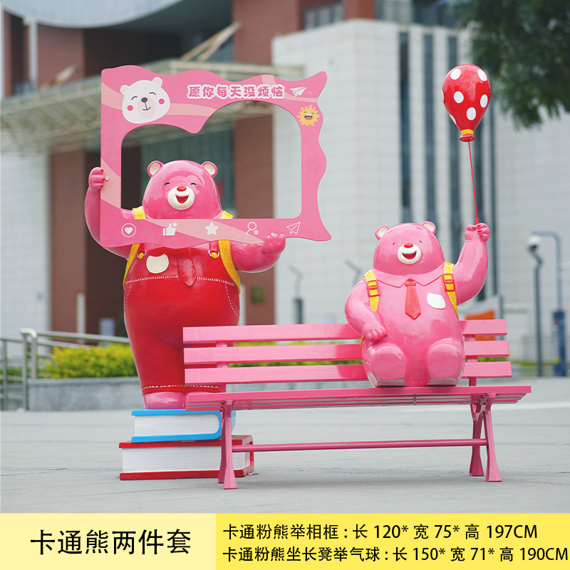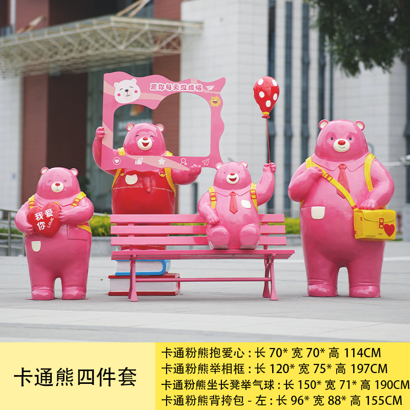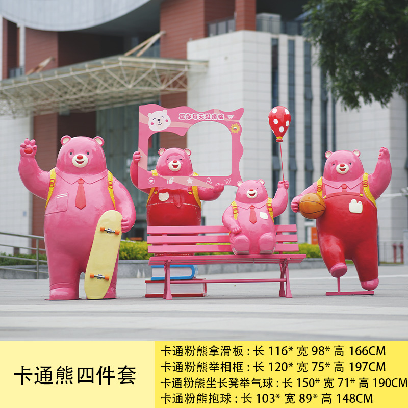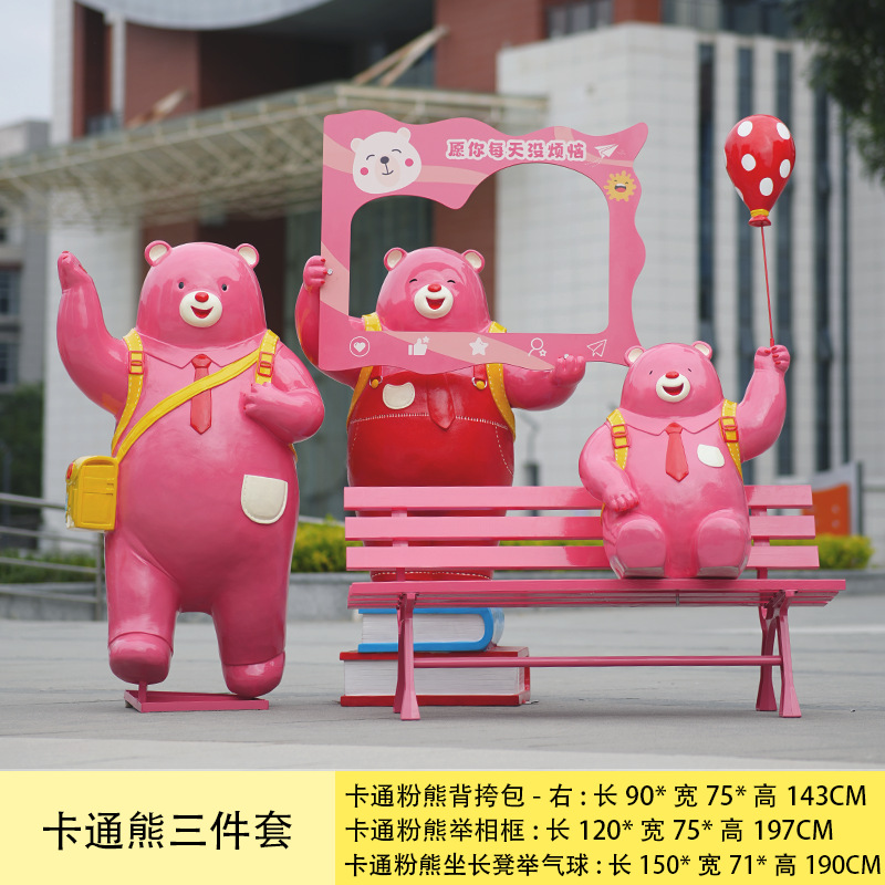 户外网红卡通熊玻璃钢雕塑园林游乐场商场打卡拍照美陈装饰大摆件