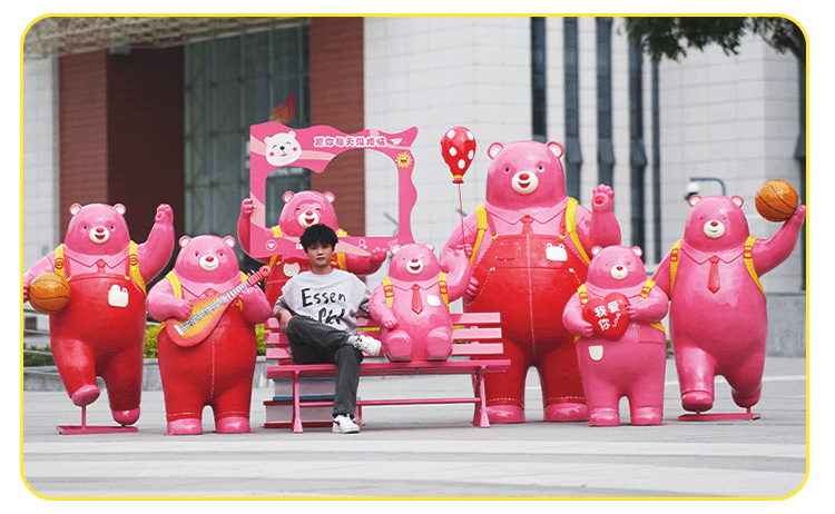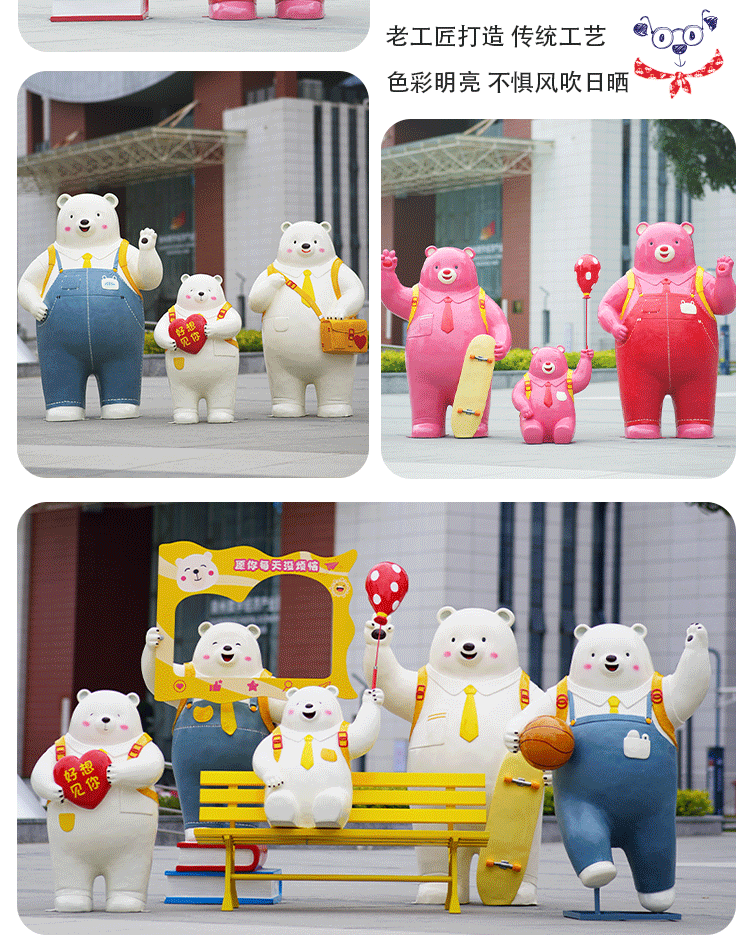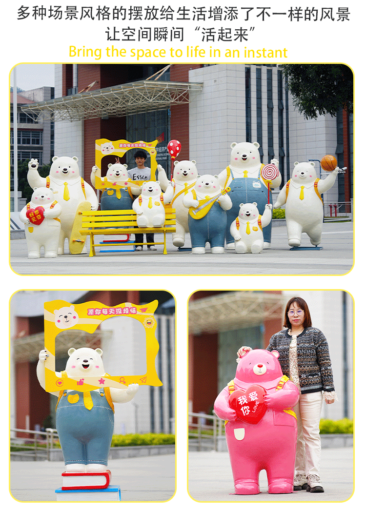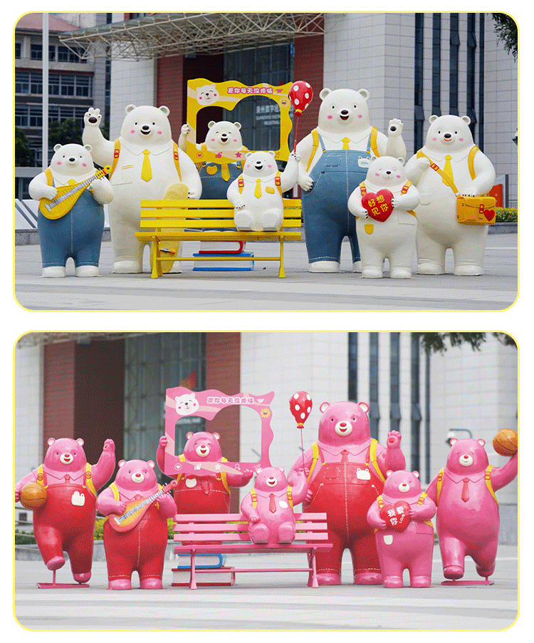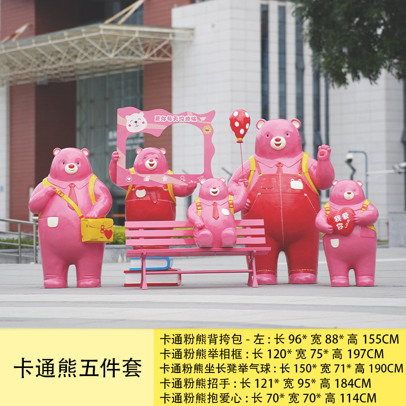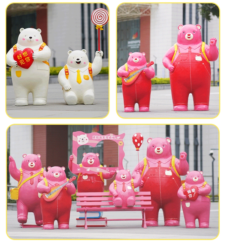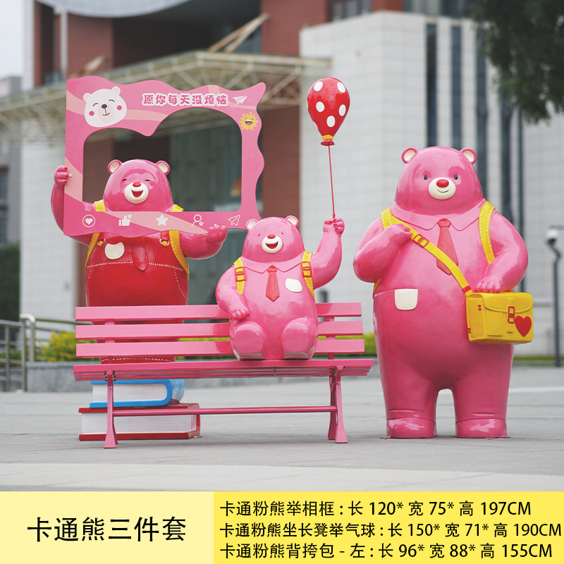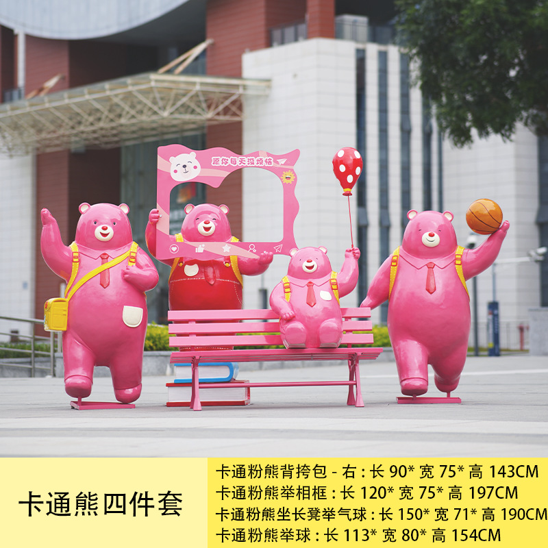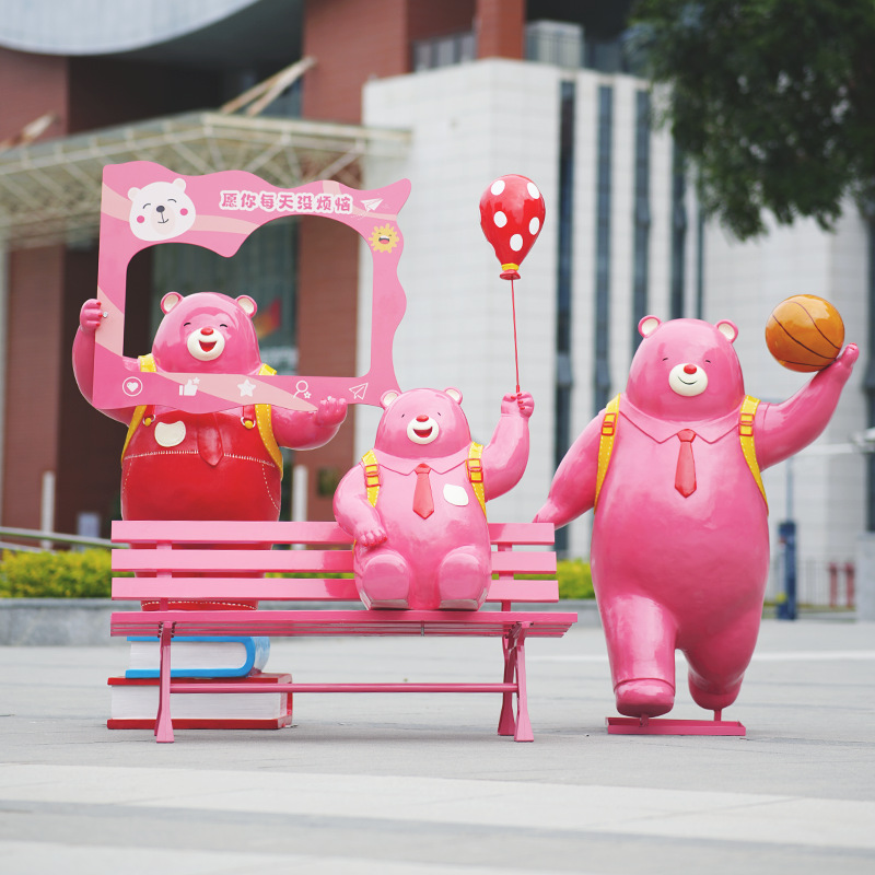 户外网红卡通熊玻璃钢雕塑园林游乐场商场打卡拍照美陈装饰大摆件