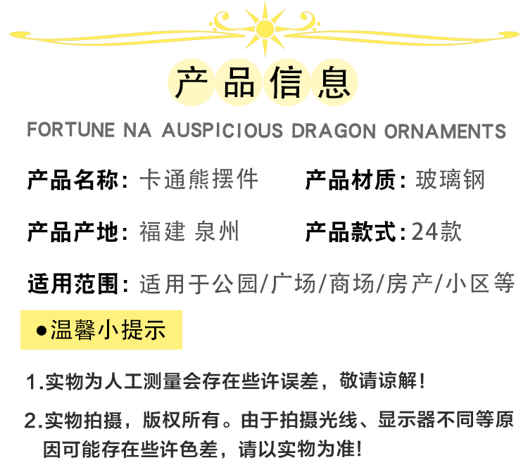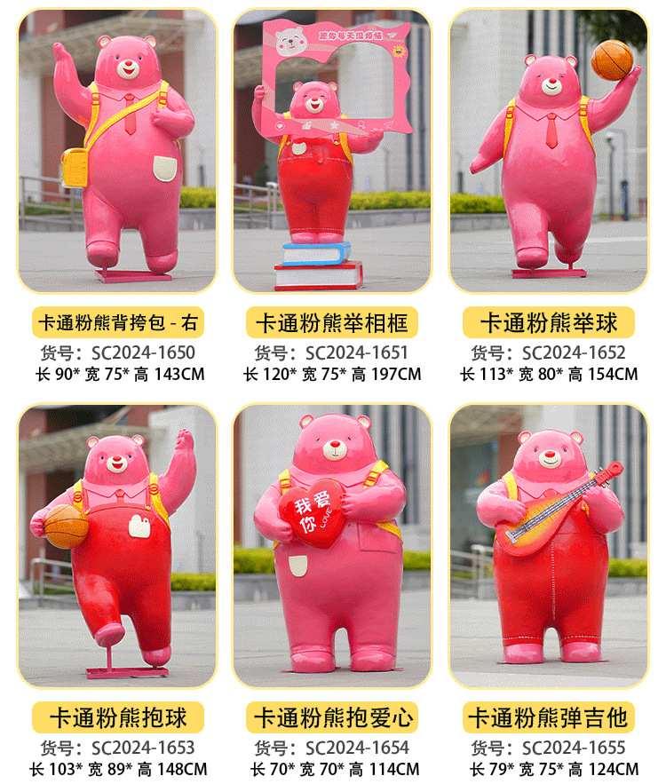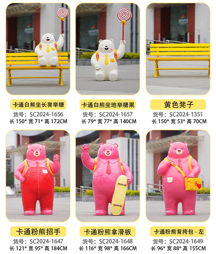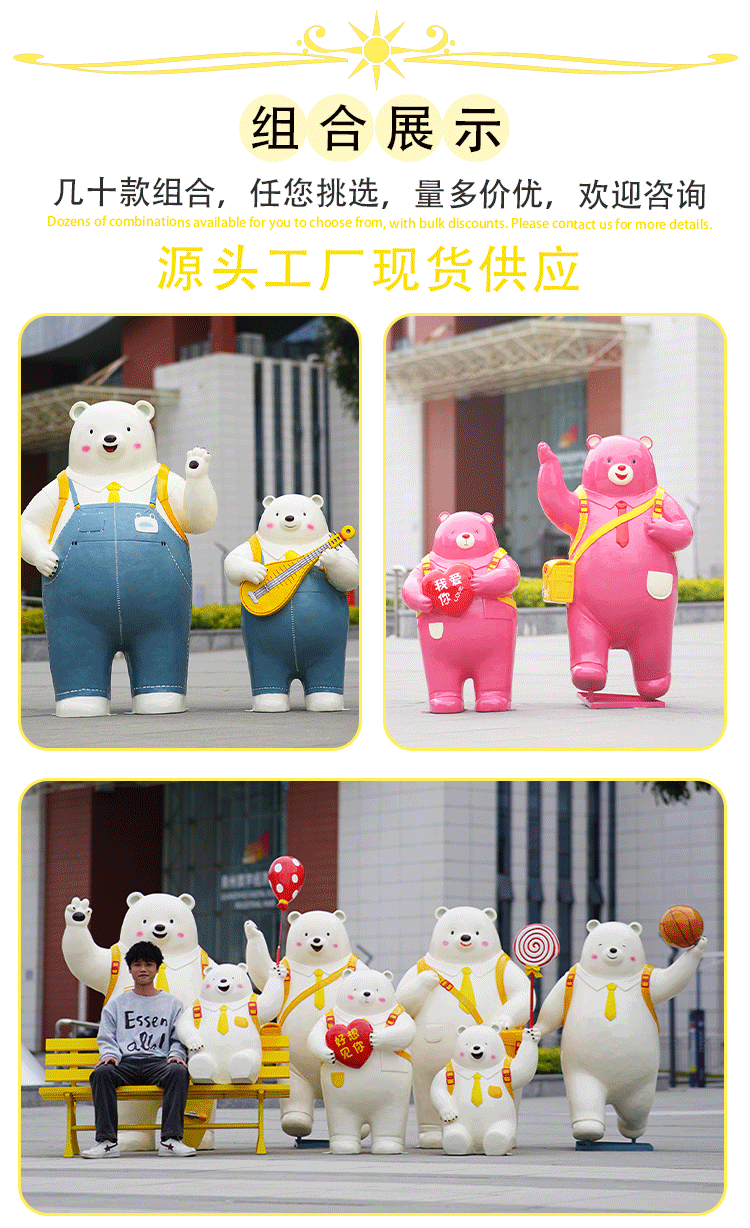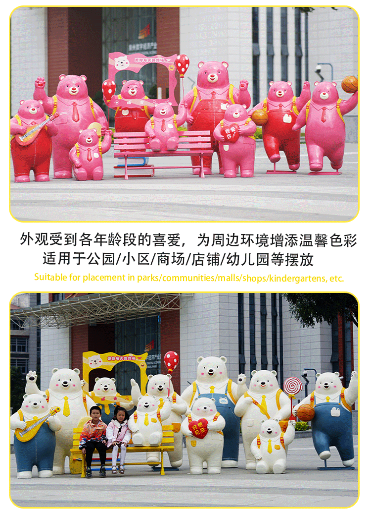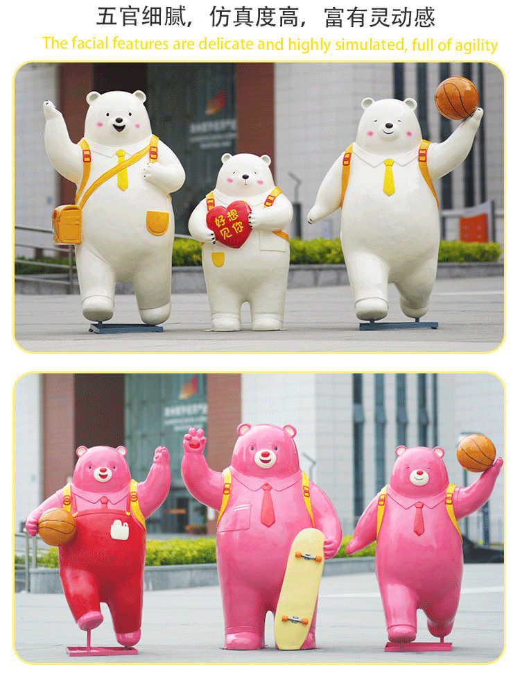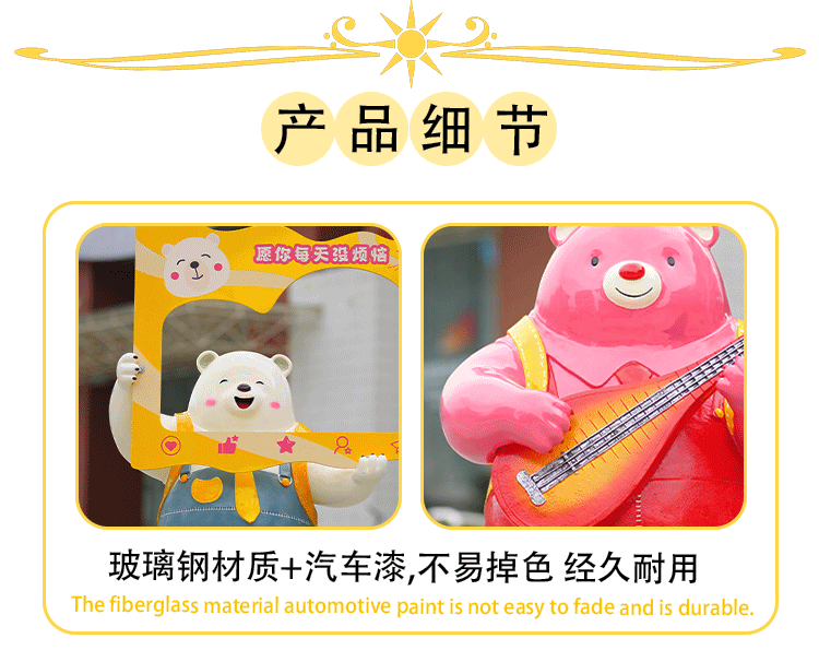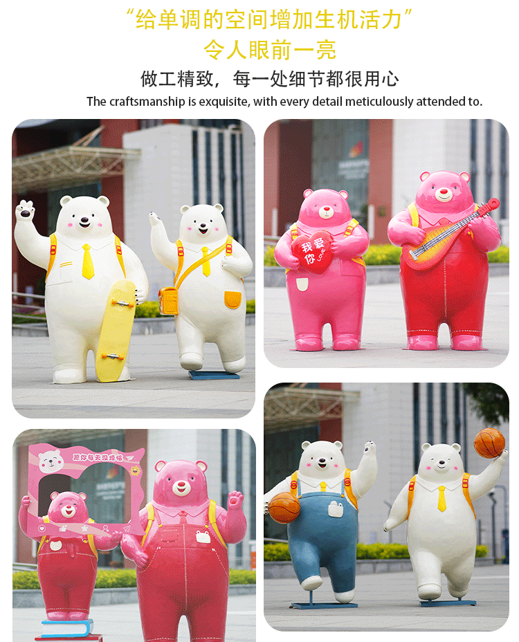 户外网红卡通熊玻璃钢雕塑园林游乐场商场打卡拍照美陈装饰大摆件