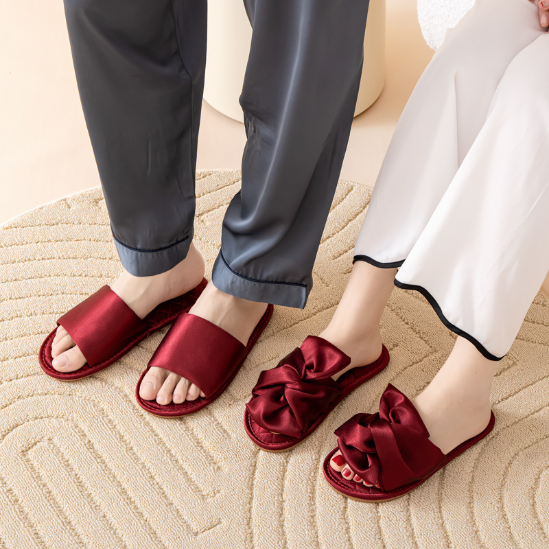 夏季结婚拖鞋红色一对情侣高级感轻奢晨袍新婚喜庆婚庆蝴蝶结男女