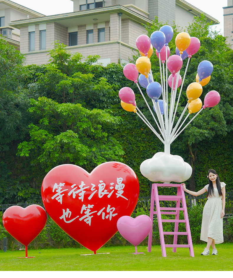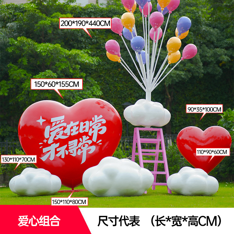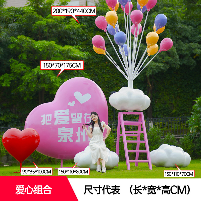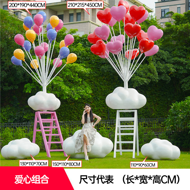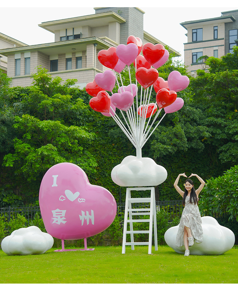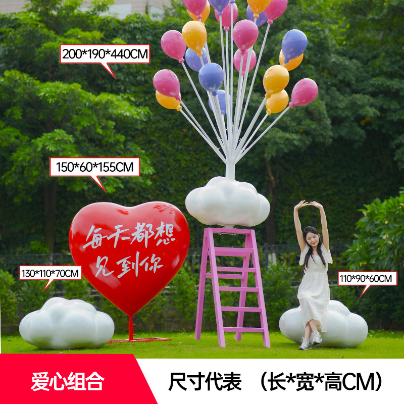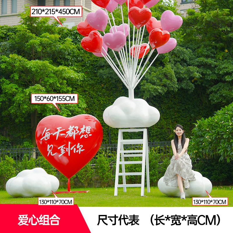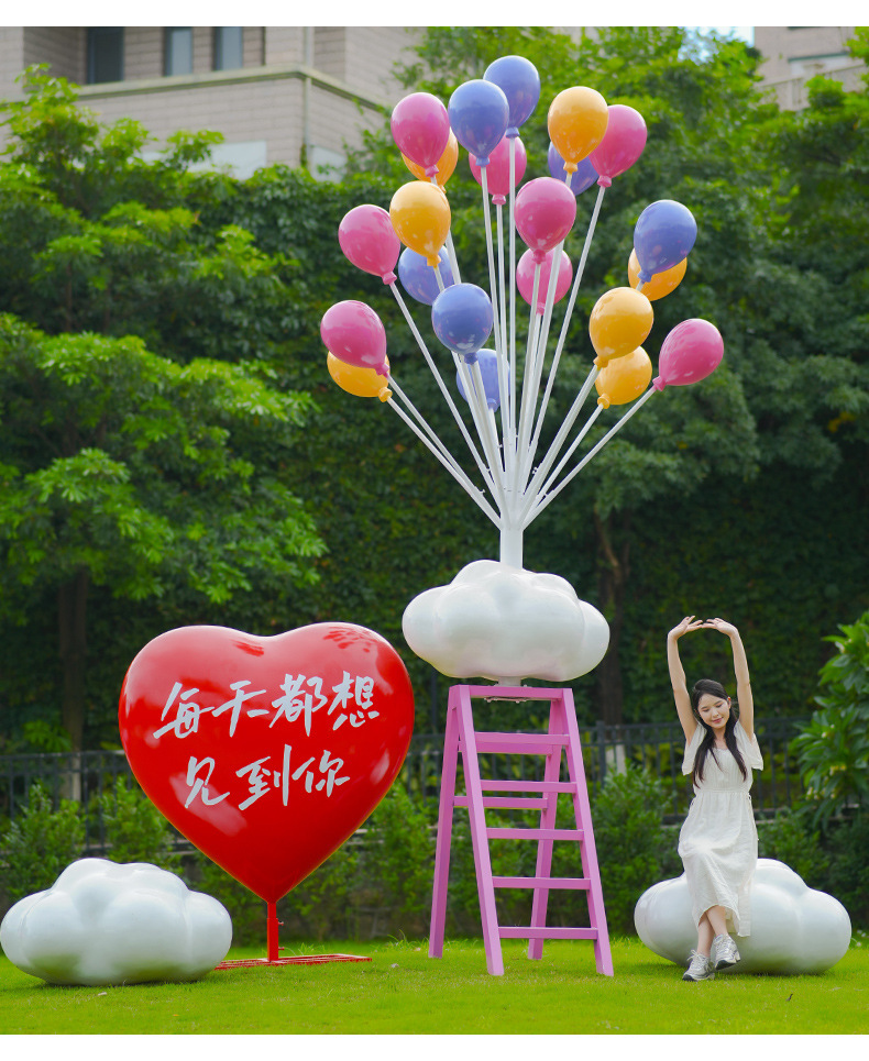 网红拍照打卡玻璃钢雕塑户外爱心云朵告白气球天梯景区装饰品摆件