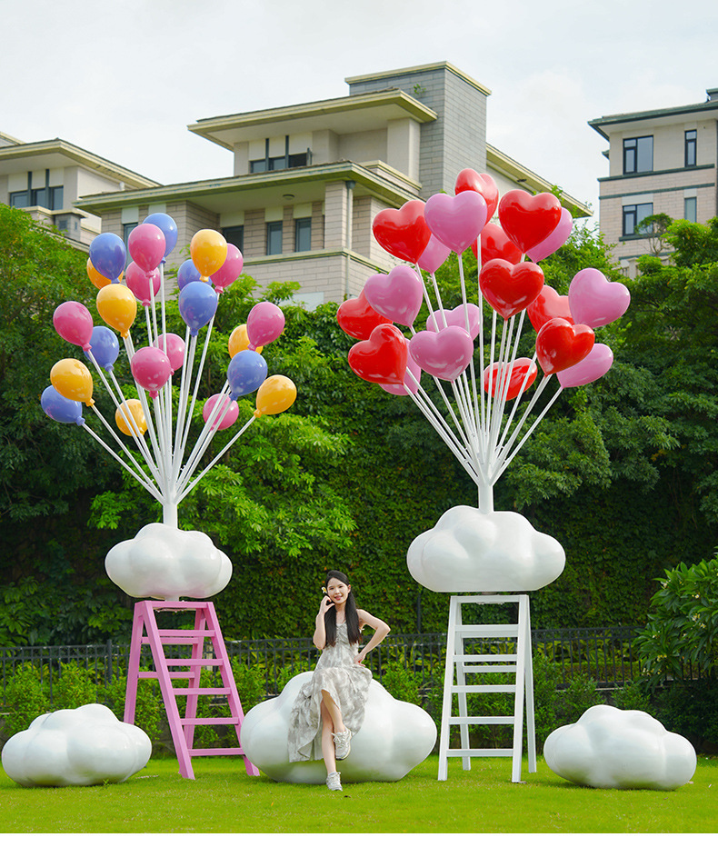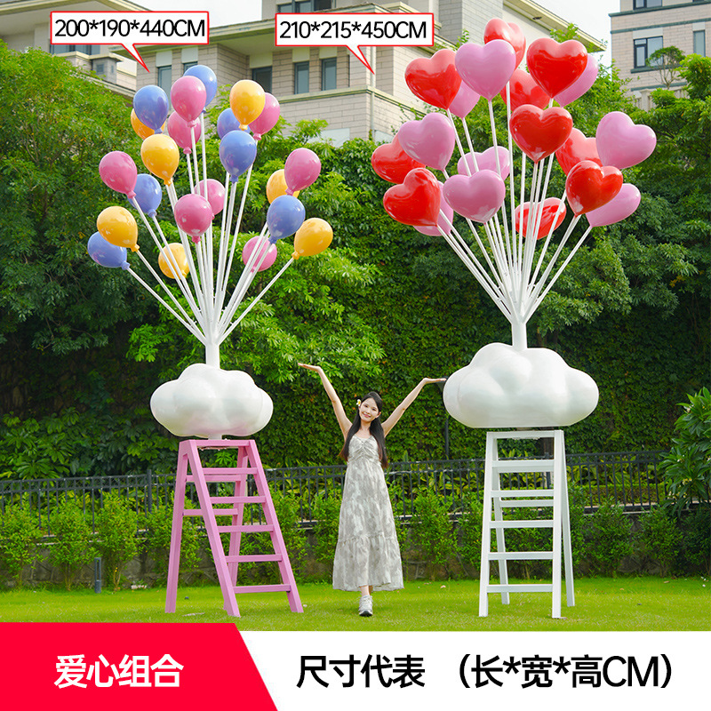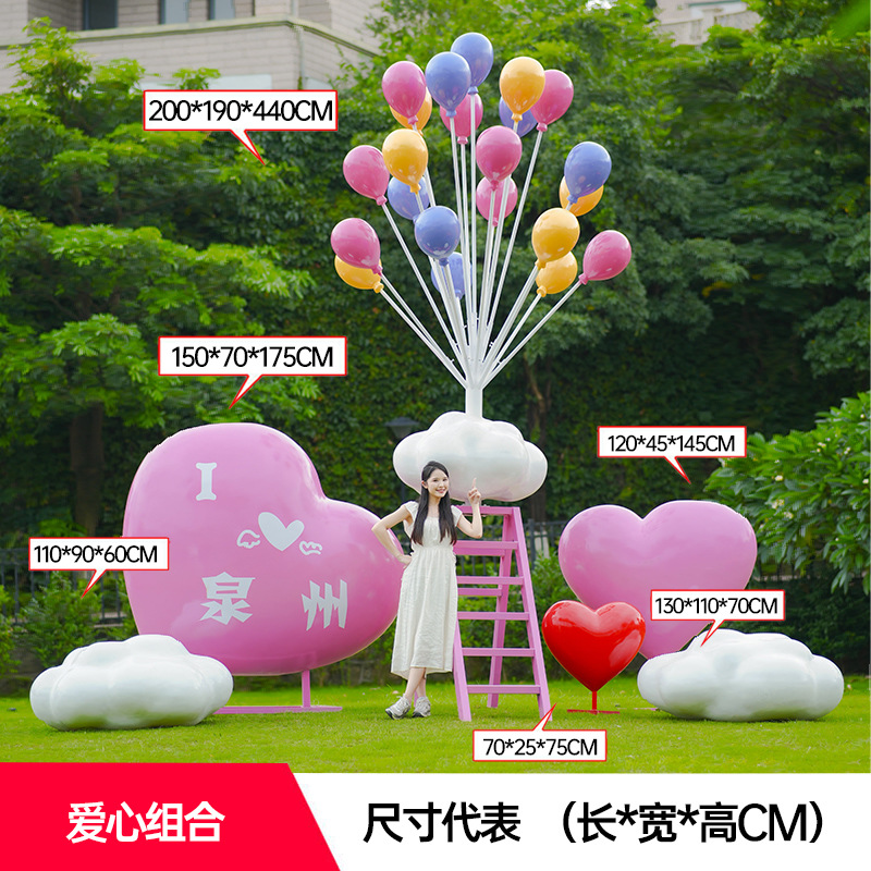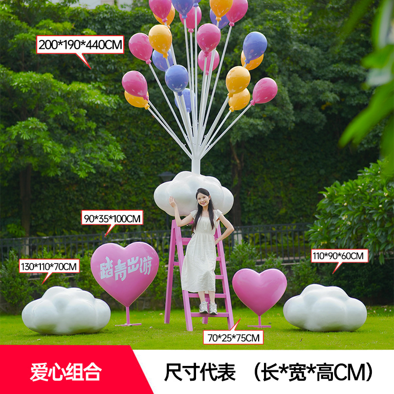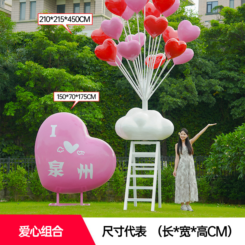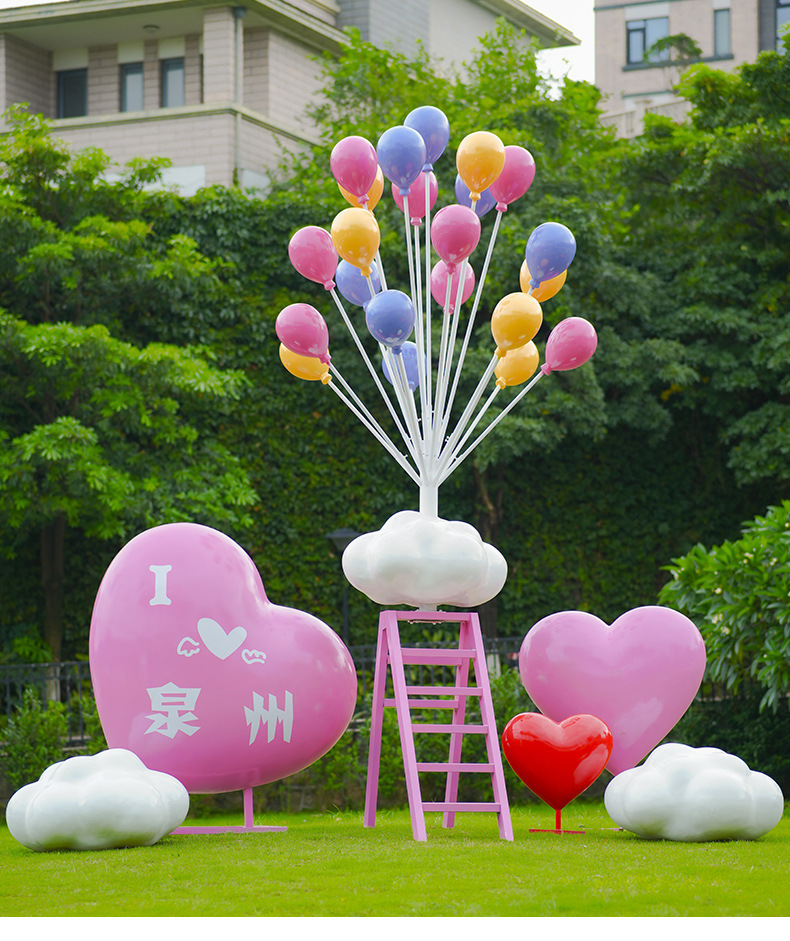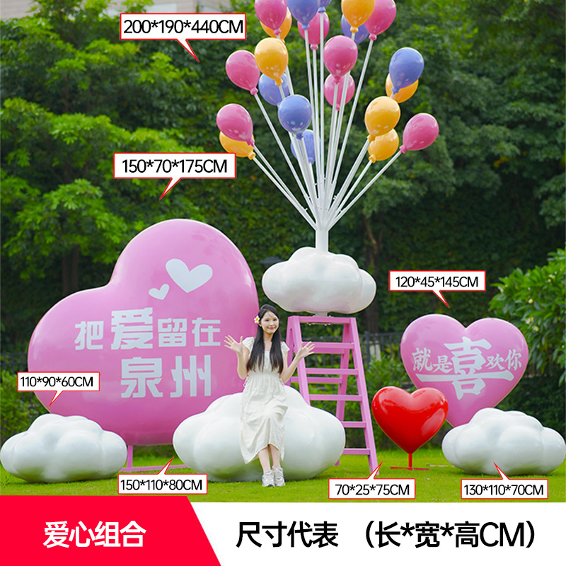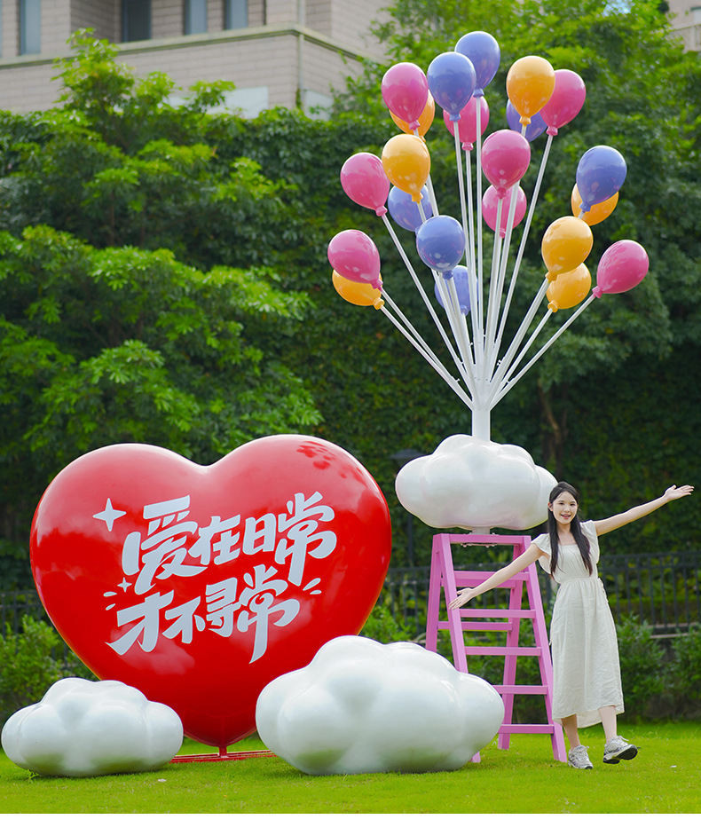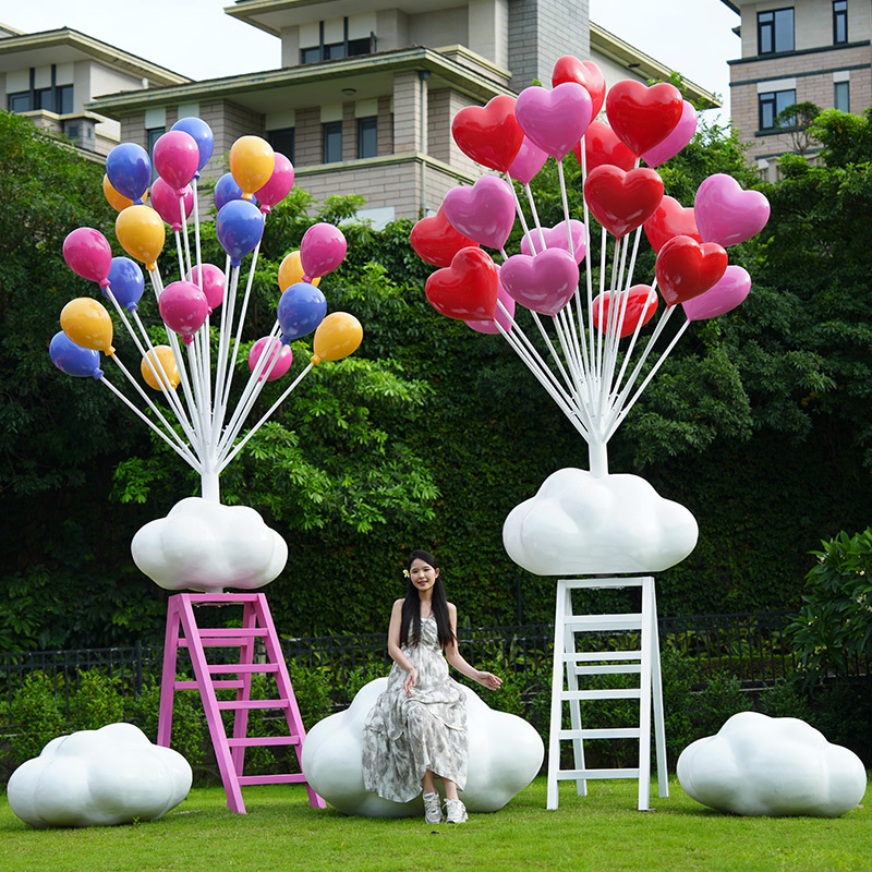 网红拍照打卡玻璃钢雕塑户外爱心云朵告白气球天梯景区装饰品摆件
