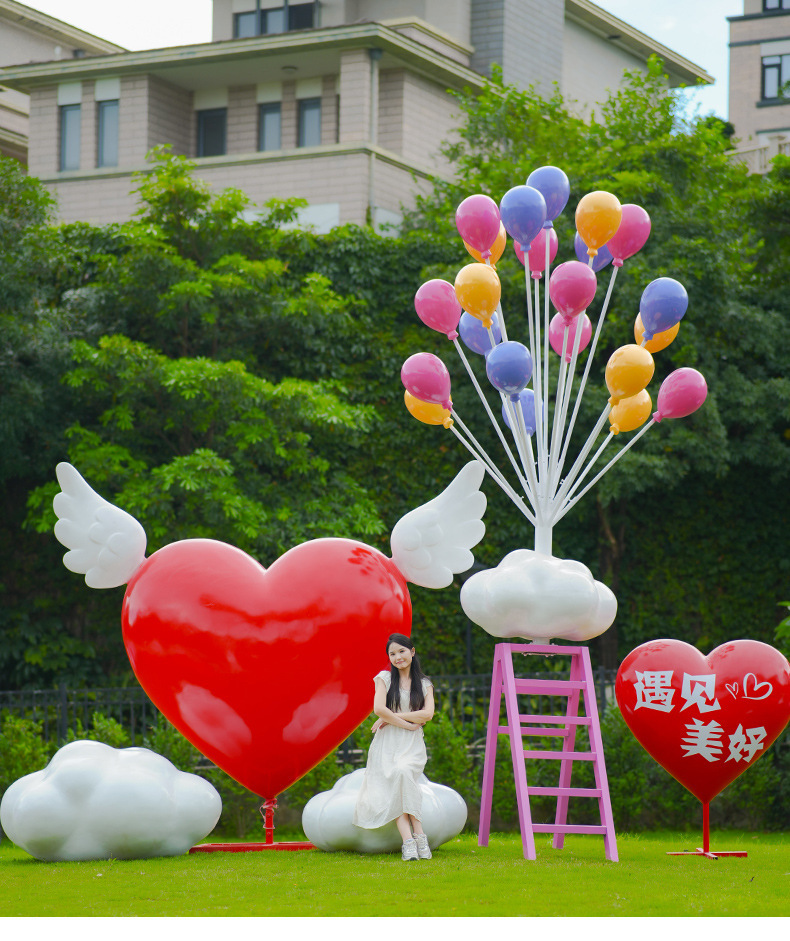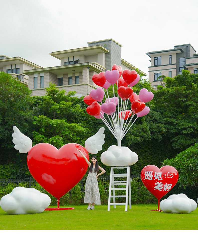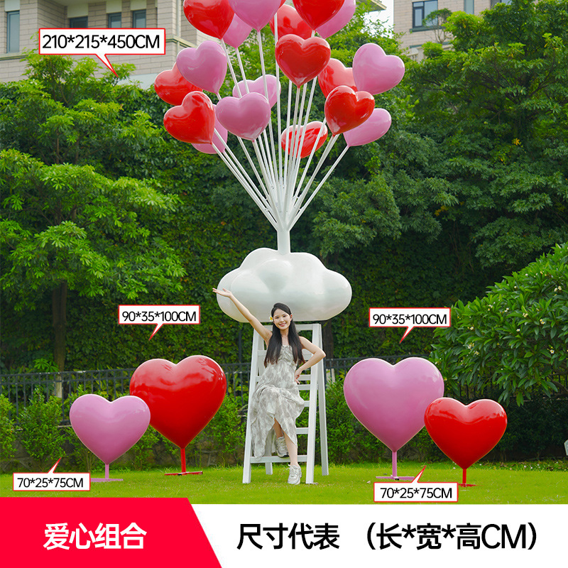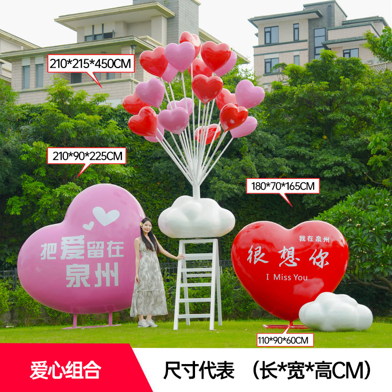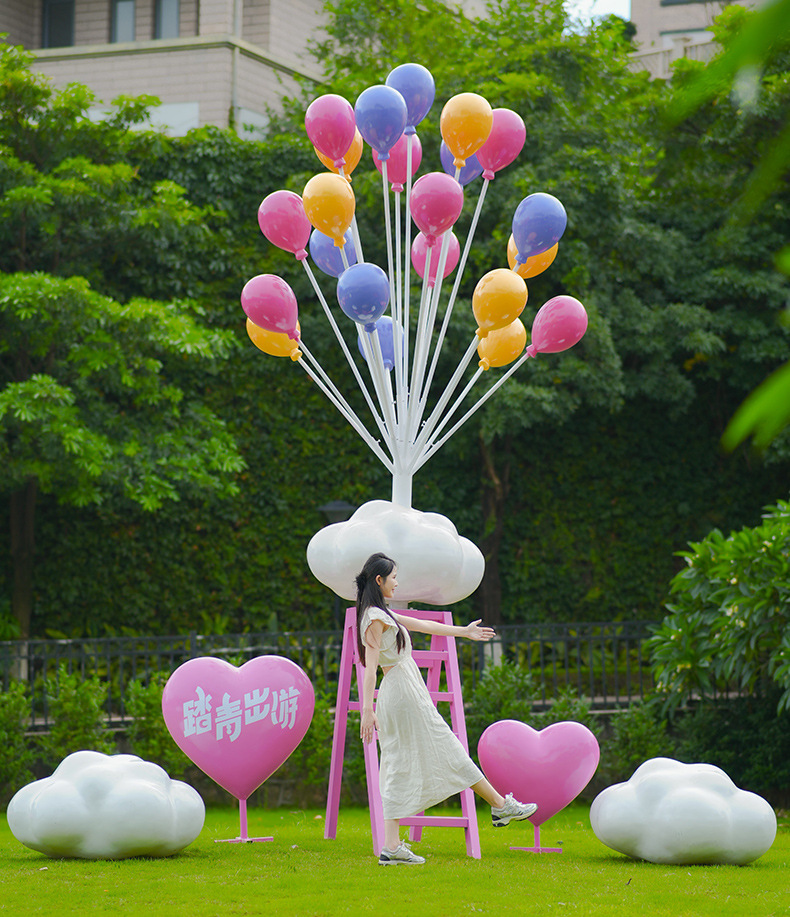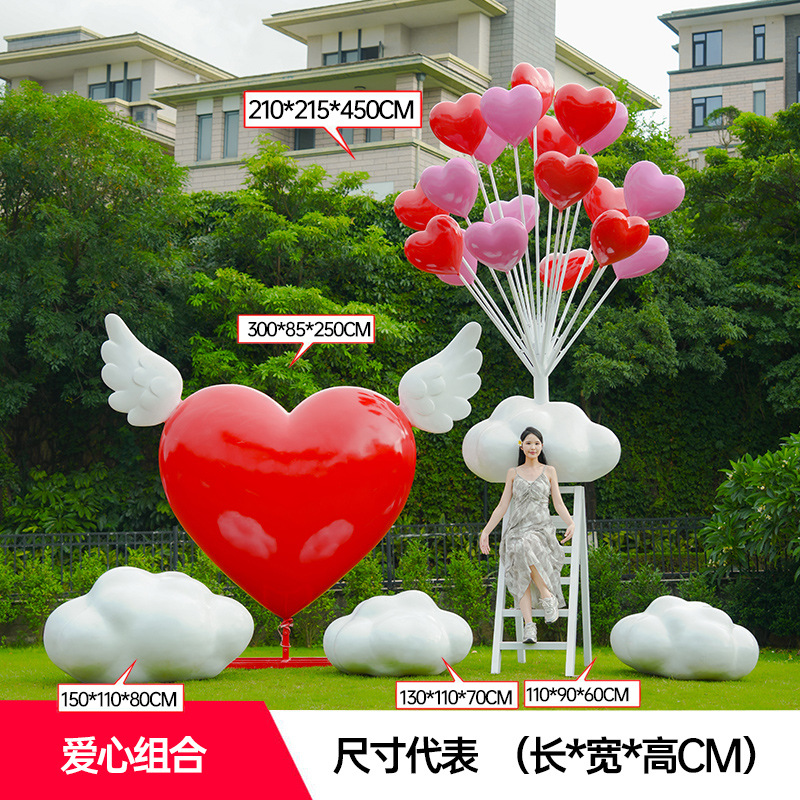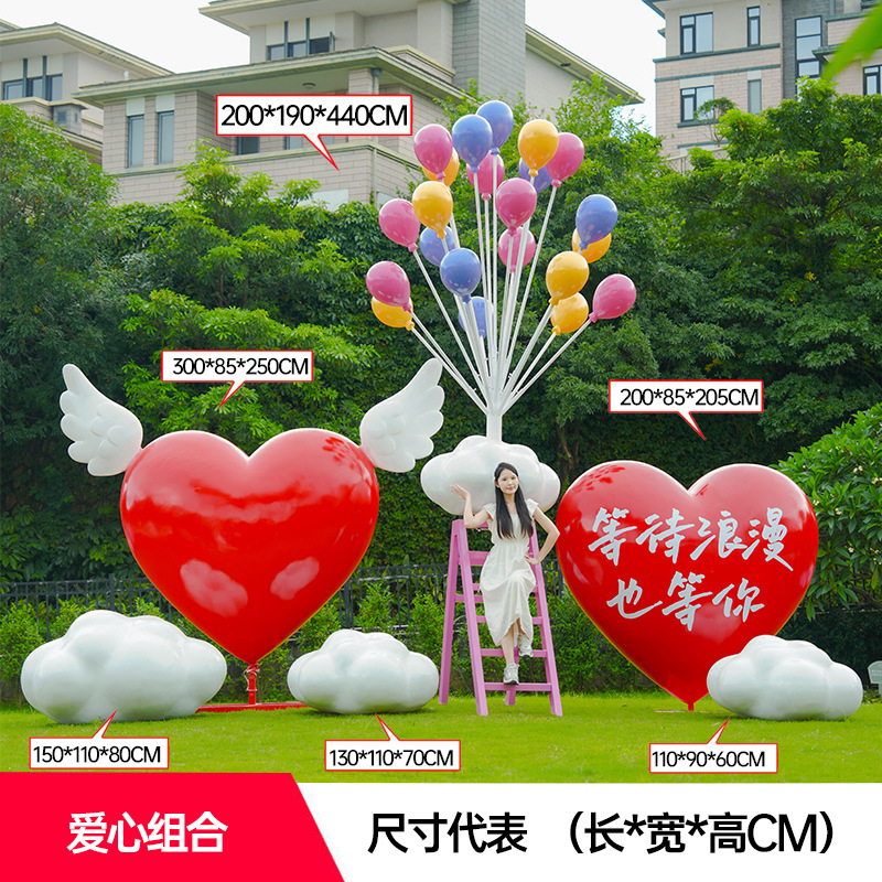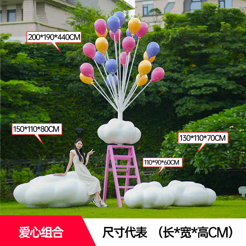网红拍照打卡玻璃钢雕塑户外爱心云朵告白气球天梯景区装饰品摆件