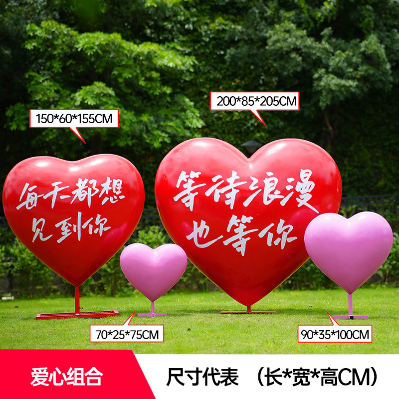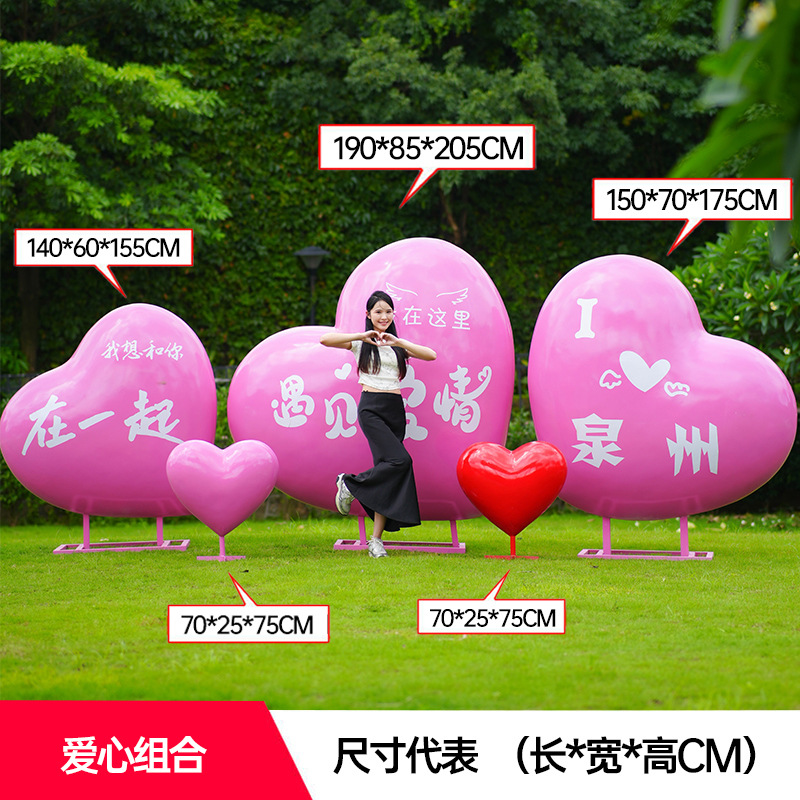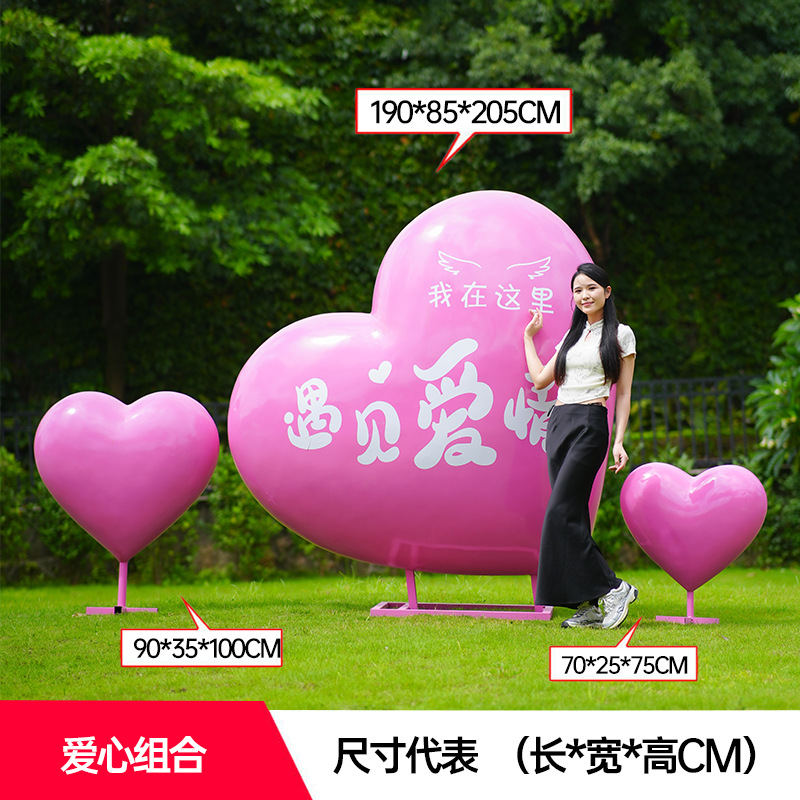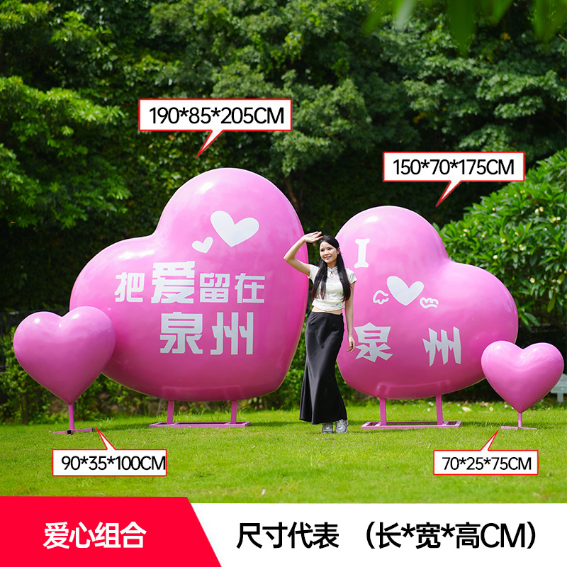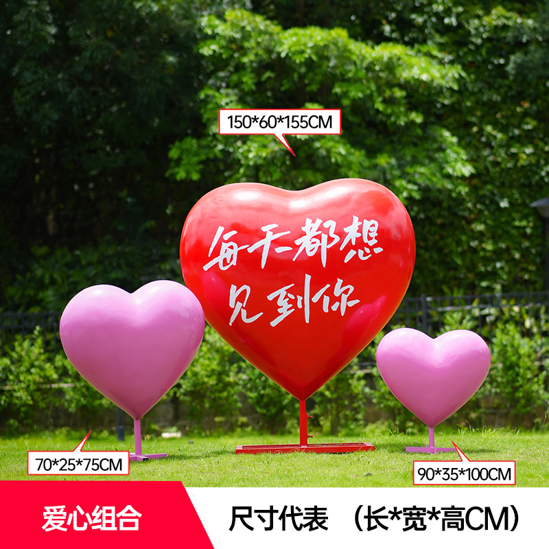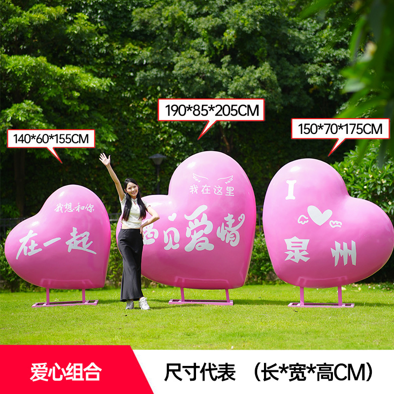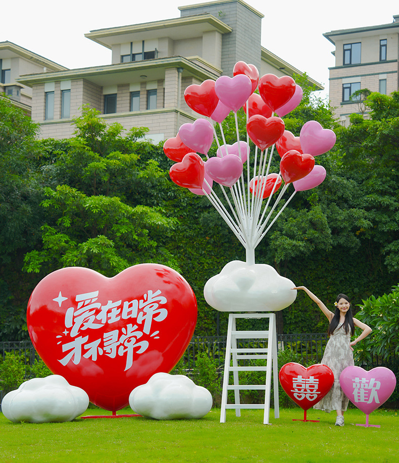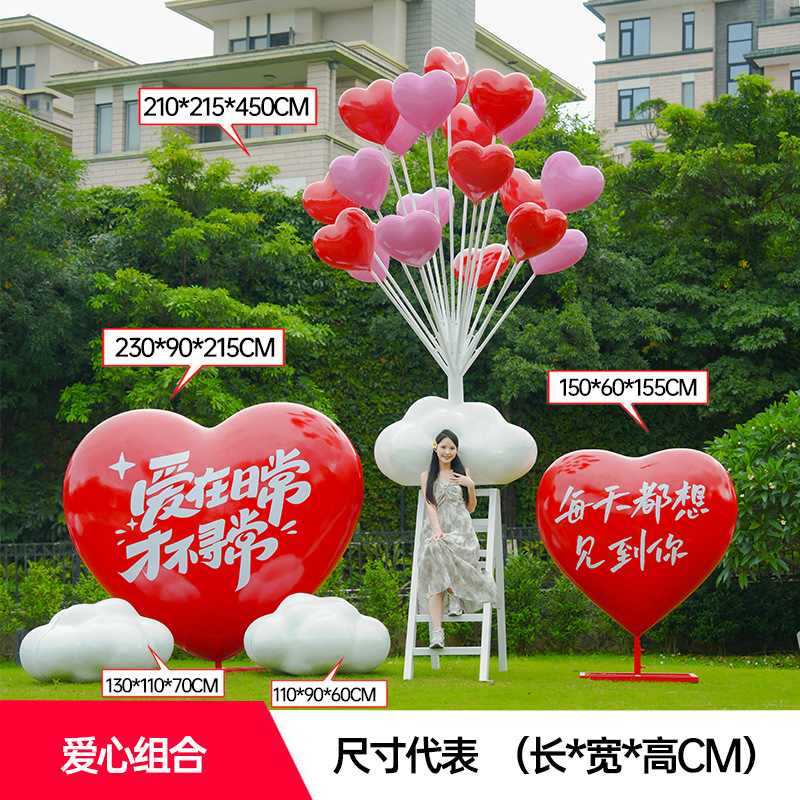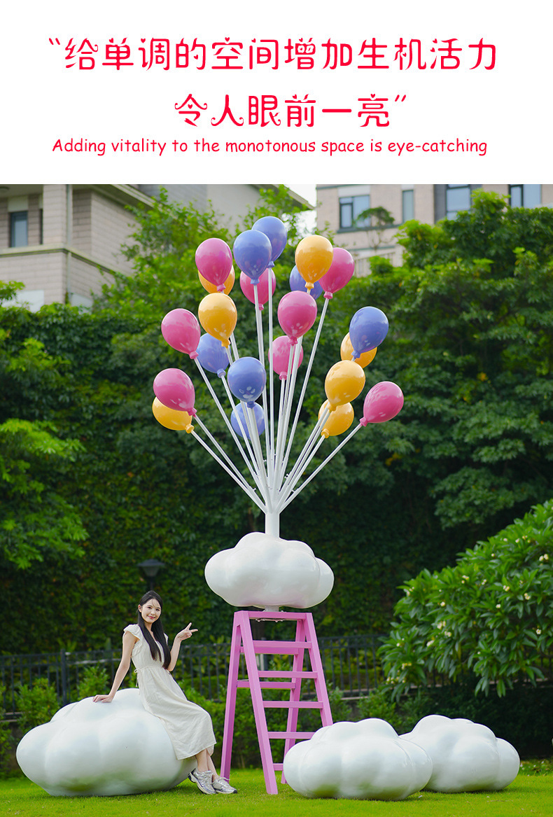 网红拍照打卡玻璃钢雕塑户外爱心云朵告白气球天梯景区装饰品摆件
