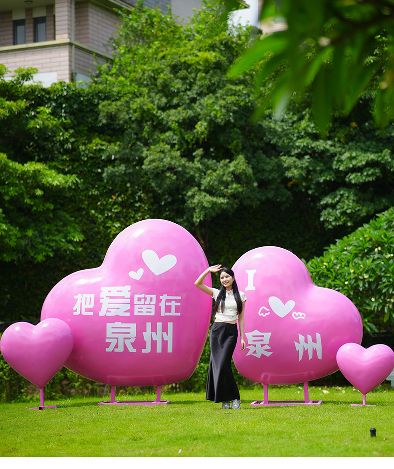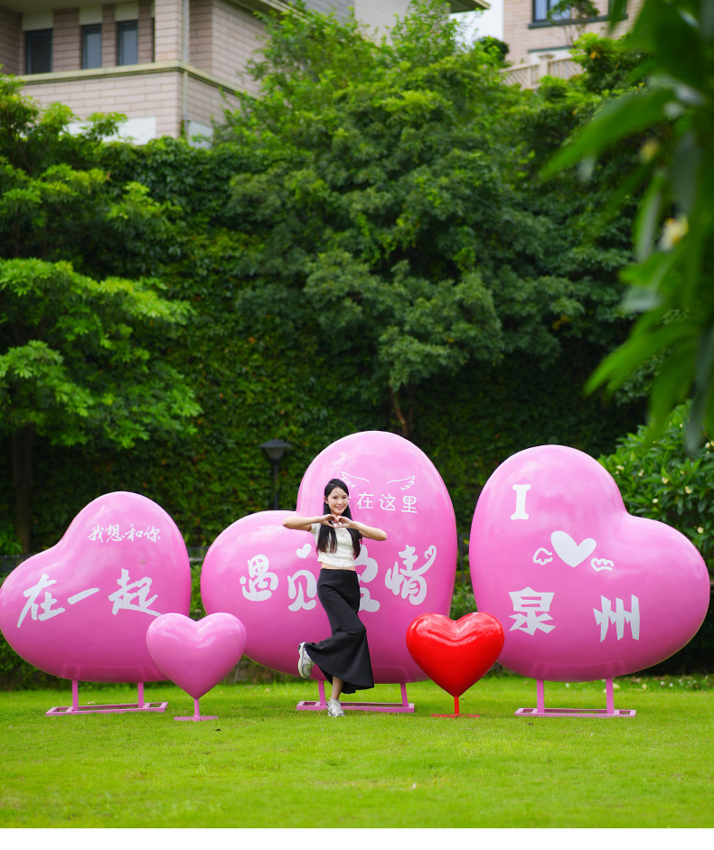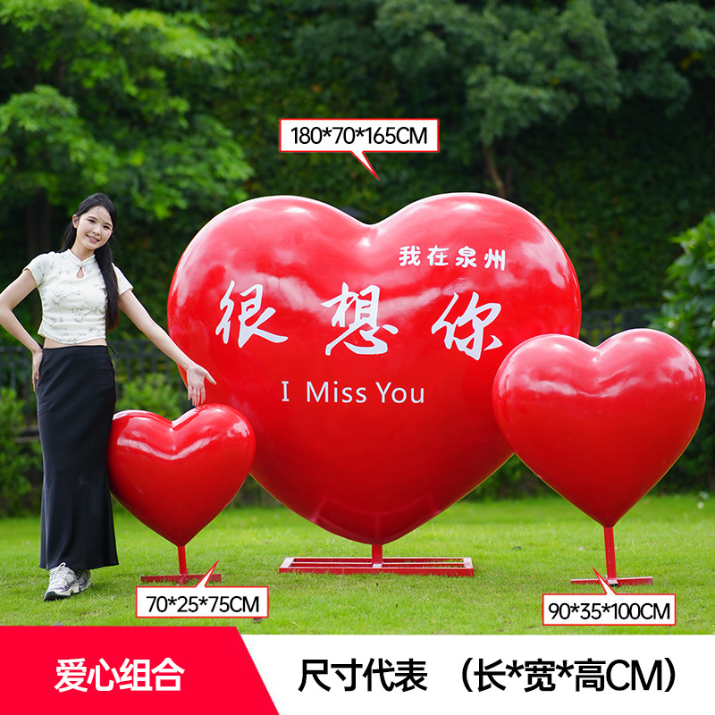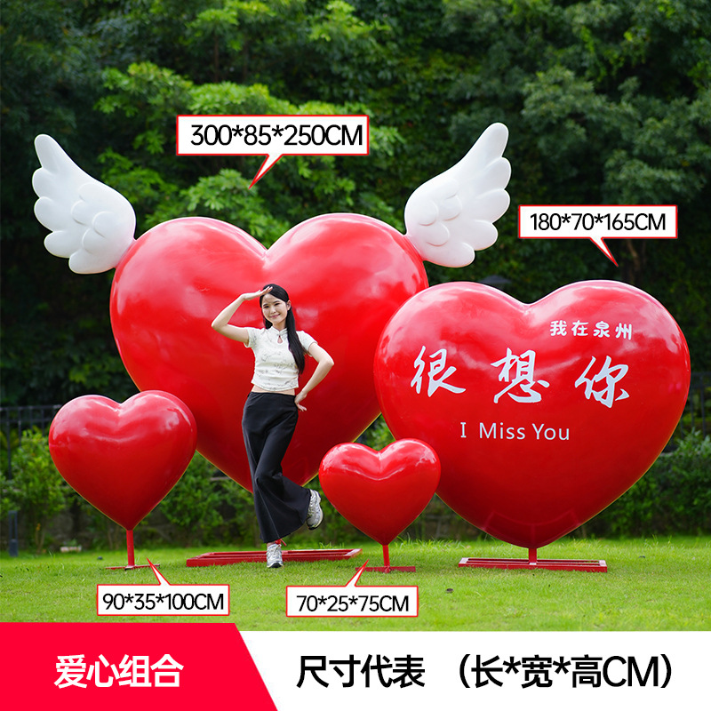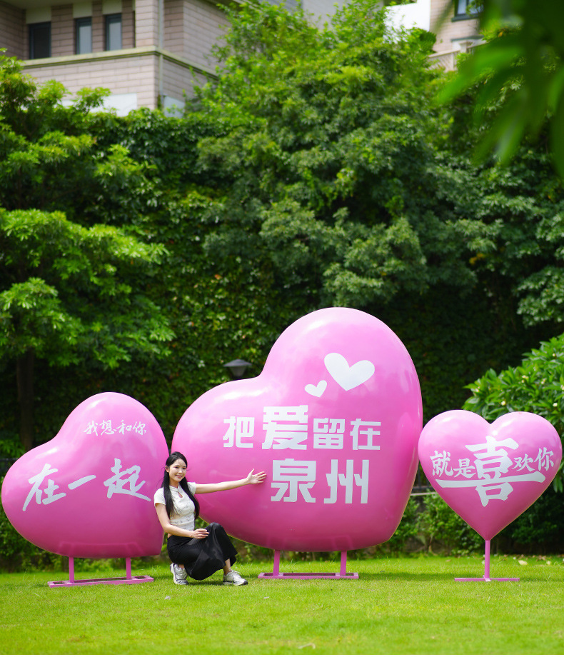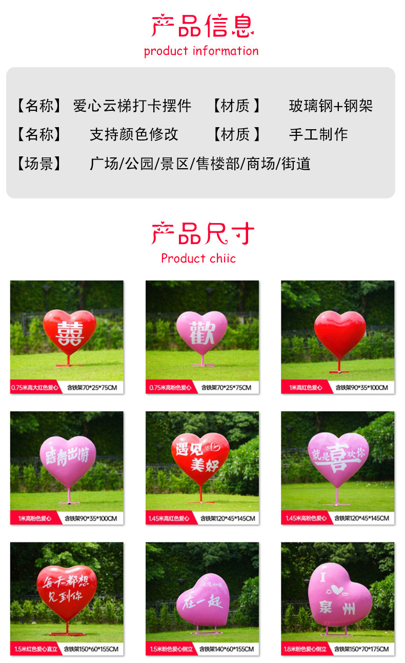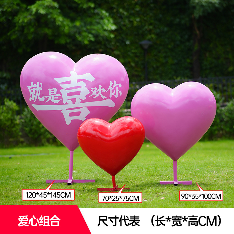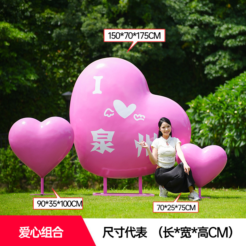 网红拍照打卡玻璃钢雕塑户外爱心云朵告白气球天梯景区装饰品摆件