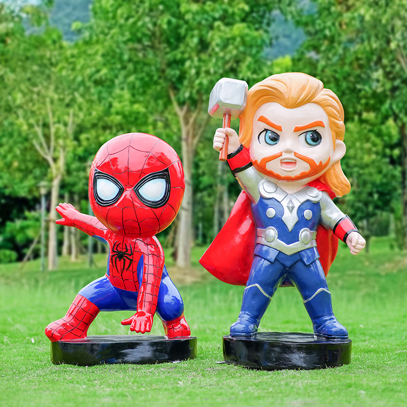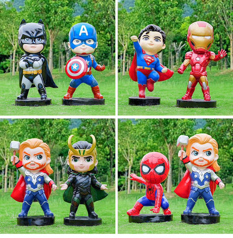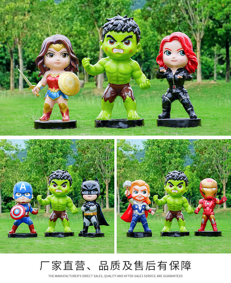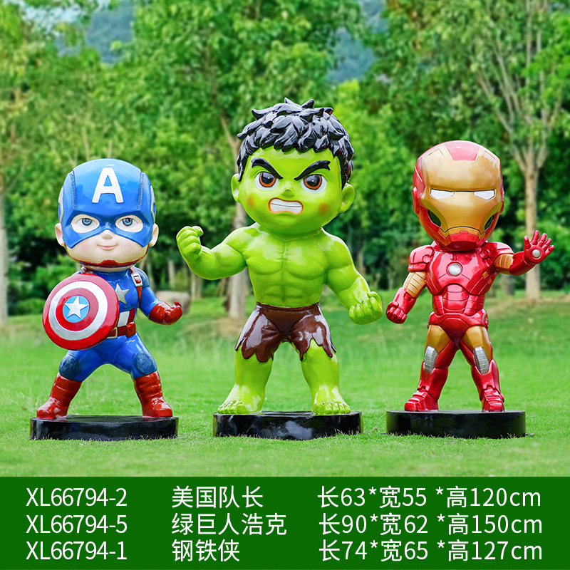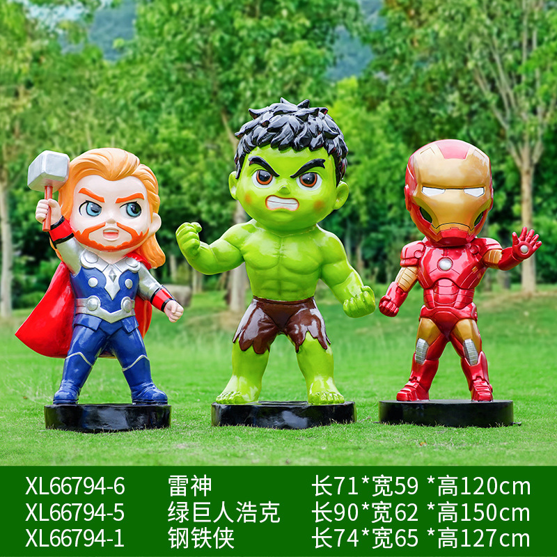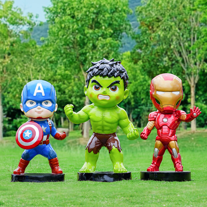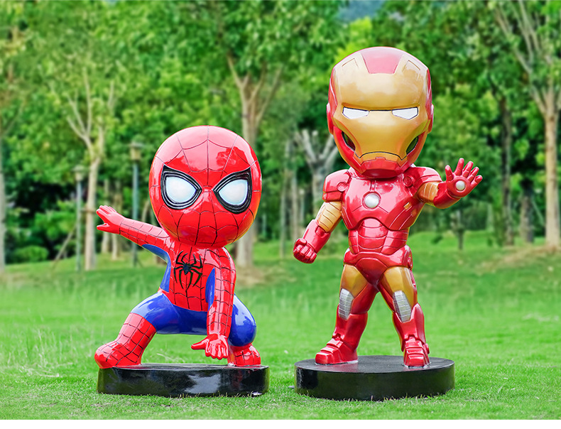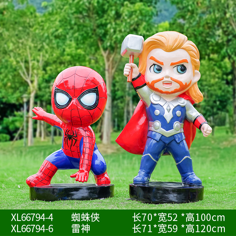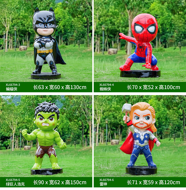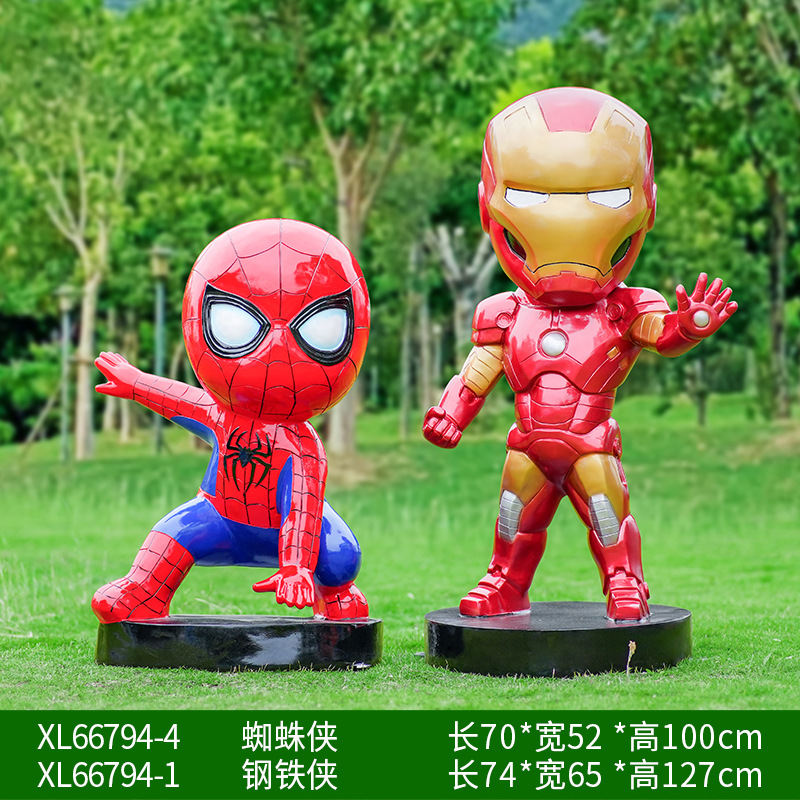 卡通漫威英雄雕塑蜘蛛侠钢铁侠绿巨人动漫人物模型玻璃钢落地摆件