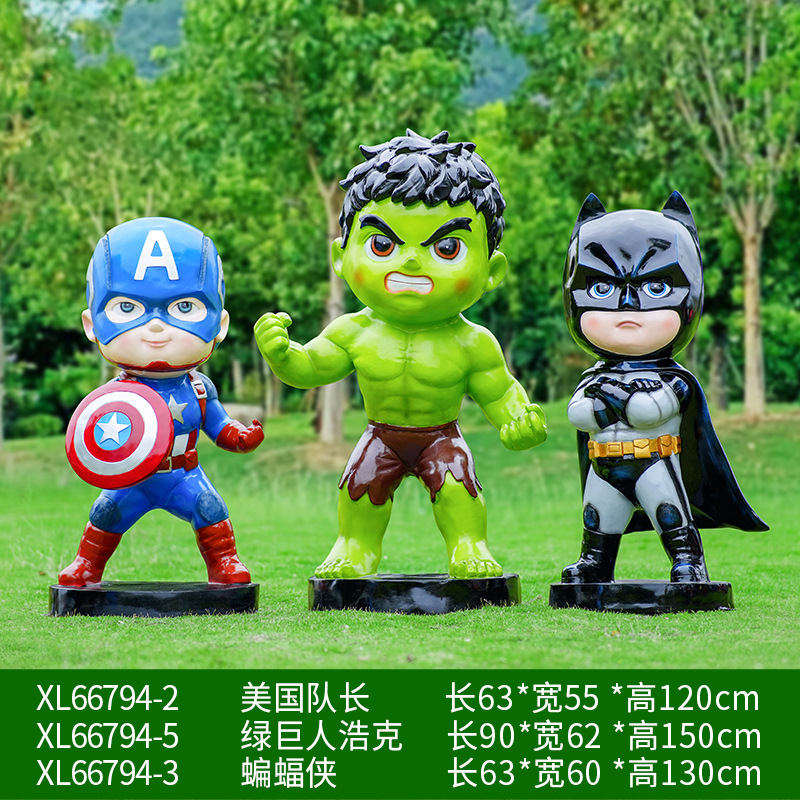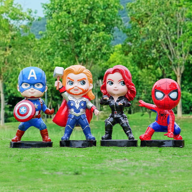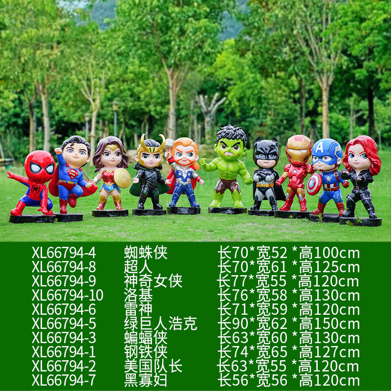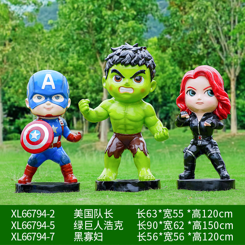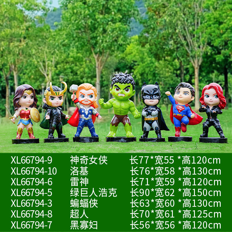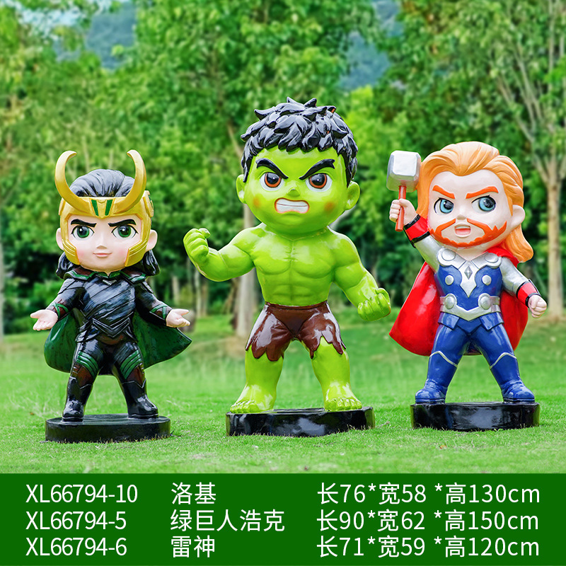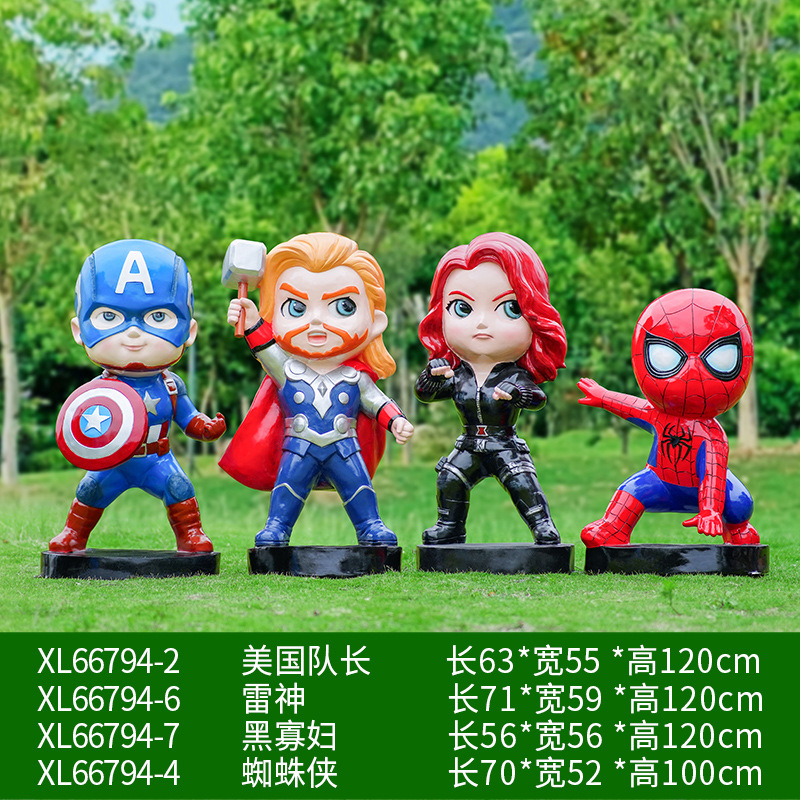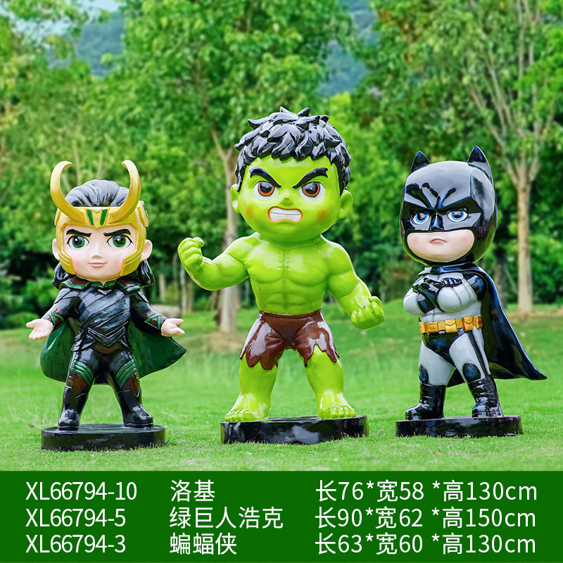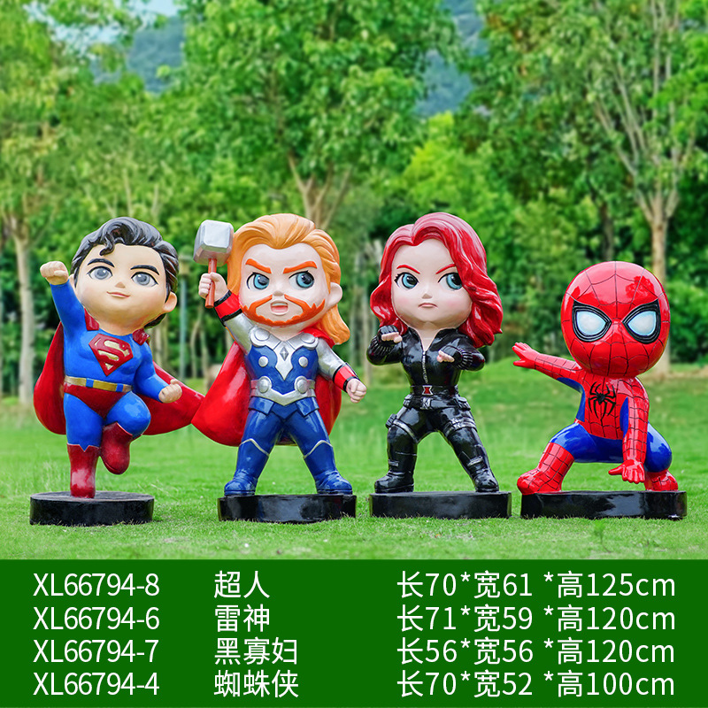 卡通漫威英雄雕塑蜘蛛侠钢铁侠绿巨人动漫人物模型玻璃钢落地摆件