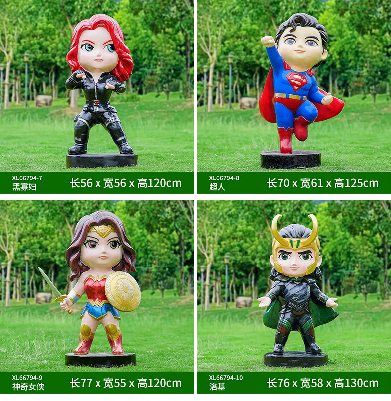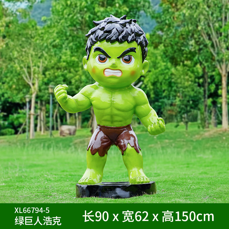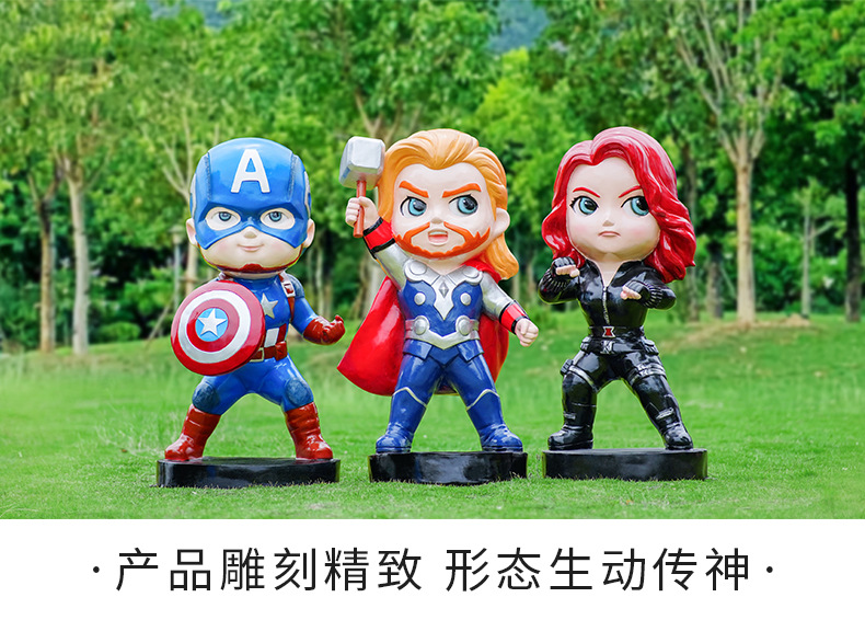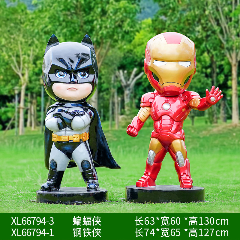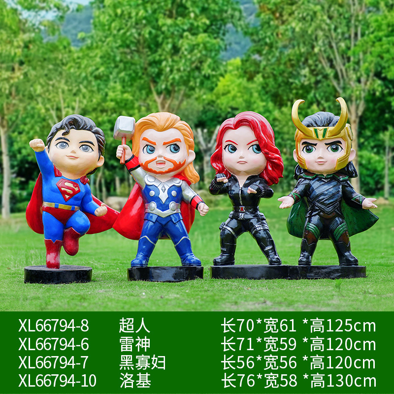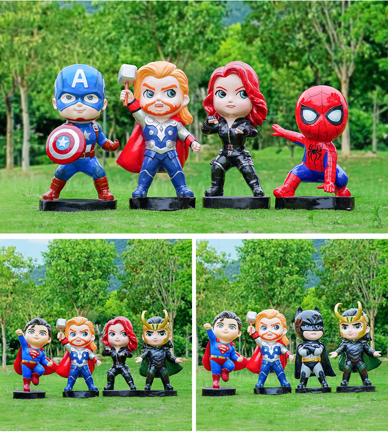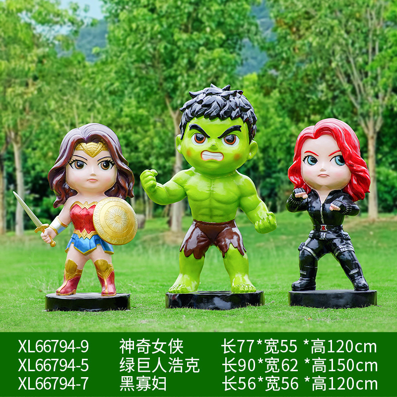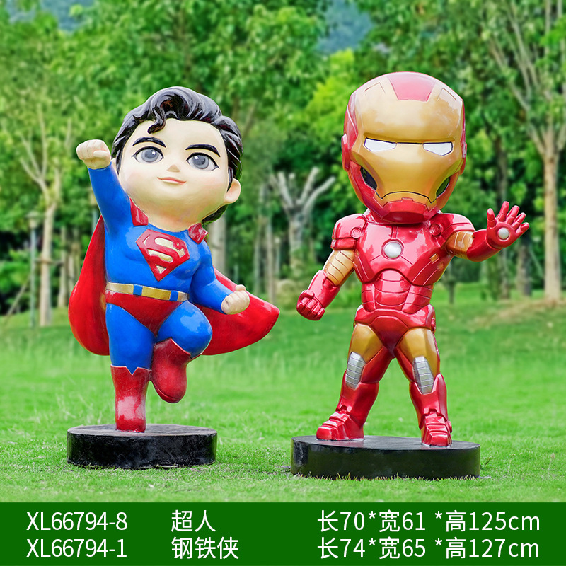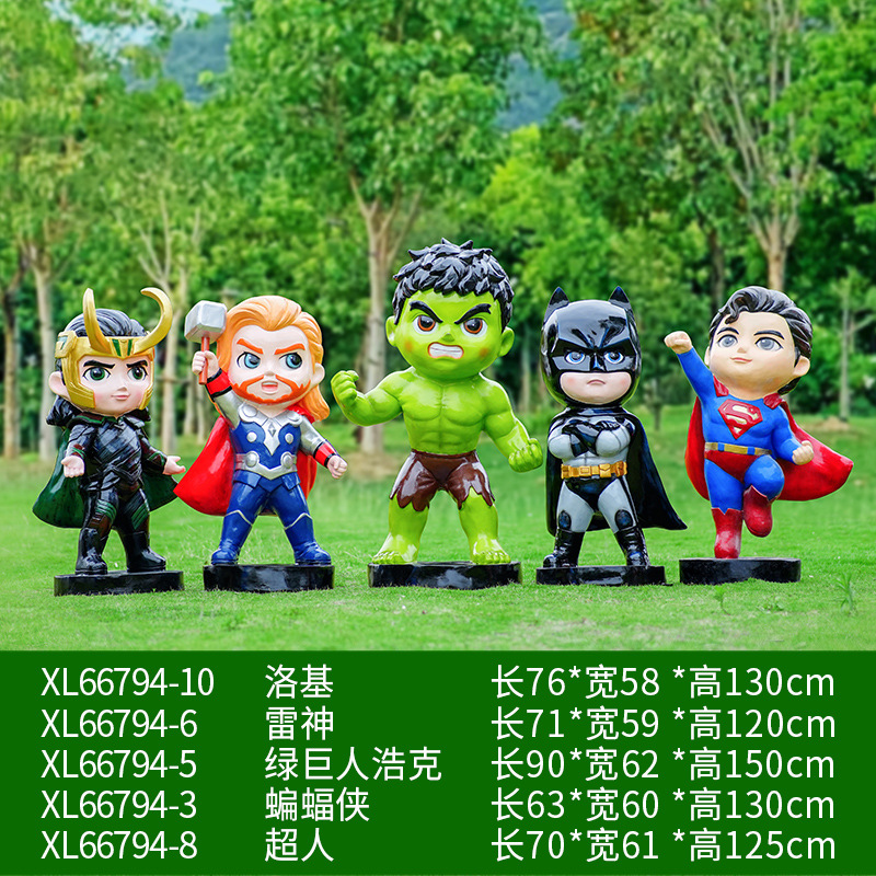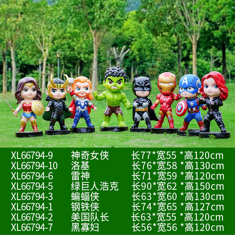 卡通漫威英雄雕塑蜘蛛侠钢铁侠绿巨人动漫人物模型玻璃钢落地摆件