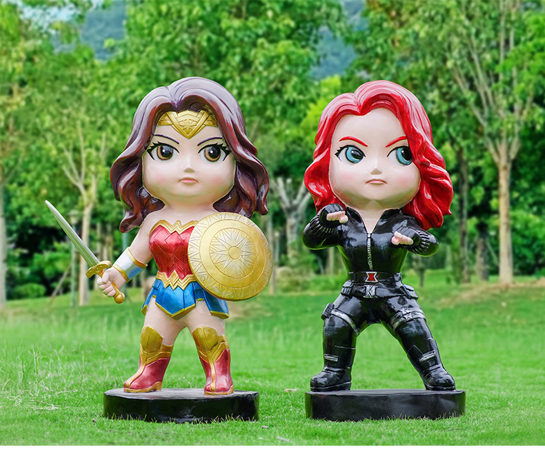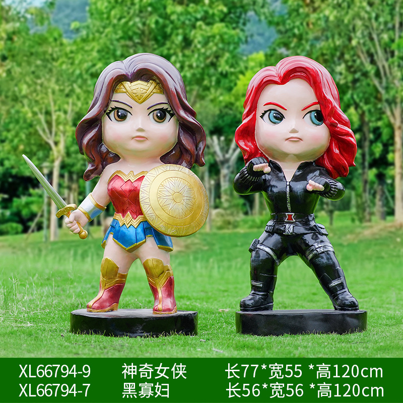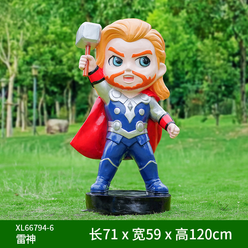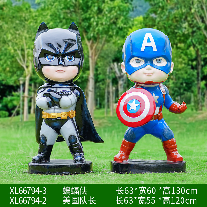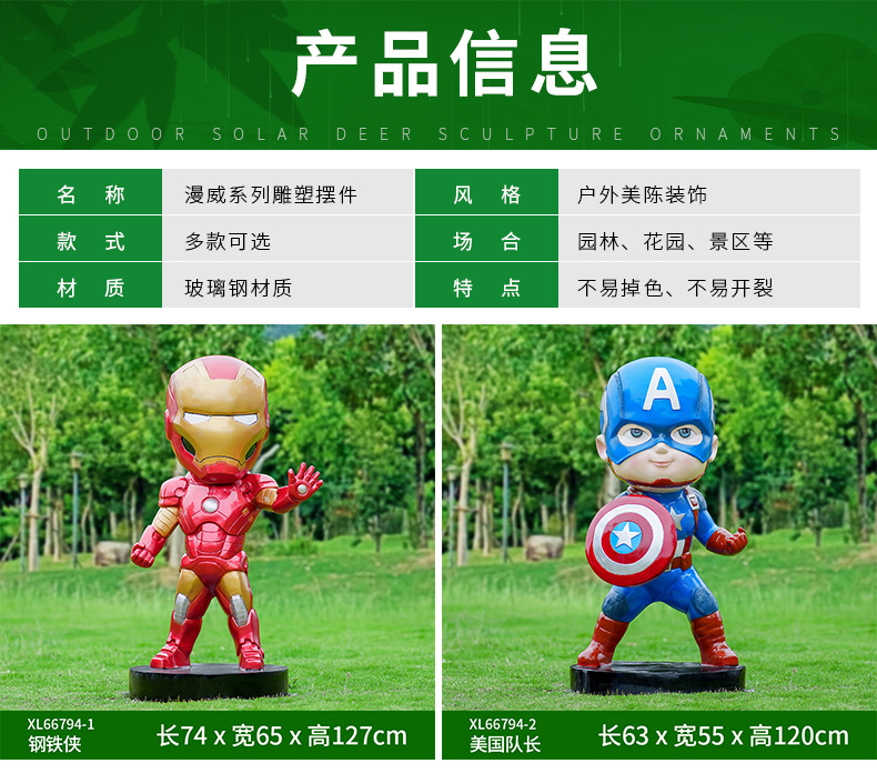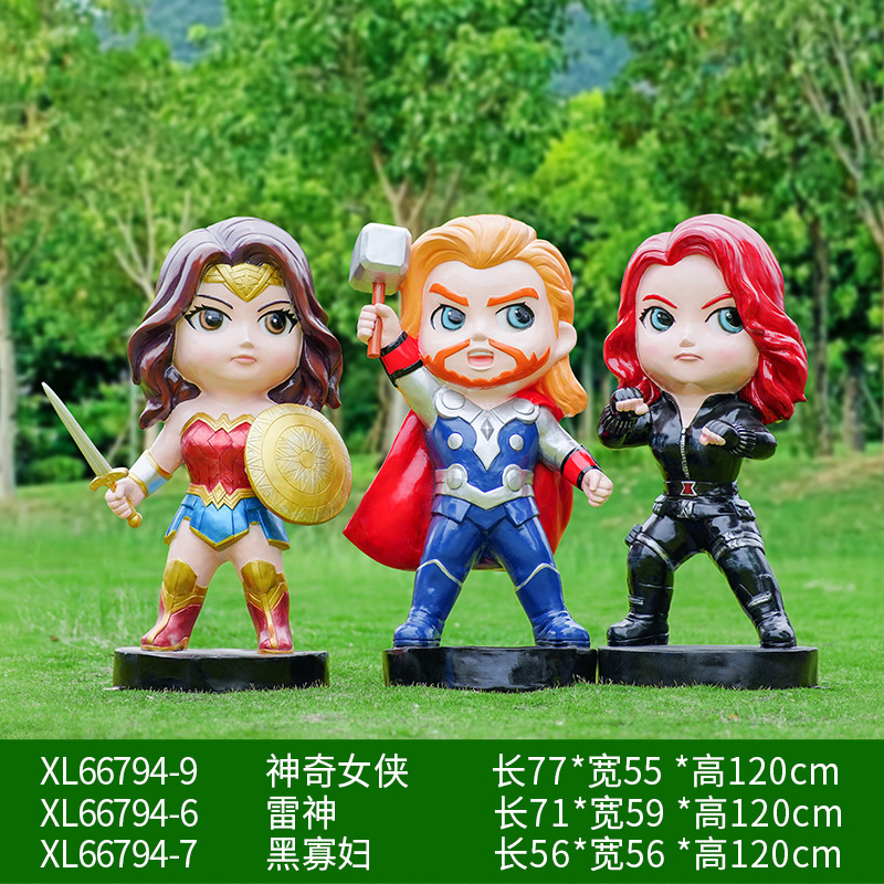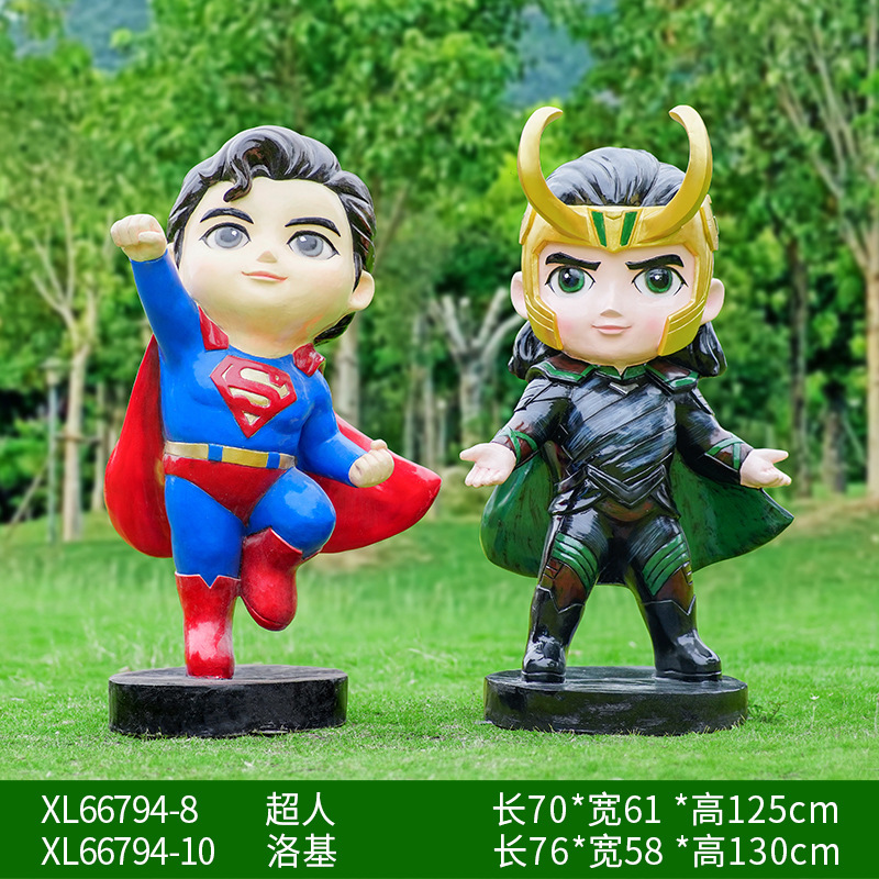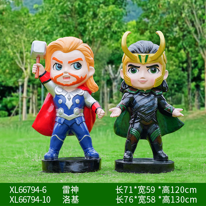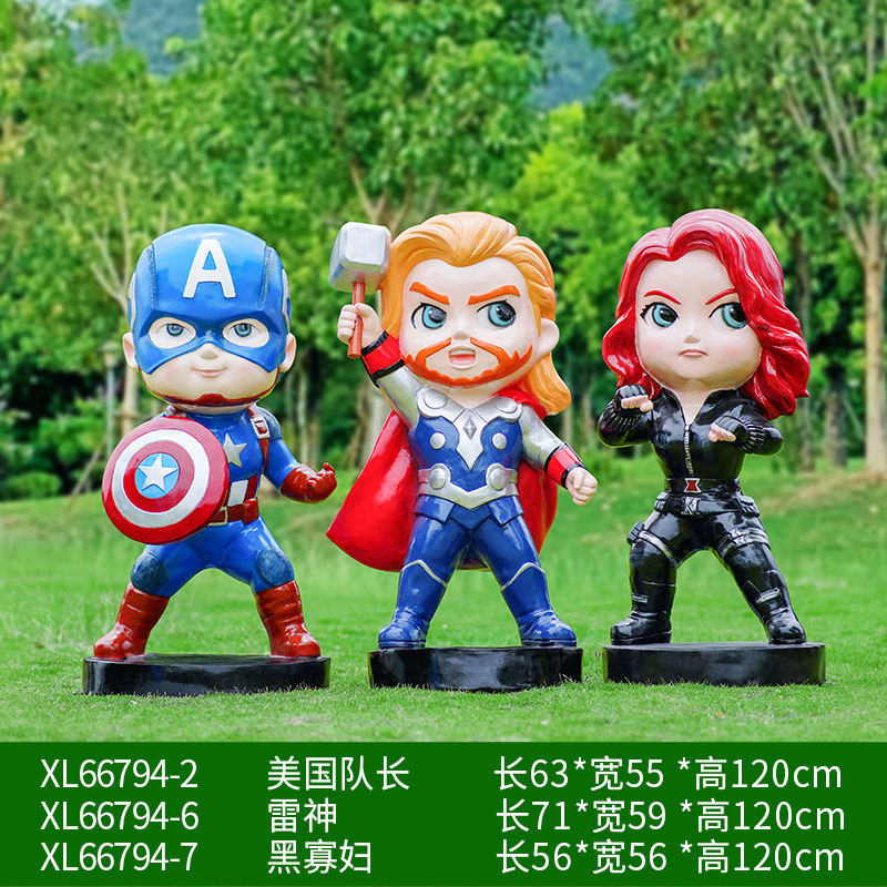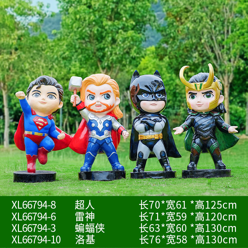 卡通漫威英雄雕塑蜘蛛侠钢铁侠绿巨人动漫人物模型玻璃钢落地摆件