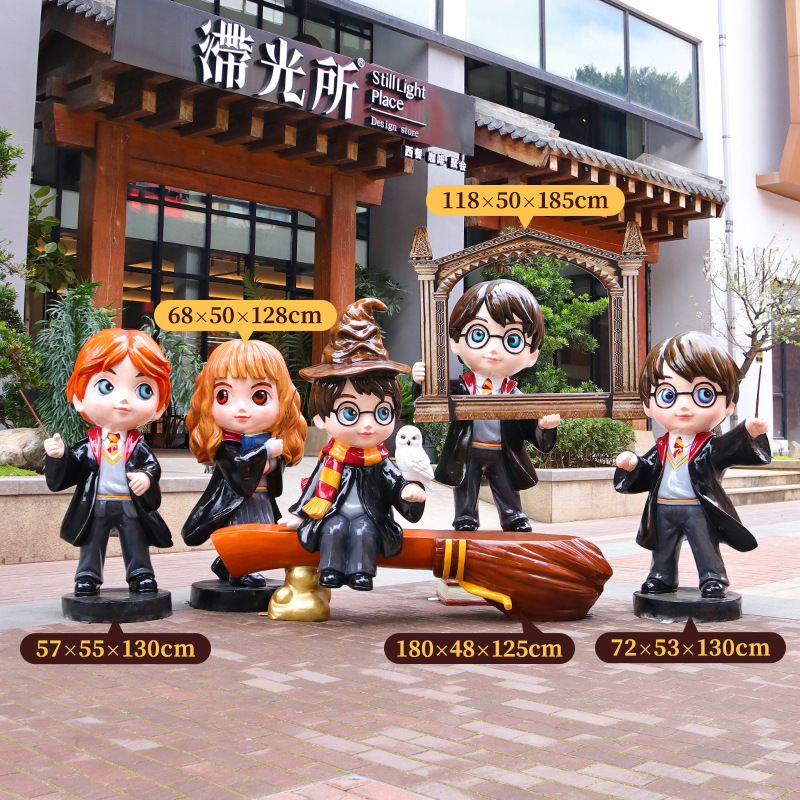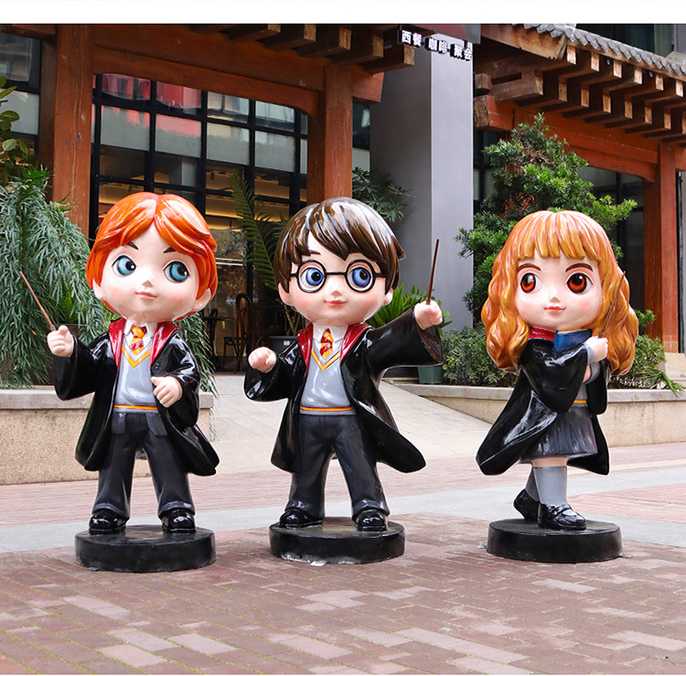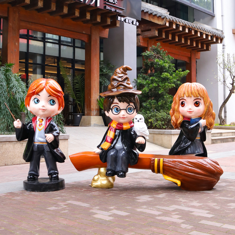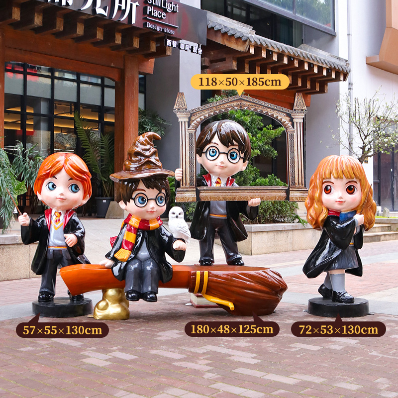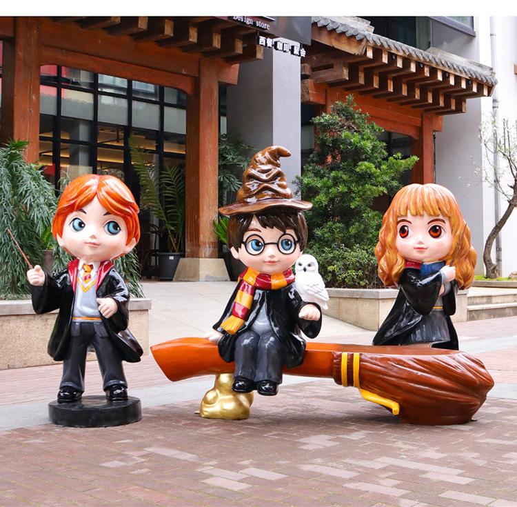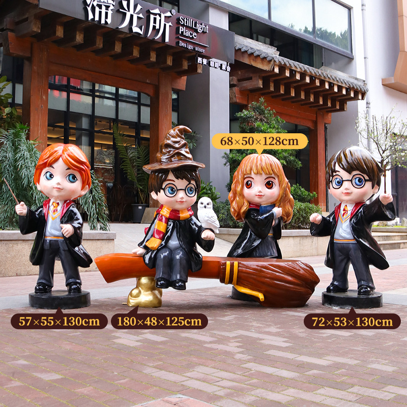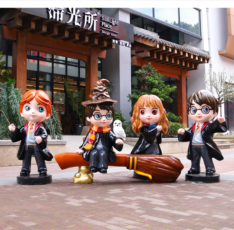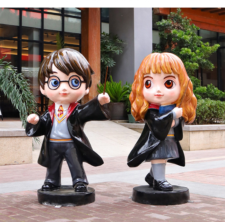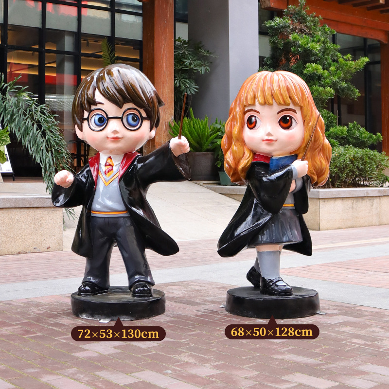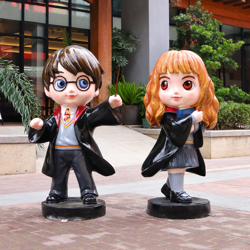 户外玻璃钢卡通哈利波特雕塑商场电影院景观装饰赫敏魔杖大型摆件