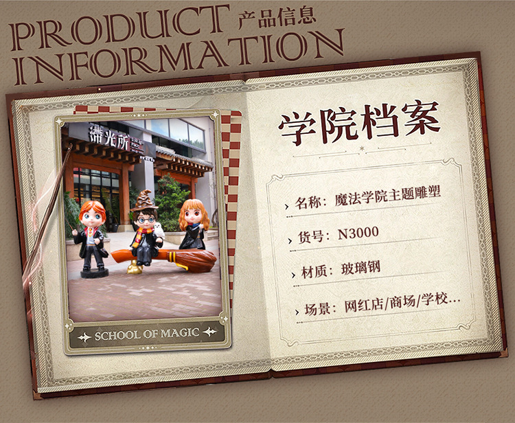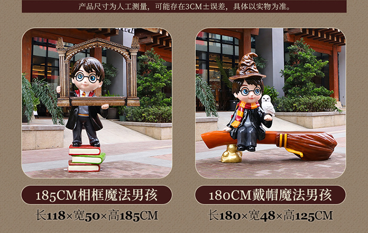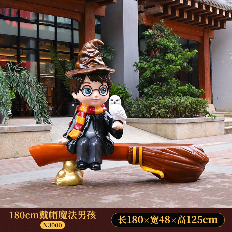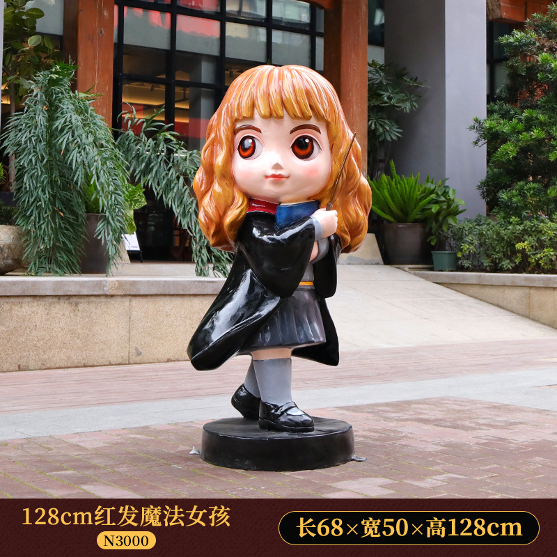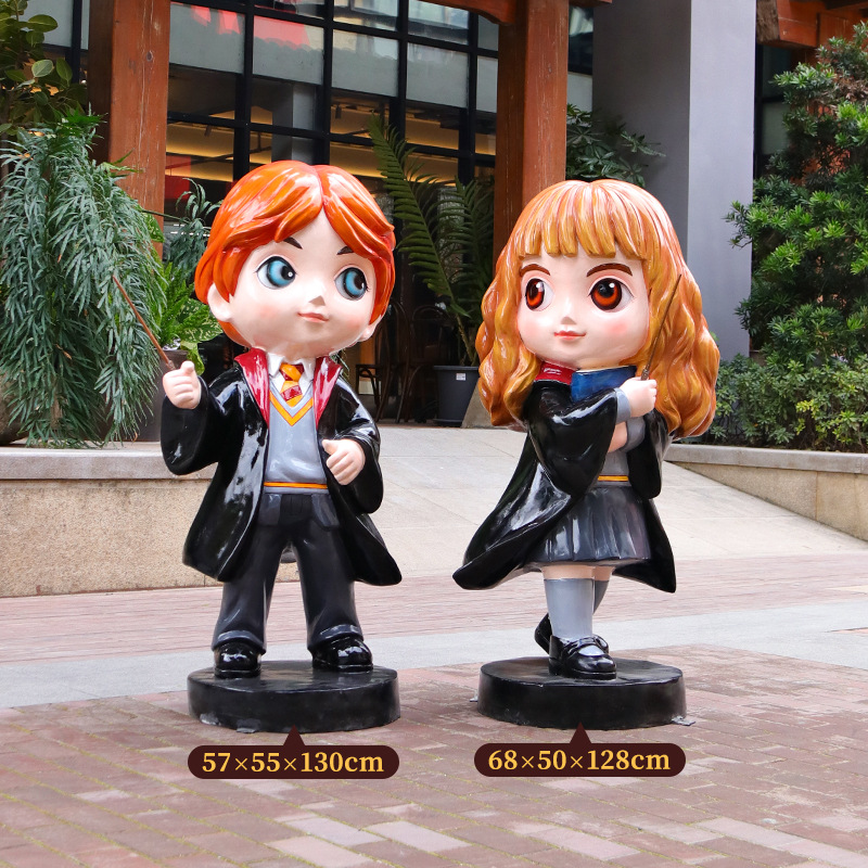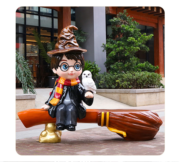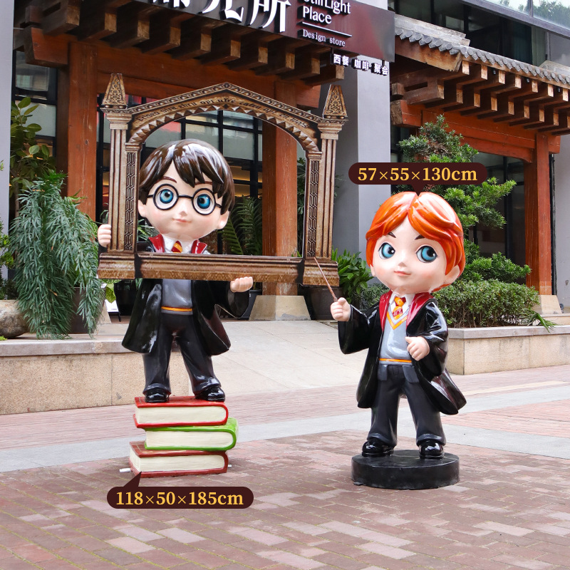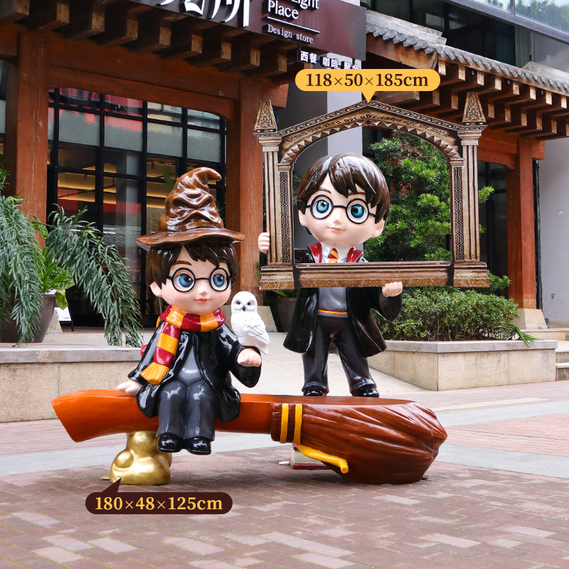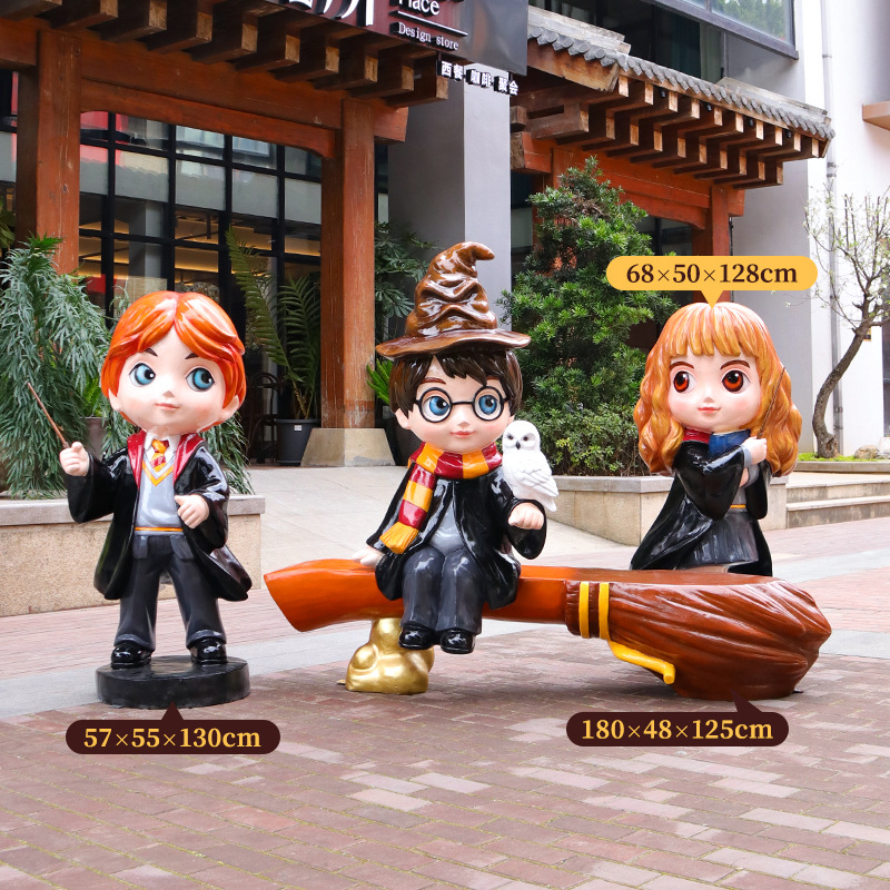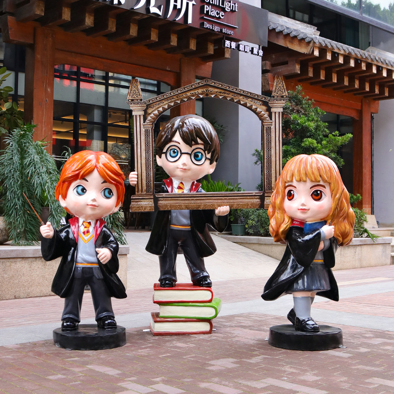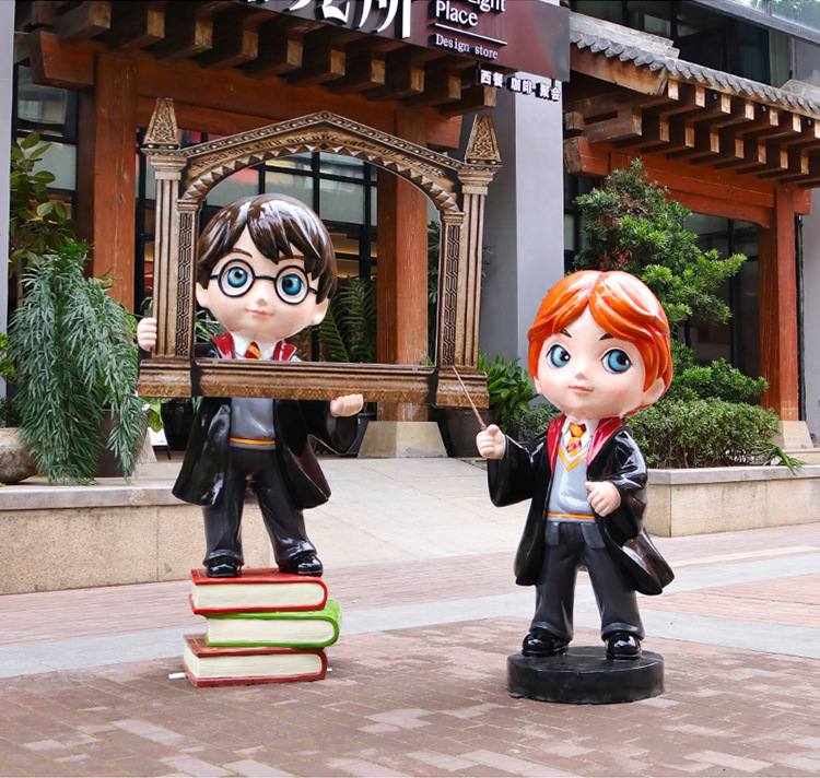 户外玻璃钢卡通哈利波特雕塑商场电影院景观装饰赫敏魔杖大型摆件