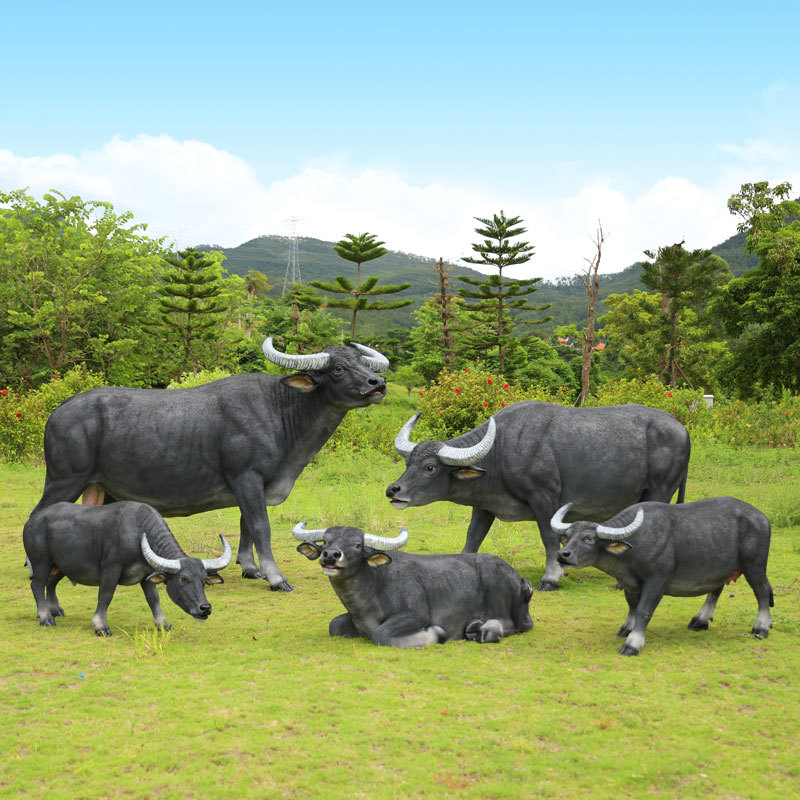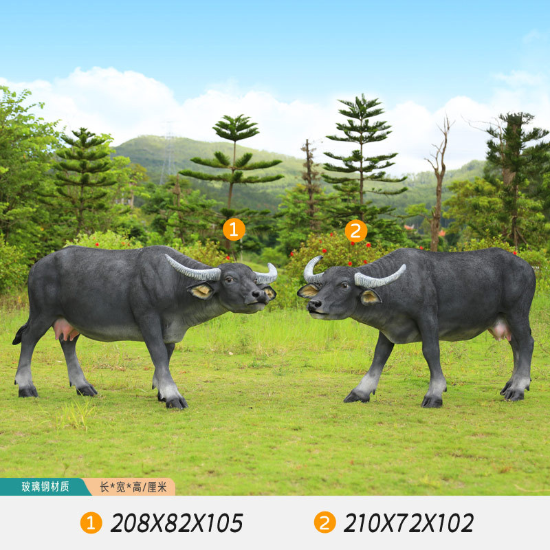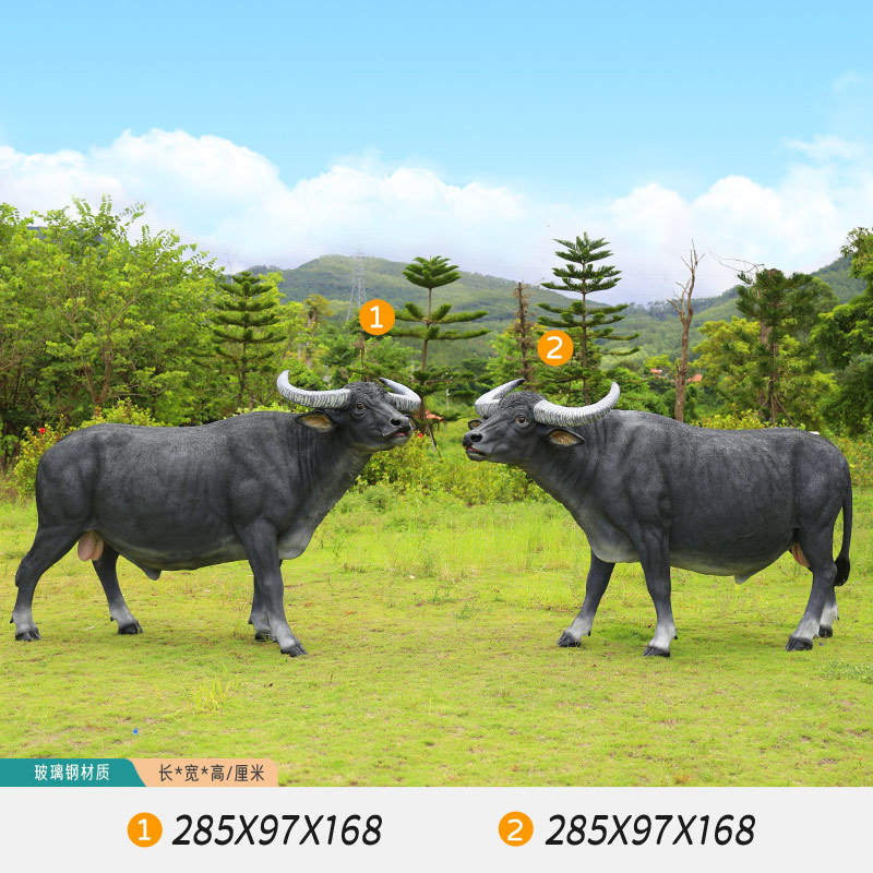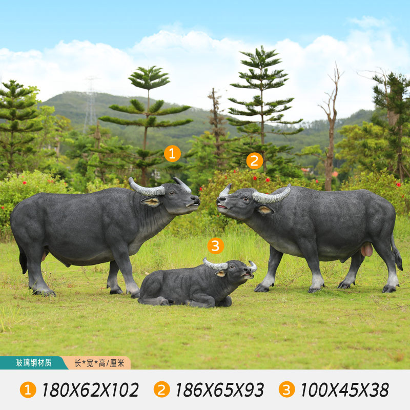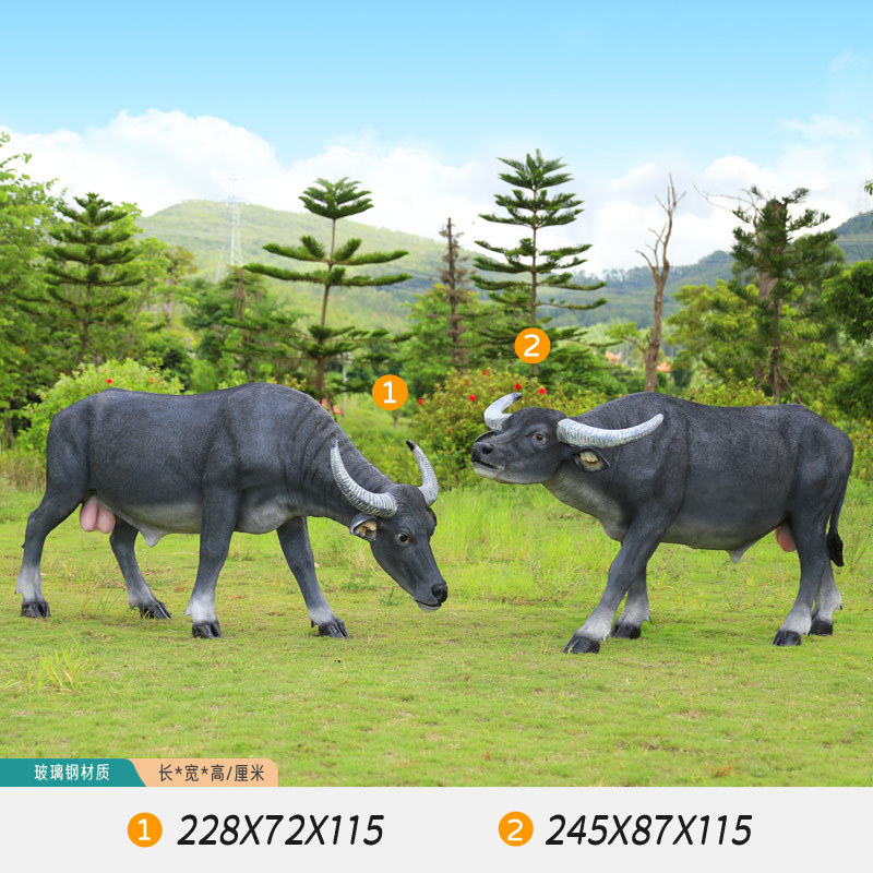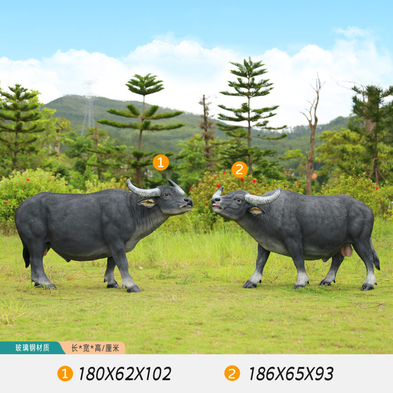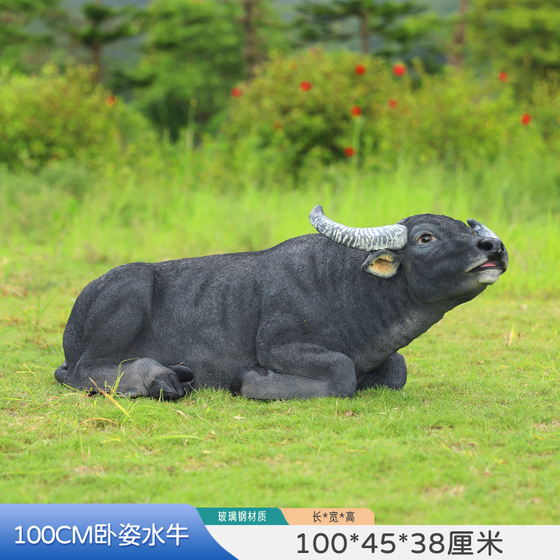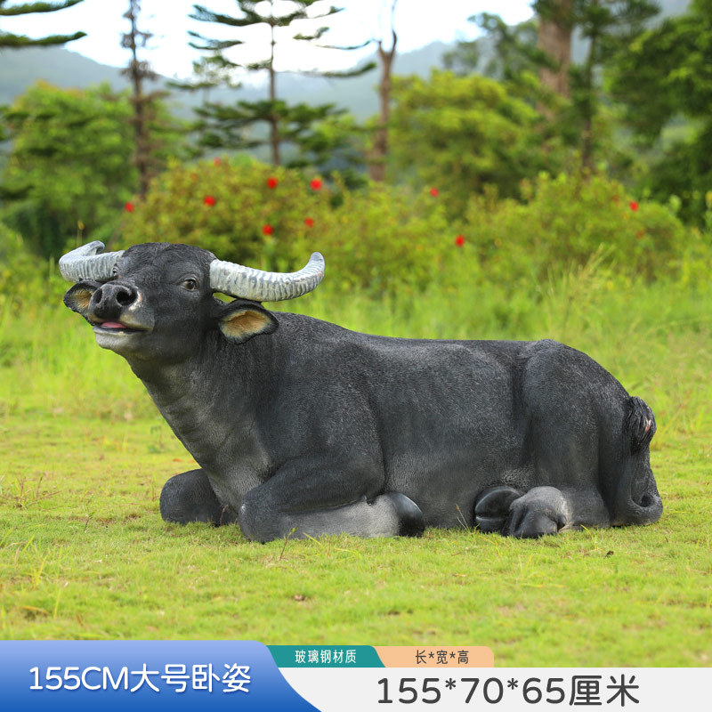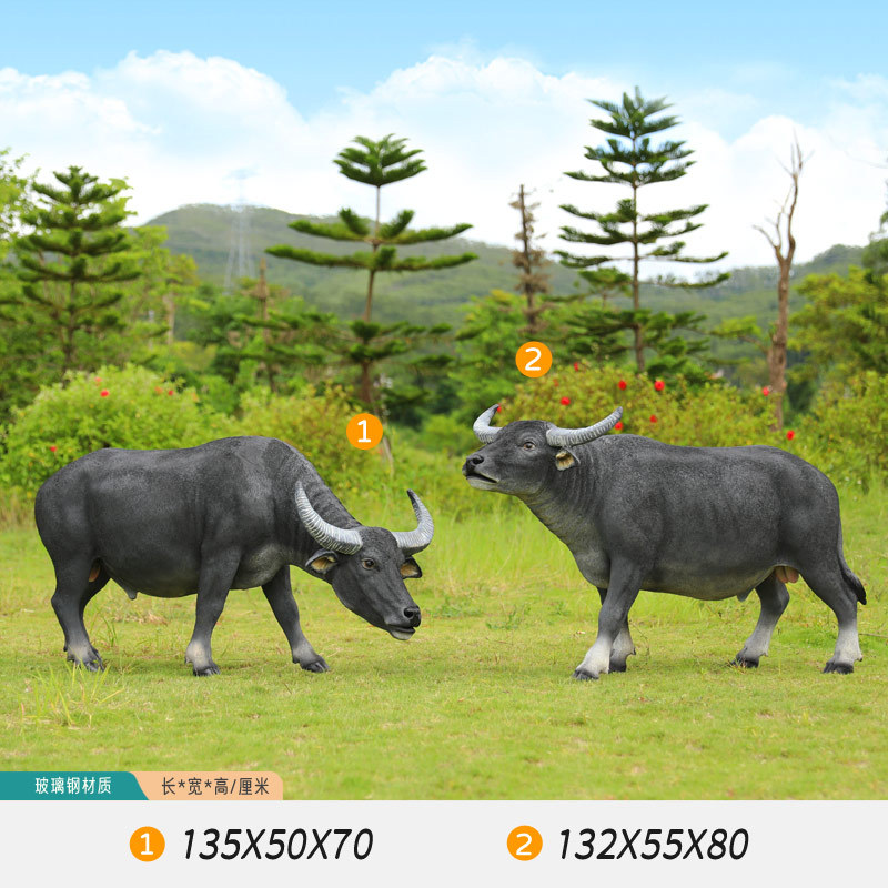 户外仿真玻璃钢大型水牛雕塑乡村公园林草坪农耕装饰动物模型摆件