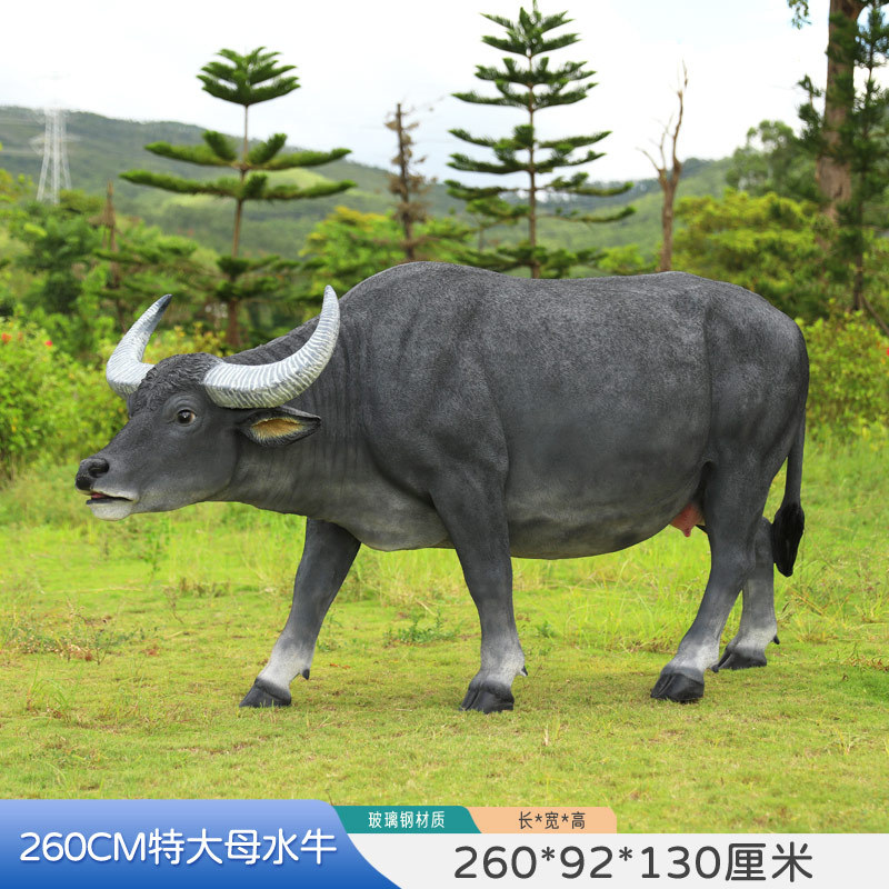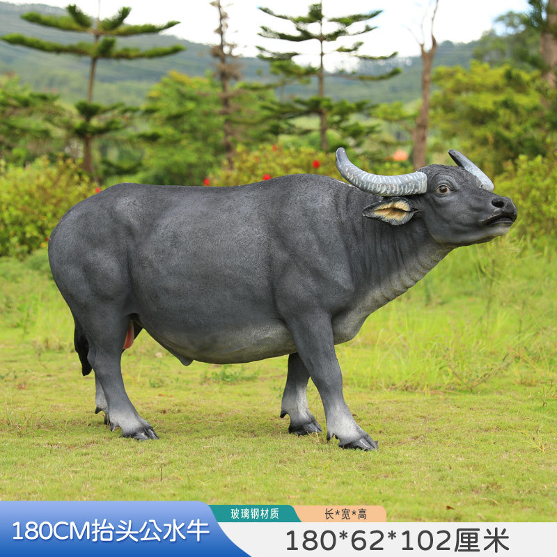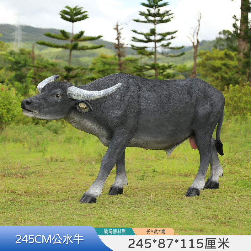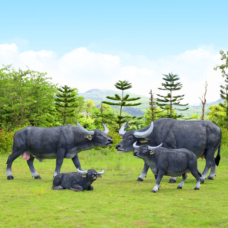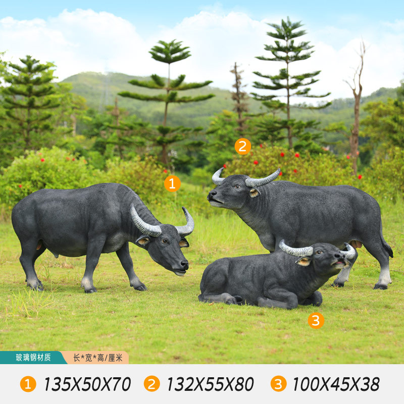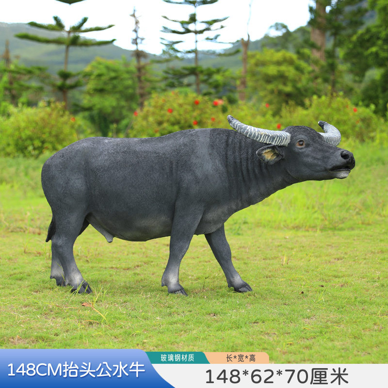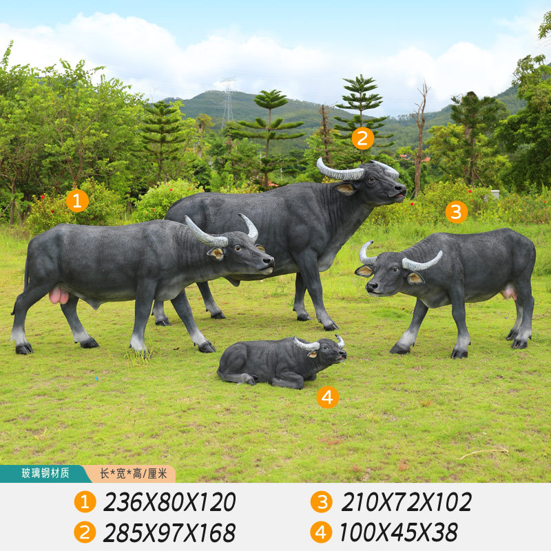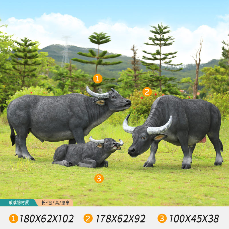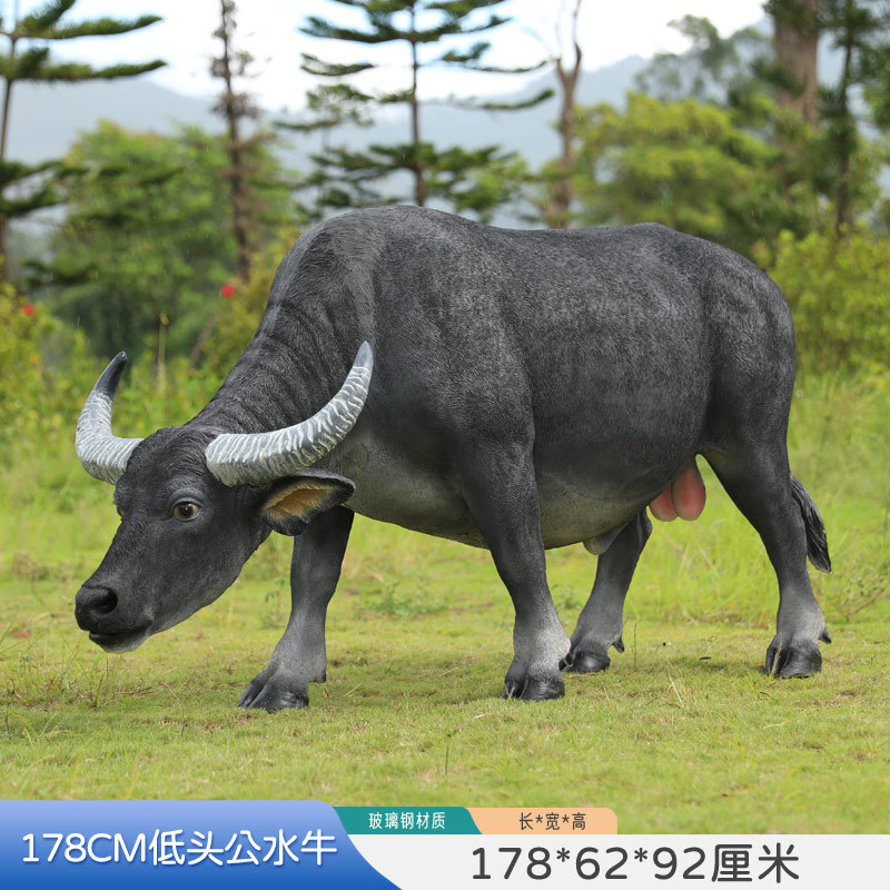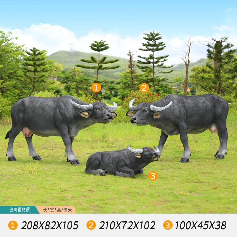 户外仿真玻璃钢大型水牛雕塑乡村公园林草坪农耕装饰动物模型摆件