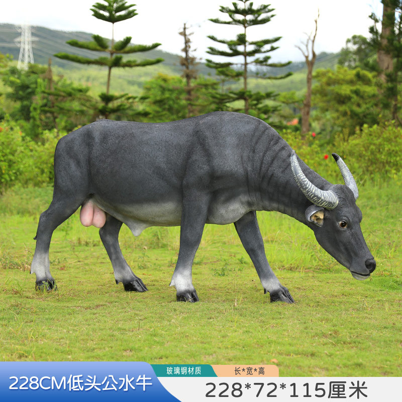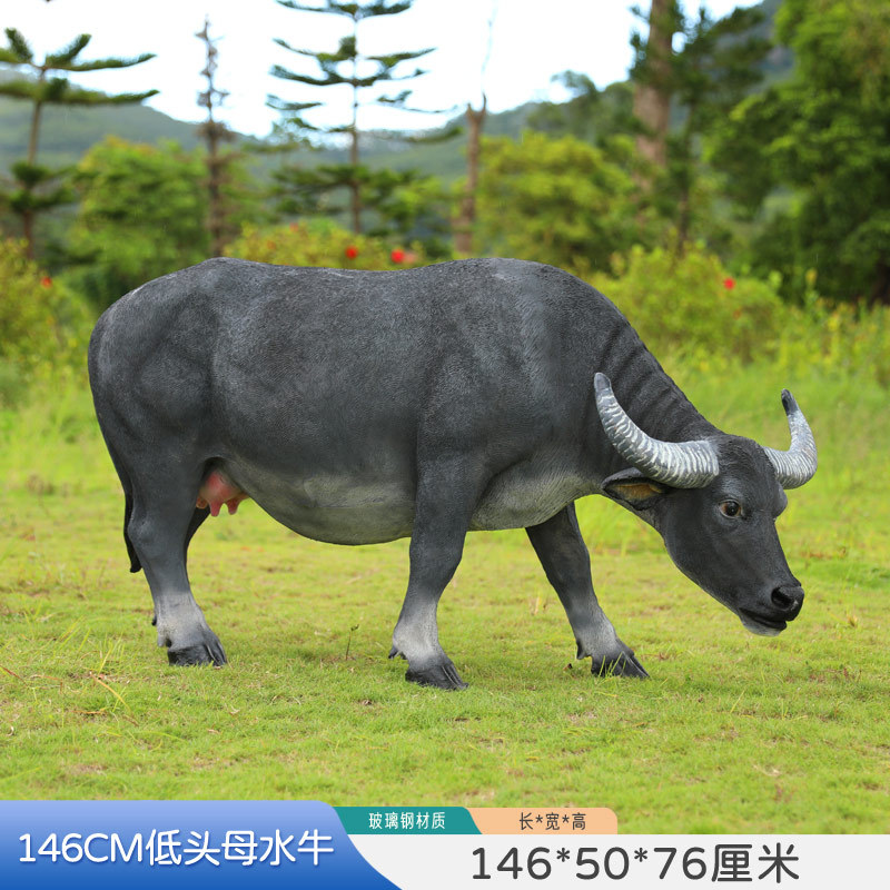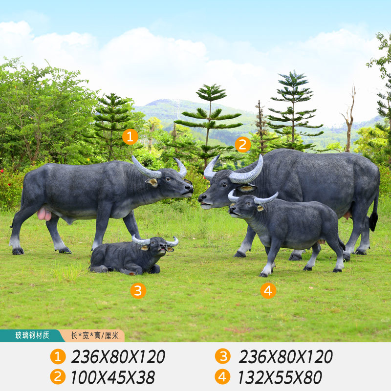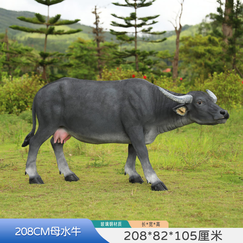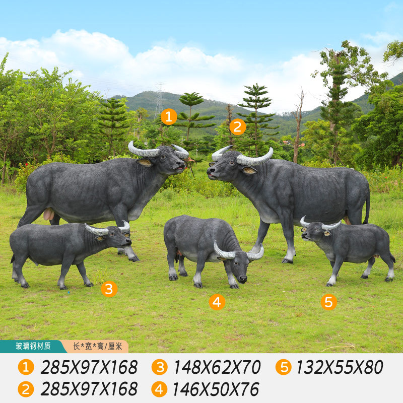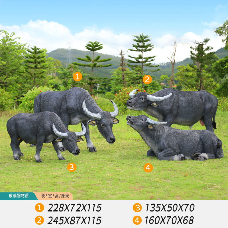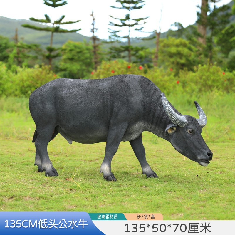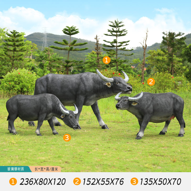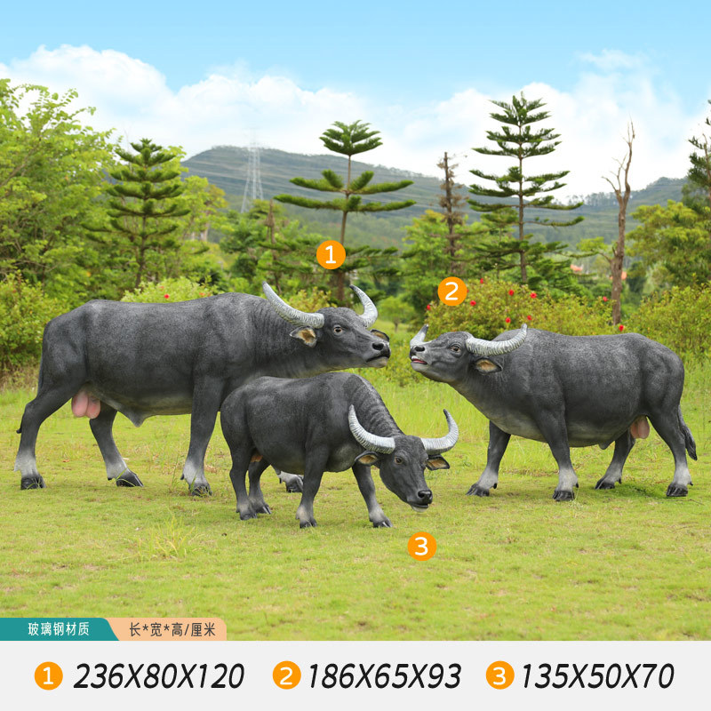 户外仿真玻璃钢大型水牛雕塑乡村公园林草坪农耕装饰动物模型摆件