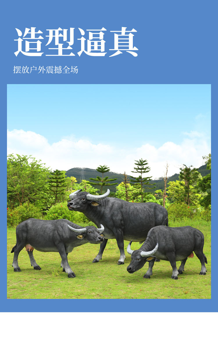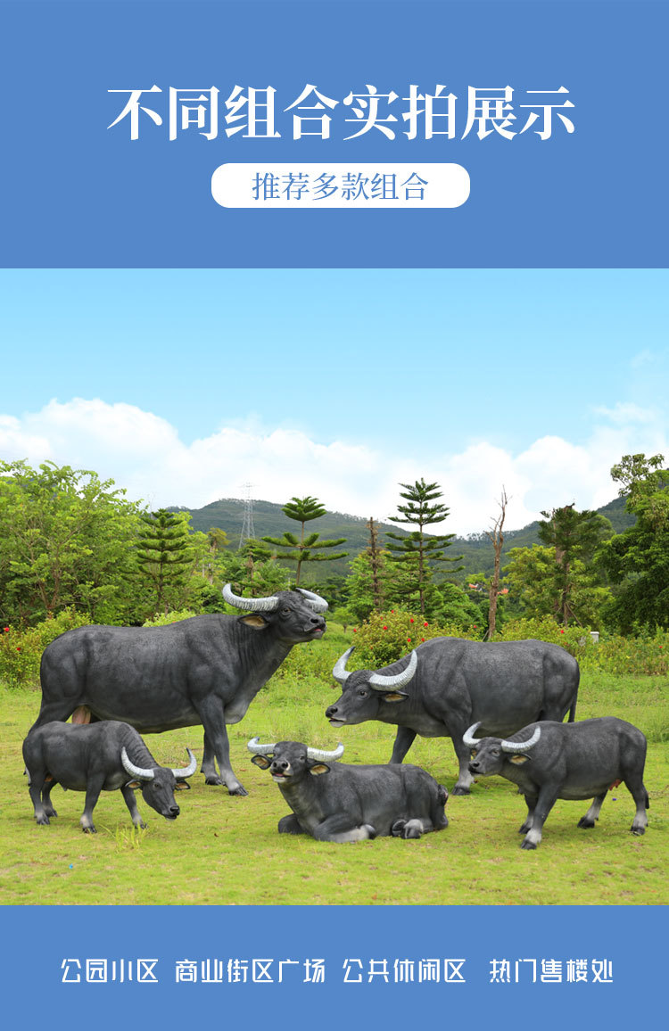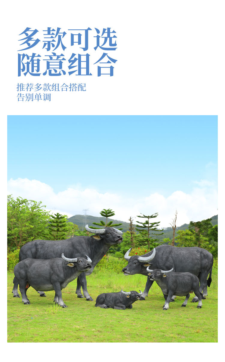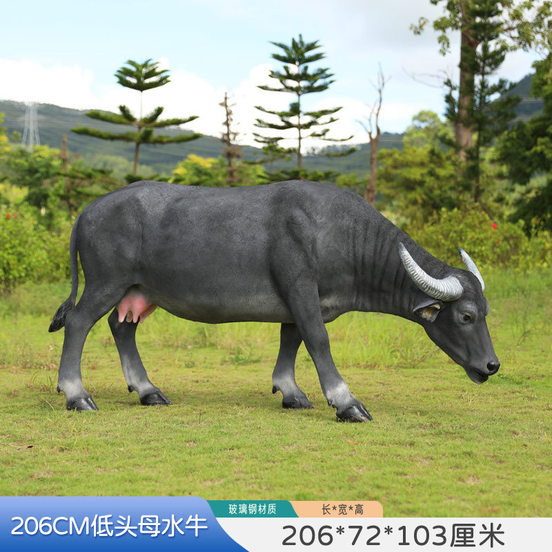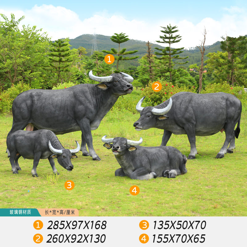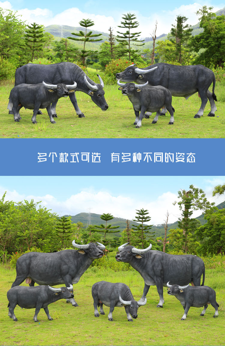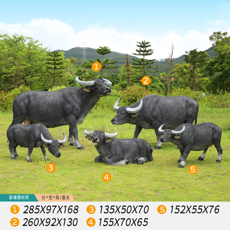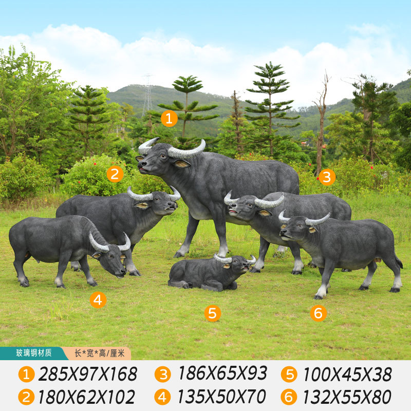 户外仿真玻璃钢大型水牛雕塑乡村公园林草坪农耕装饰动物模型摆件