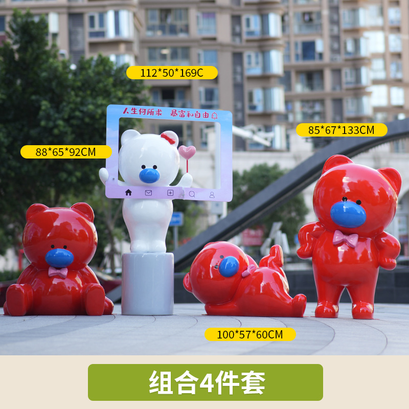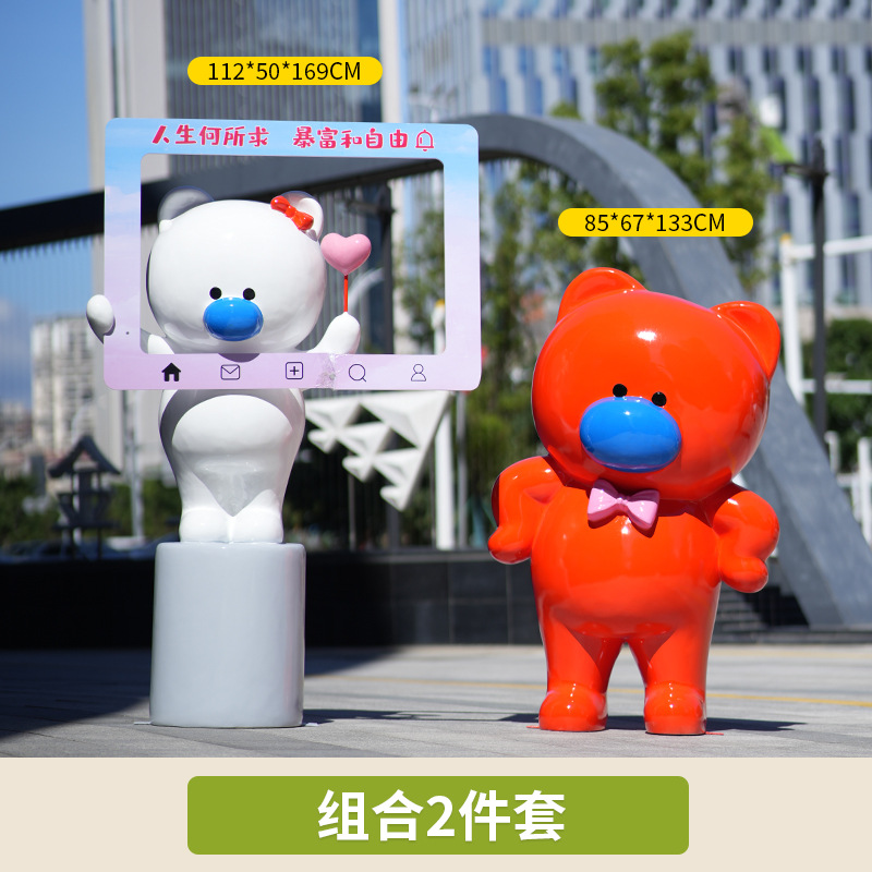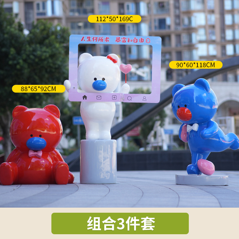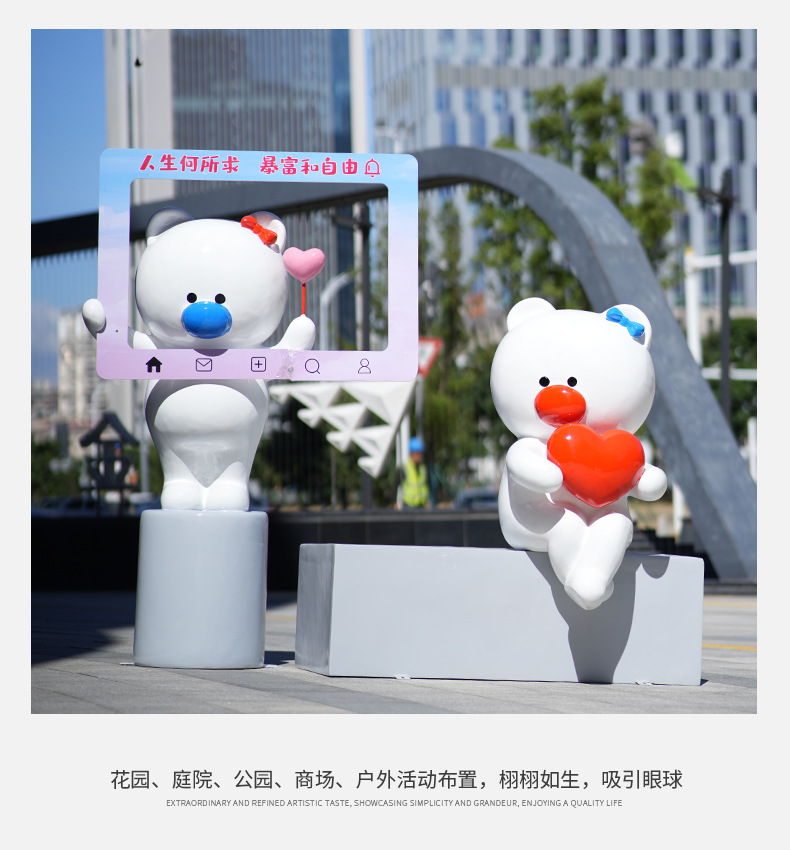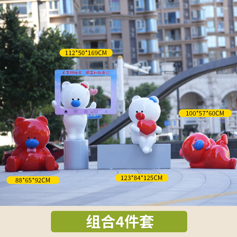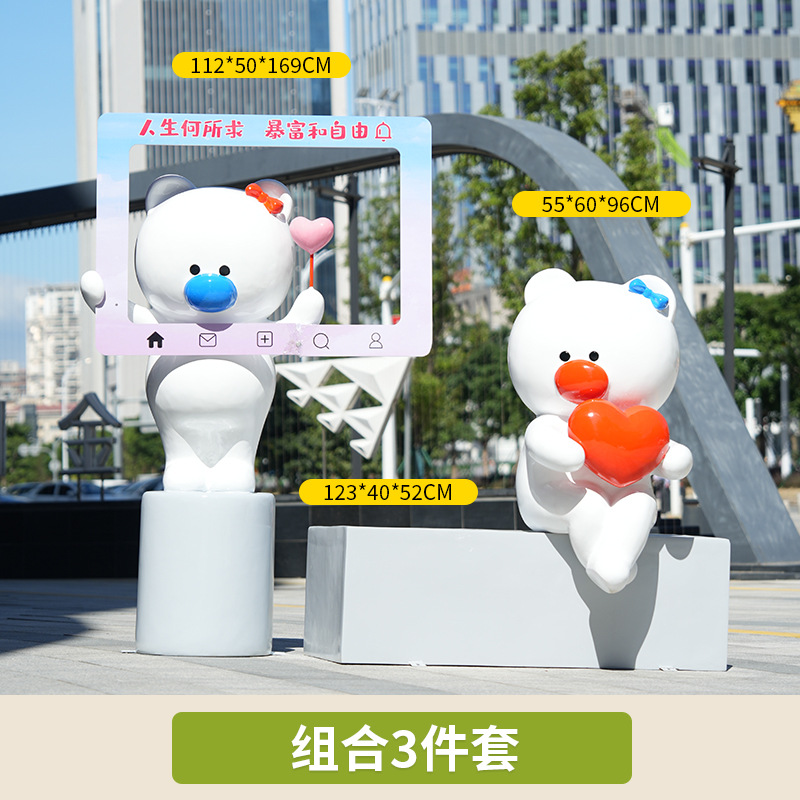 卡通爱心网红熊大摆件商场店铺景区门口拍照座椅相框雕塑装饰美陈