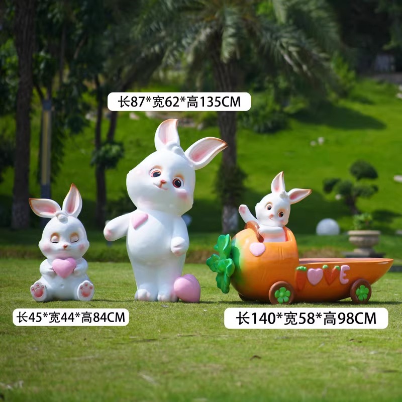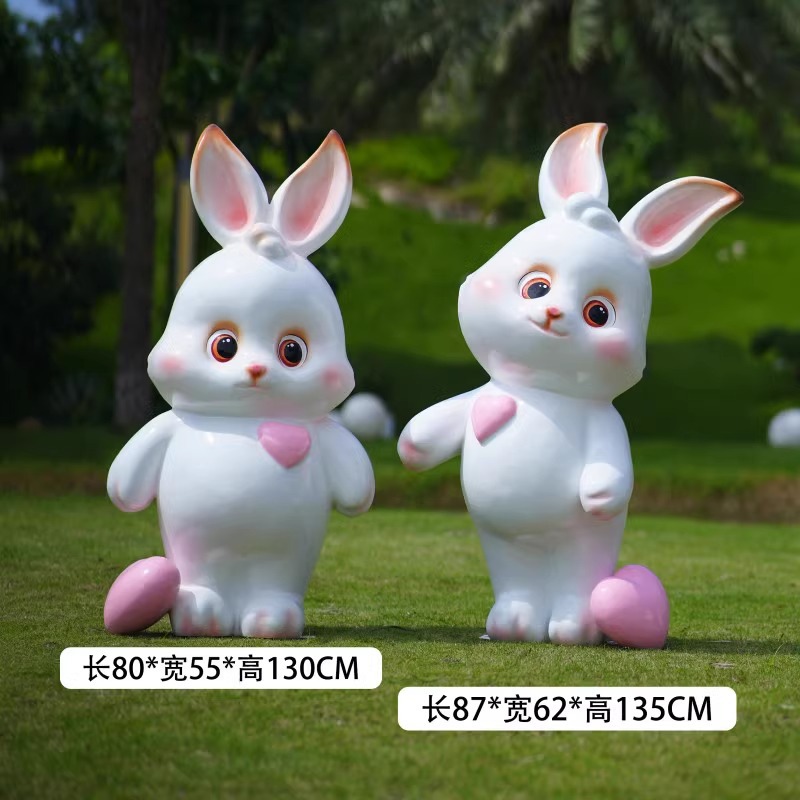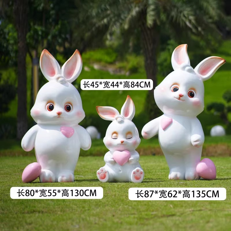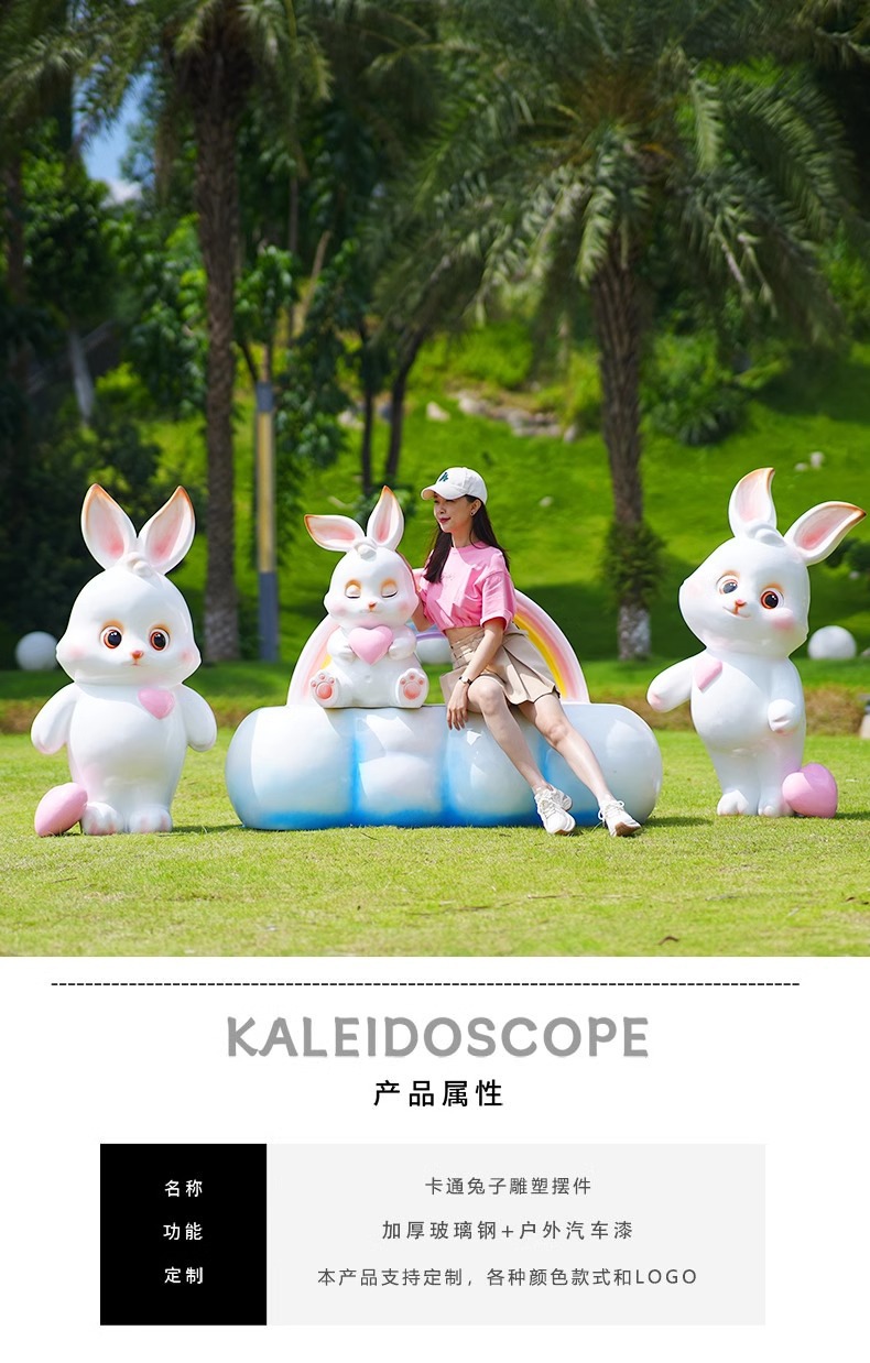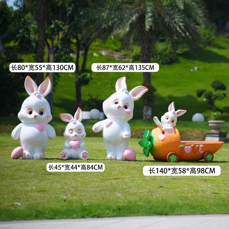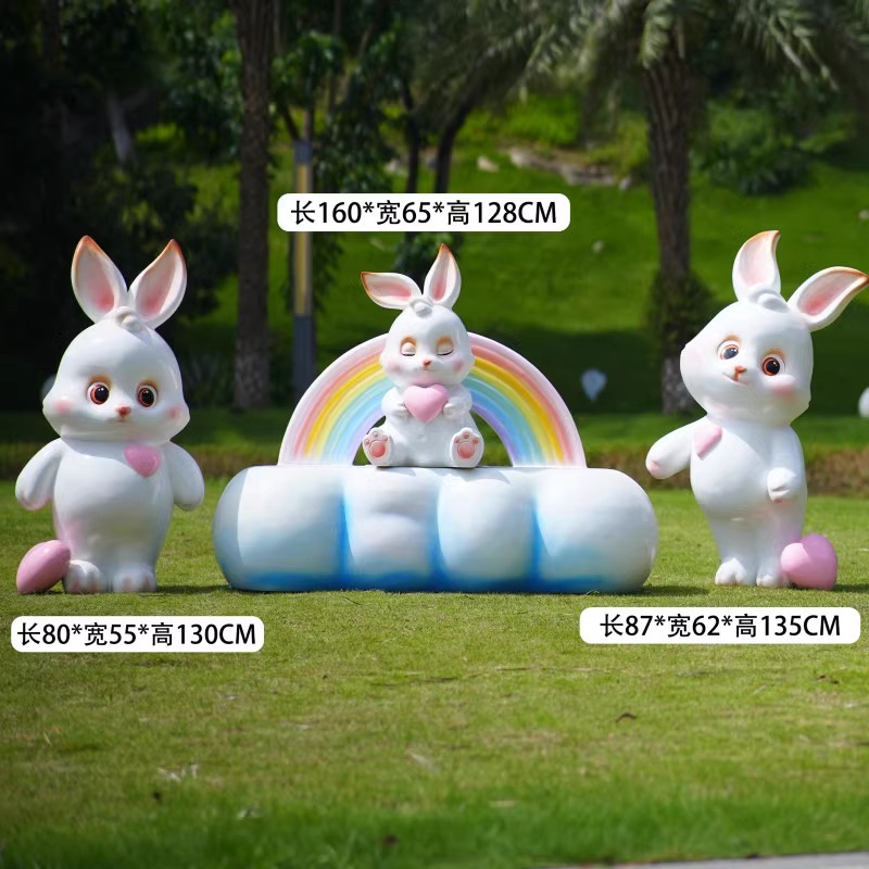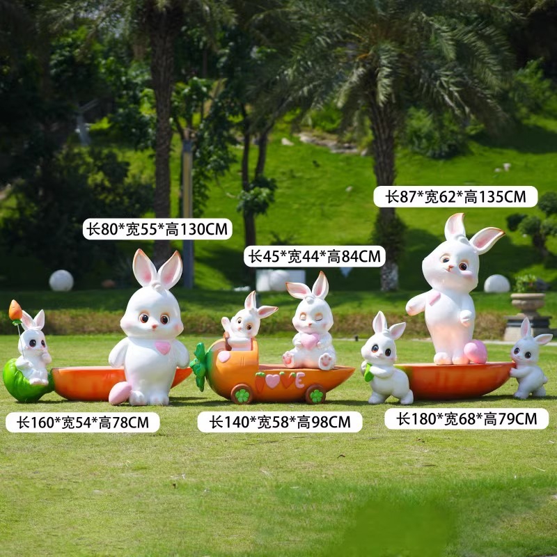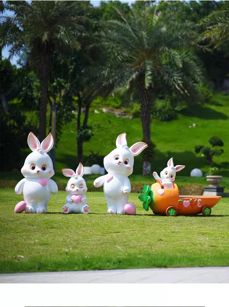 户外玻璃钢卡通兔子雕塑幼儿园林景观小品动物摆件草坪美陈装饰品