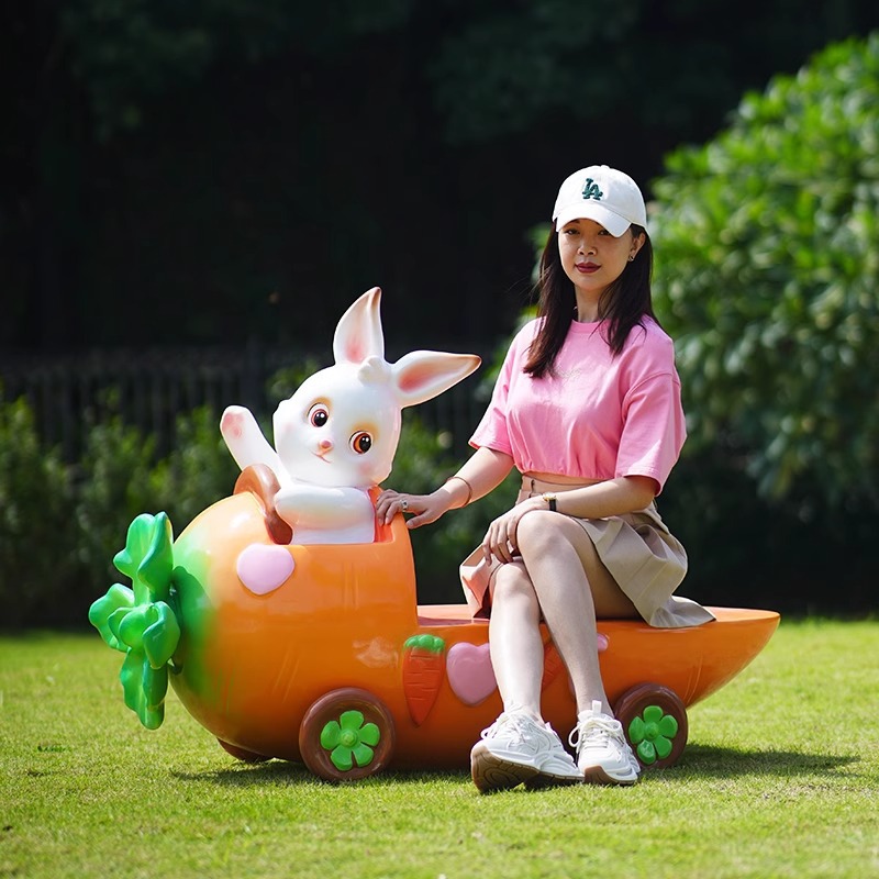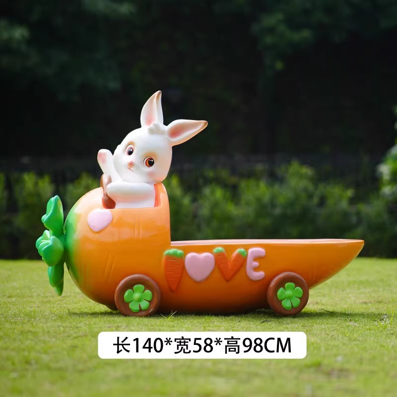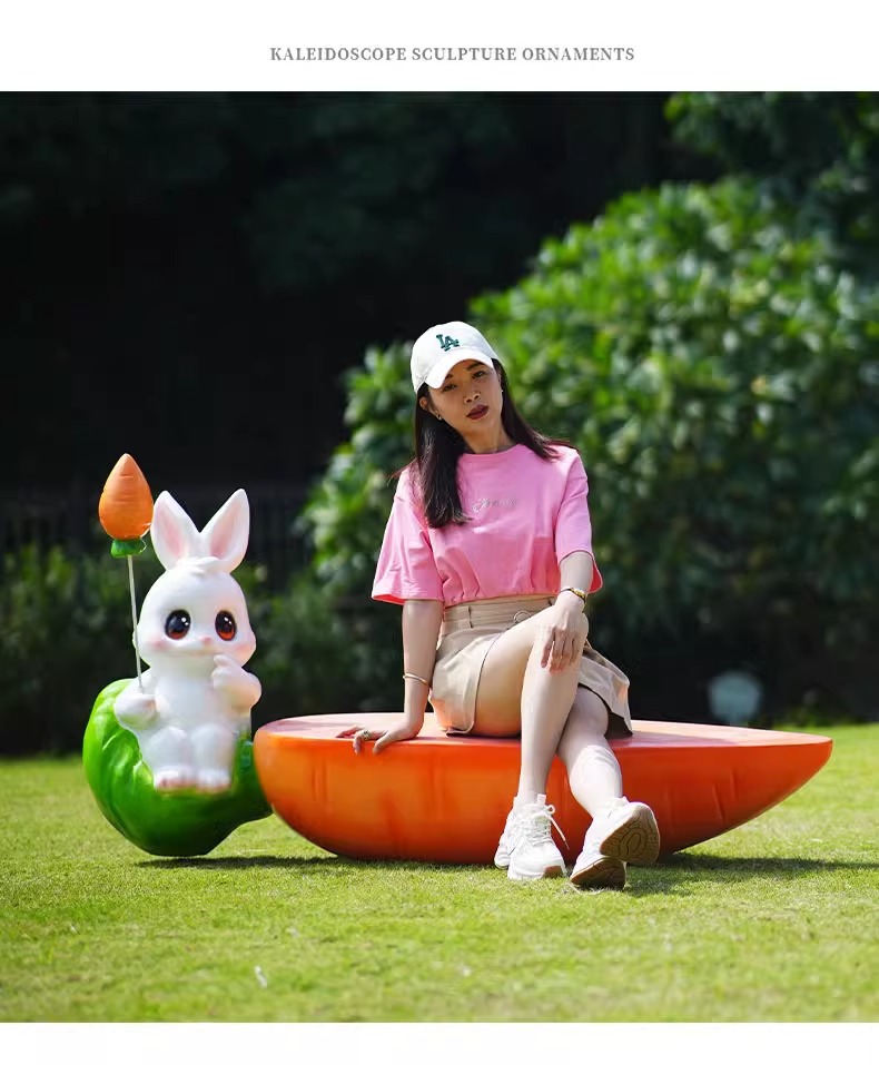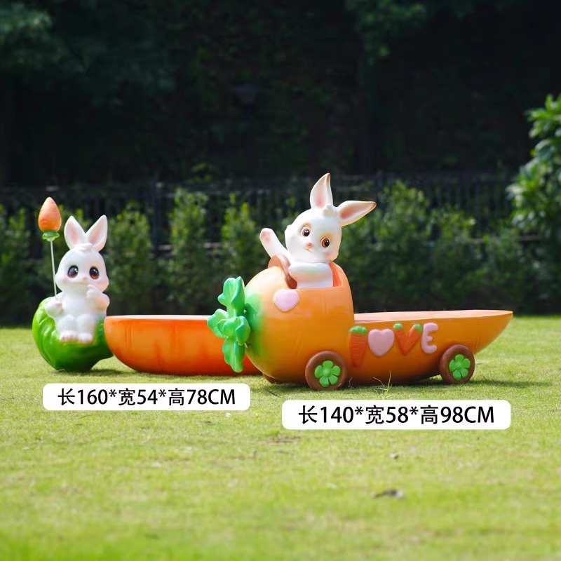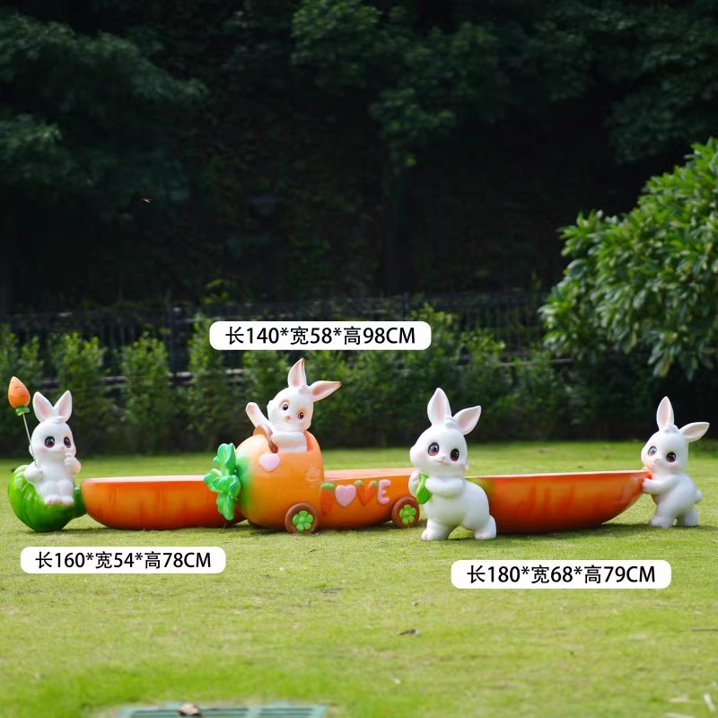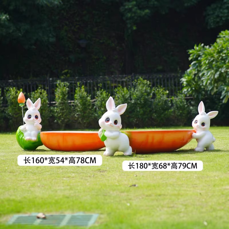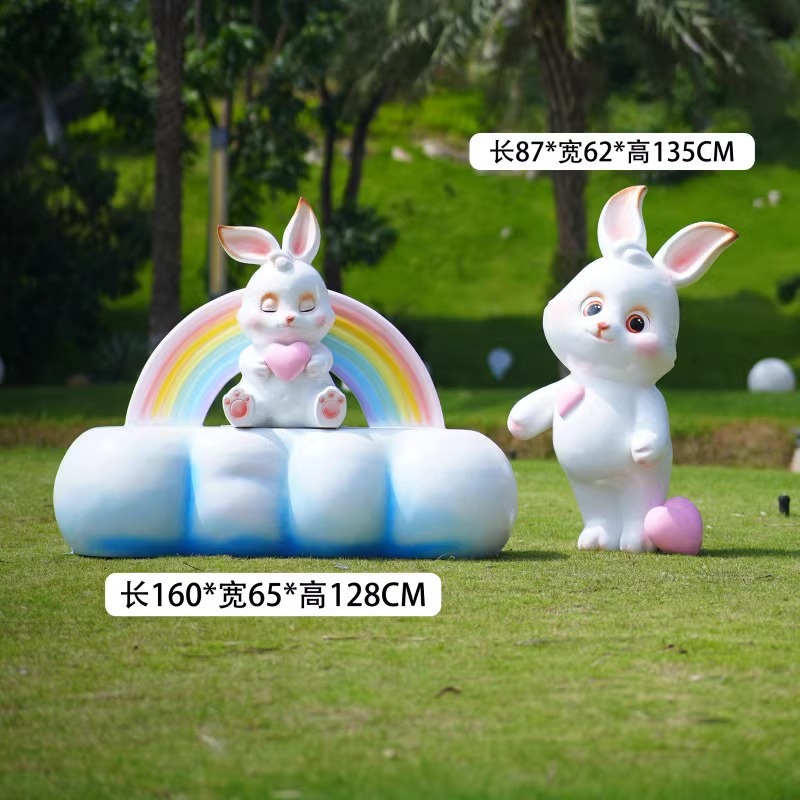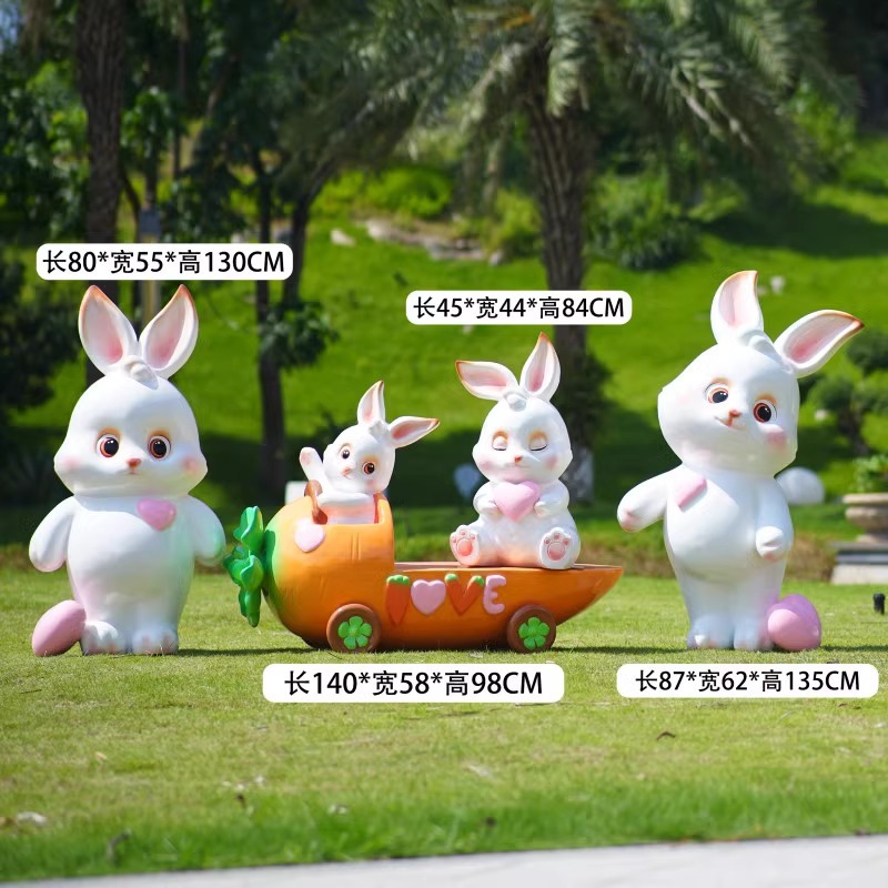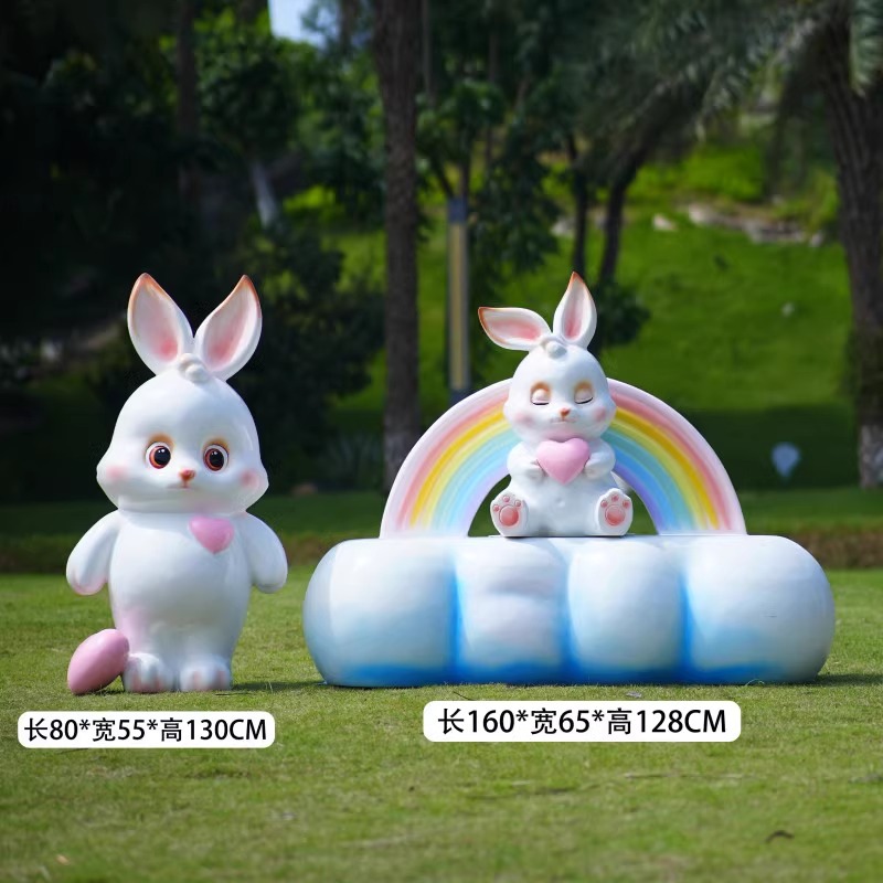 户外玻璃钢卡通兔子雕塑幼儿园林景观小品动物摆件草坪美陈装饰品