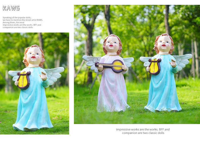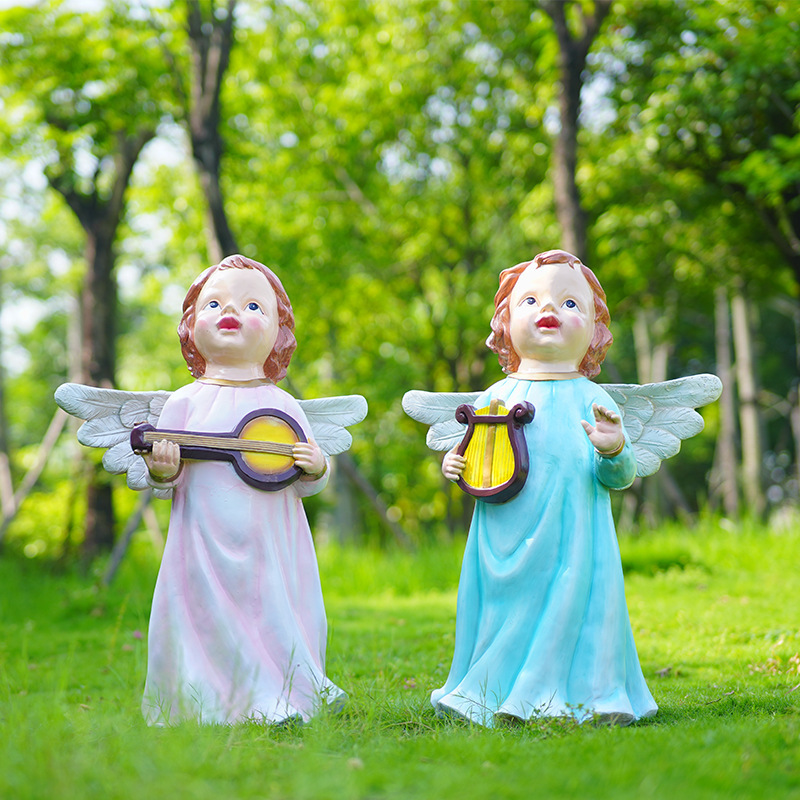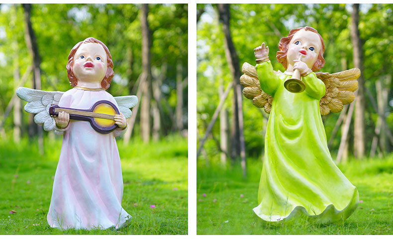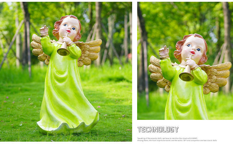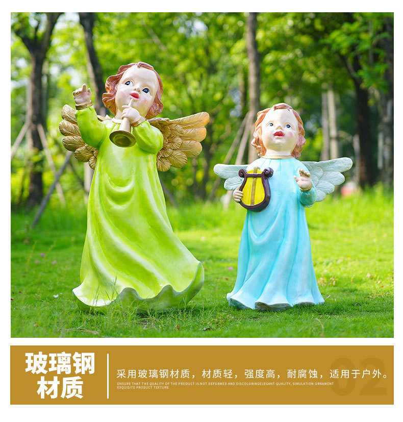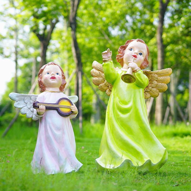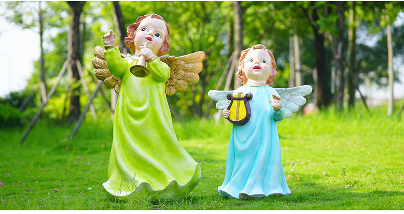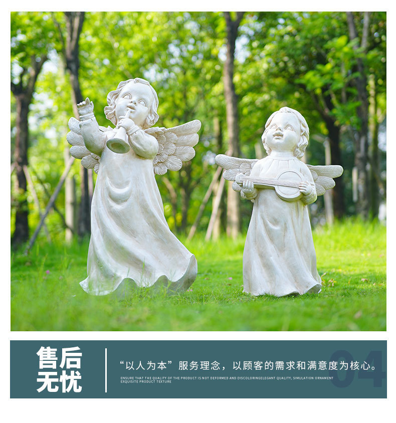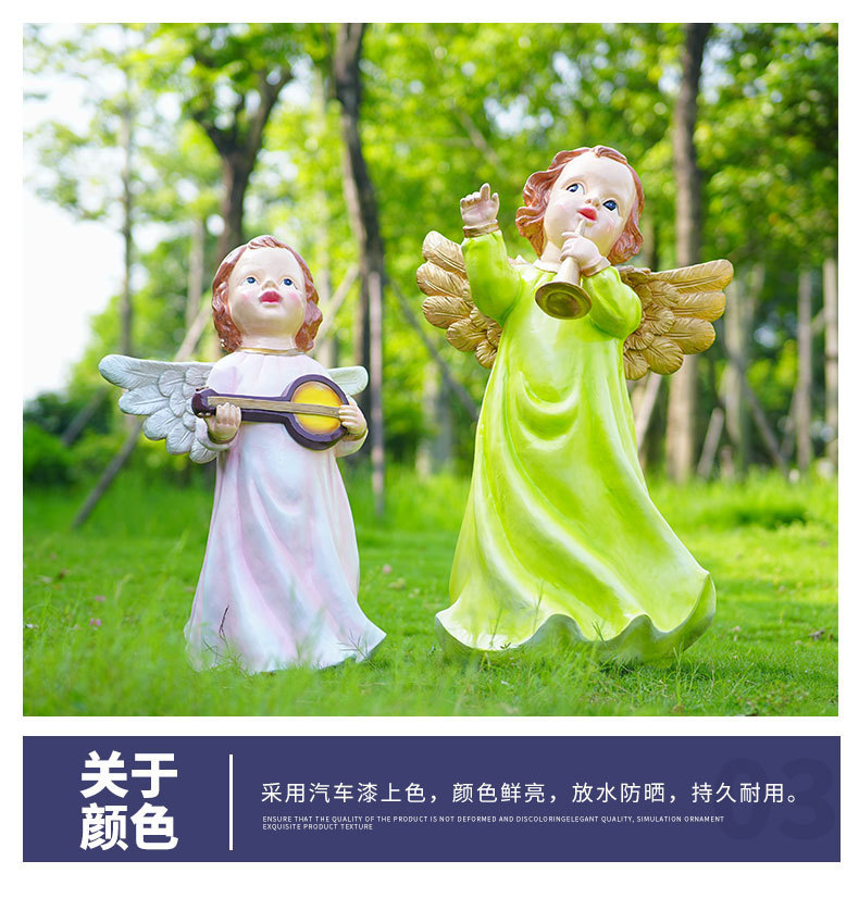 欧式复古天使摆件美式树脂石膏雕像雕塑小天使女孩落地装饰品道具