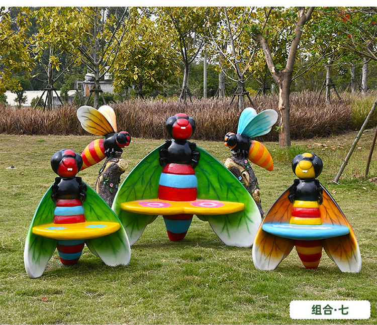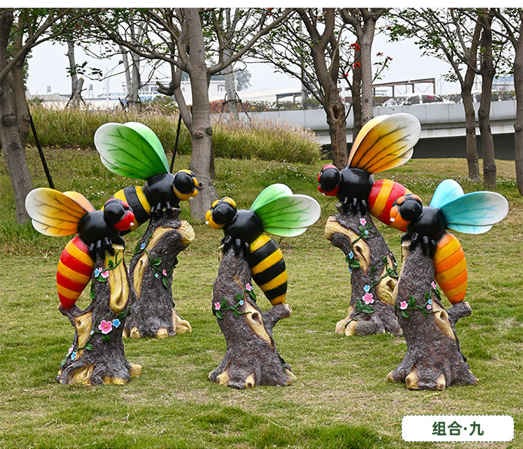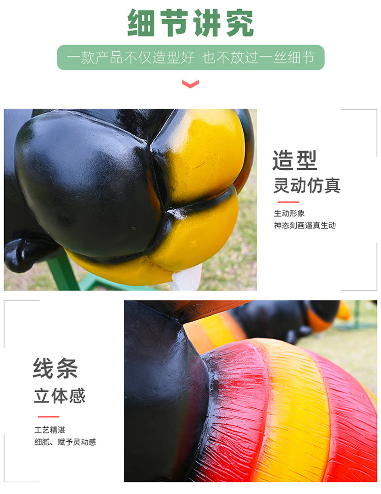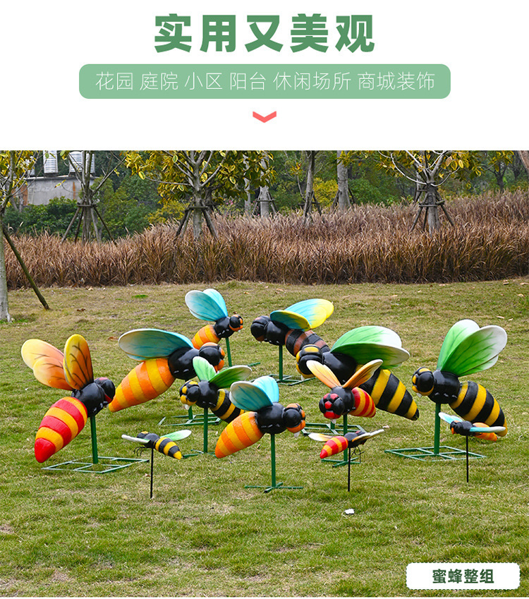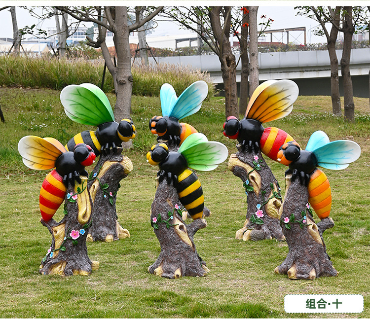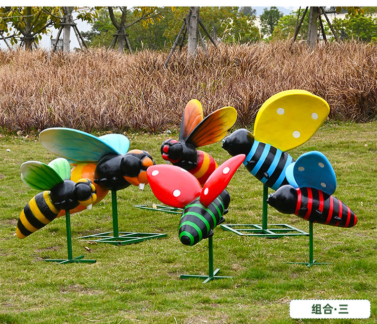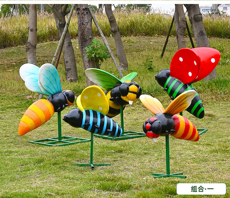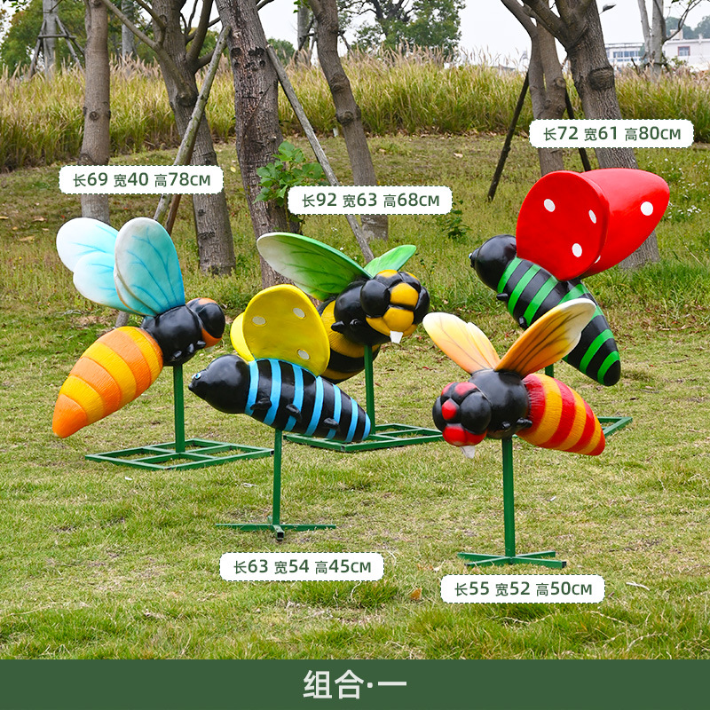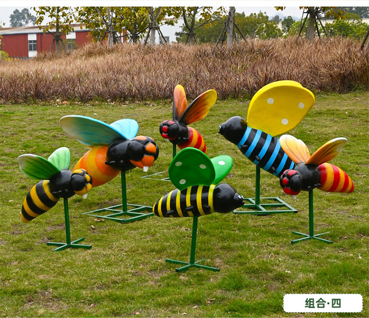 户外幼儿园卡通蜜蜂玻璃钢雕塑仿真动物摆件园林景观庭院花园装饰