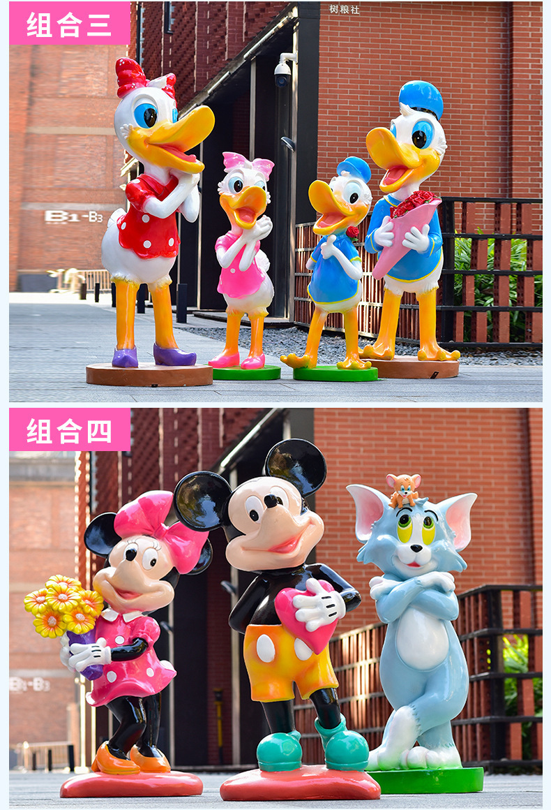 卡通玻璃钢雕塑米老鼠唐老鸭摆件商场美陈游乐场幼儿园户外装饰品