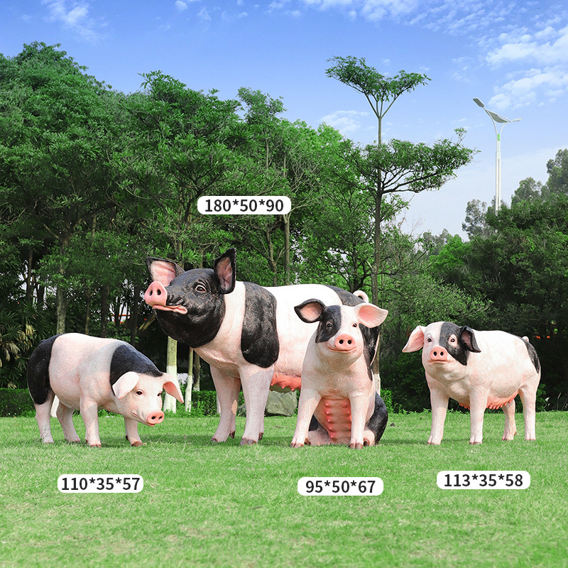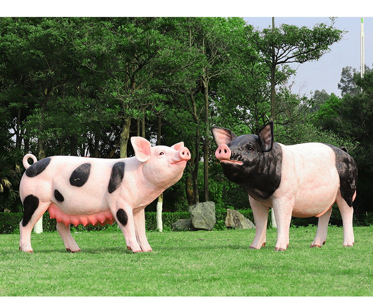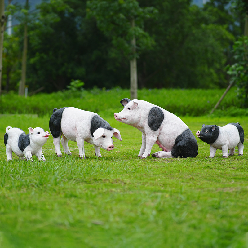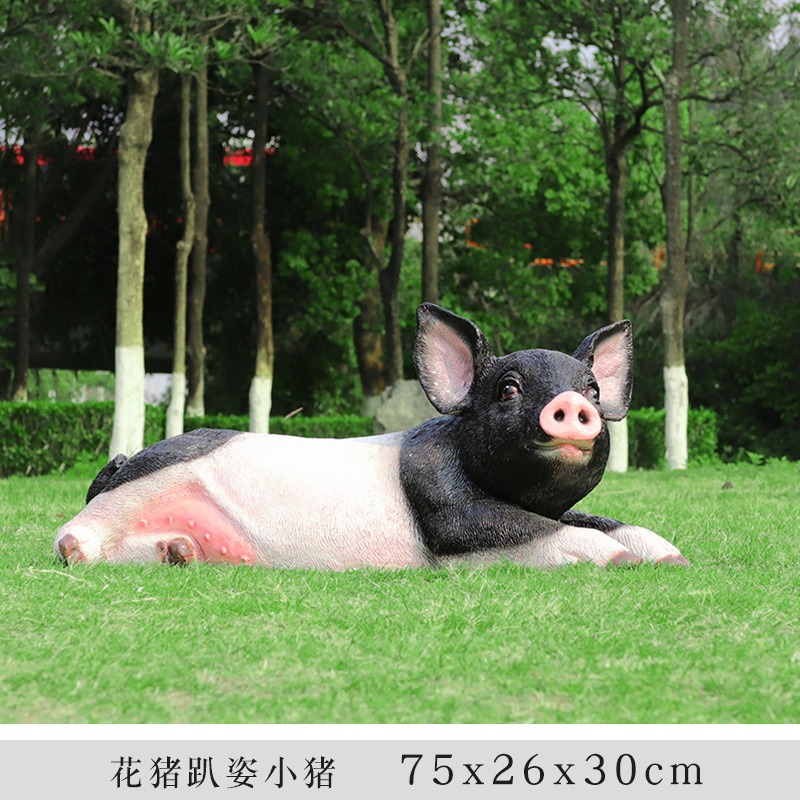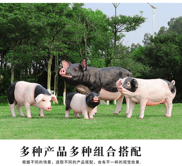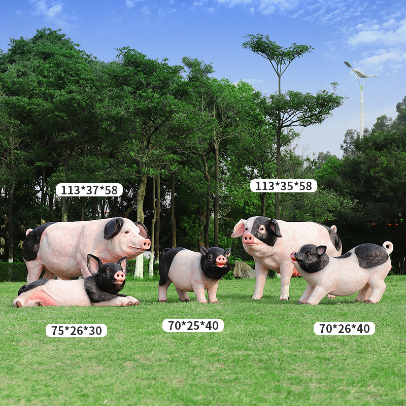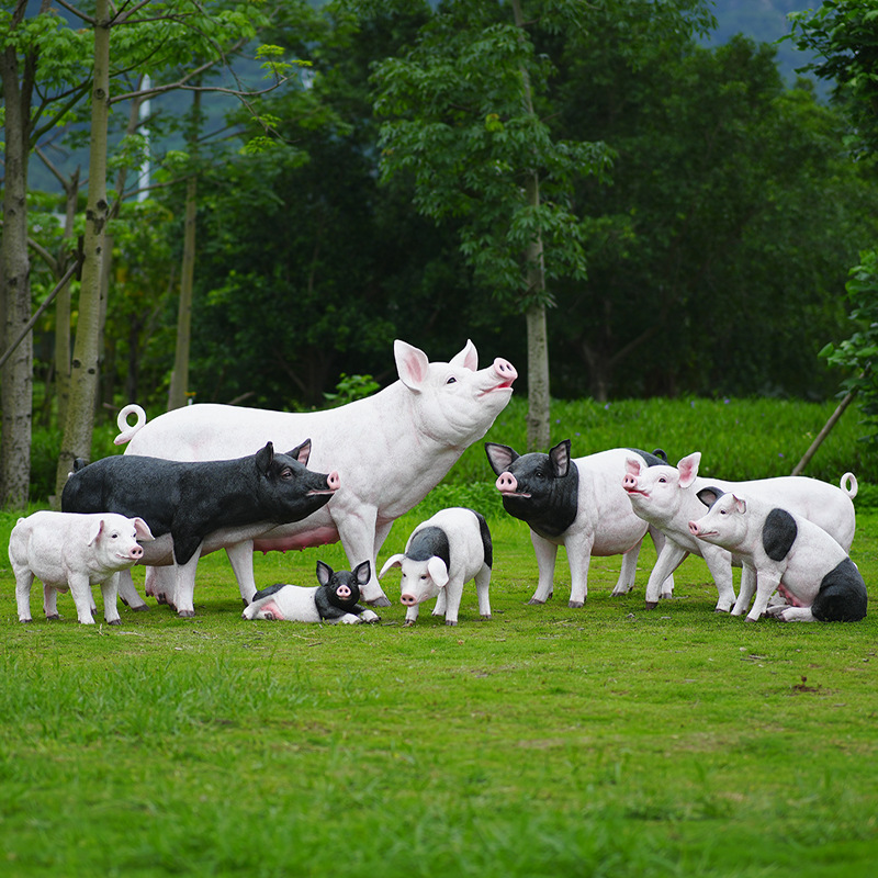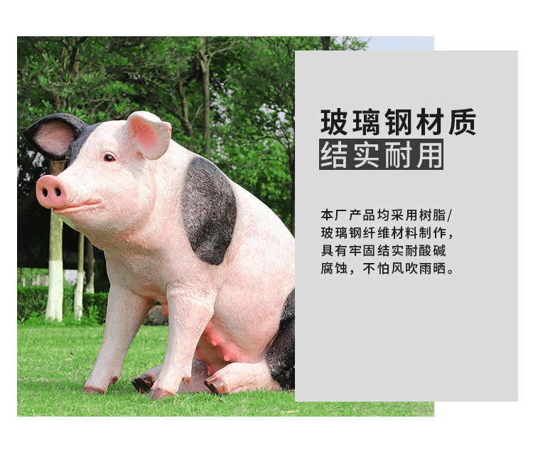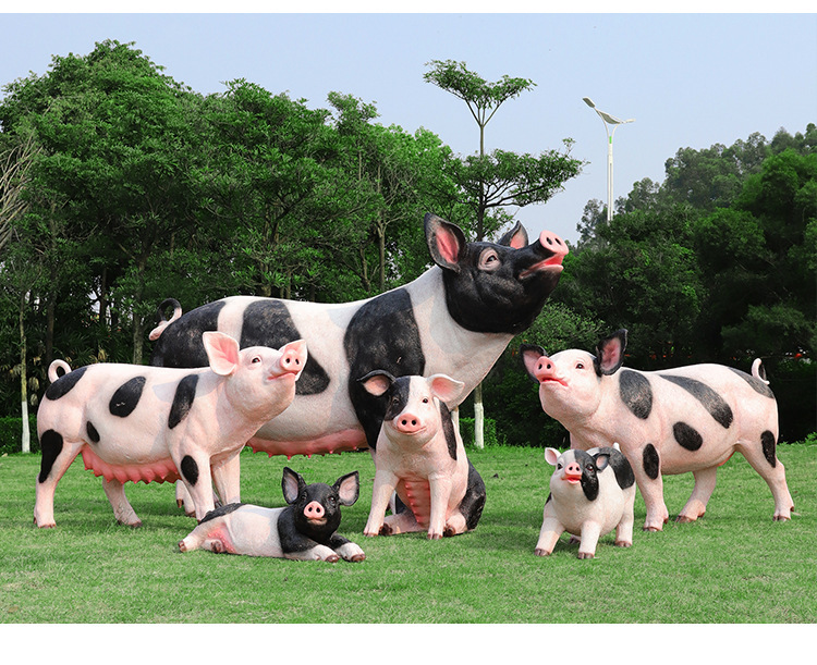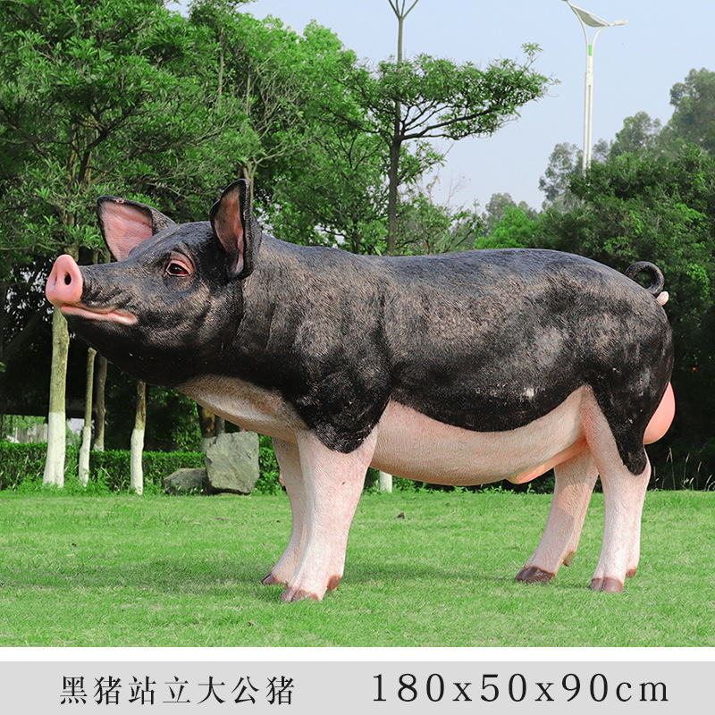 户外仿真猪雕塑玻璃钢花园农场园林造景黑猪模型十二摆件动物装饰