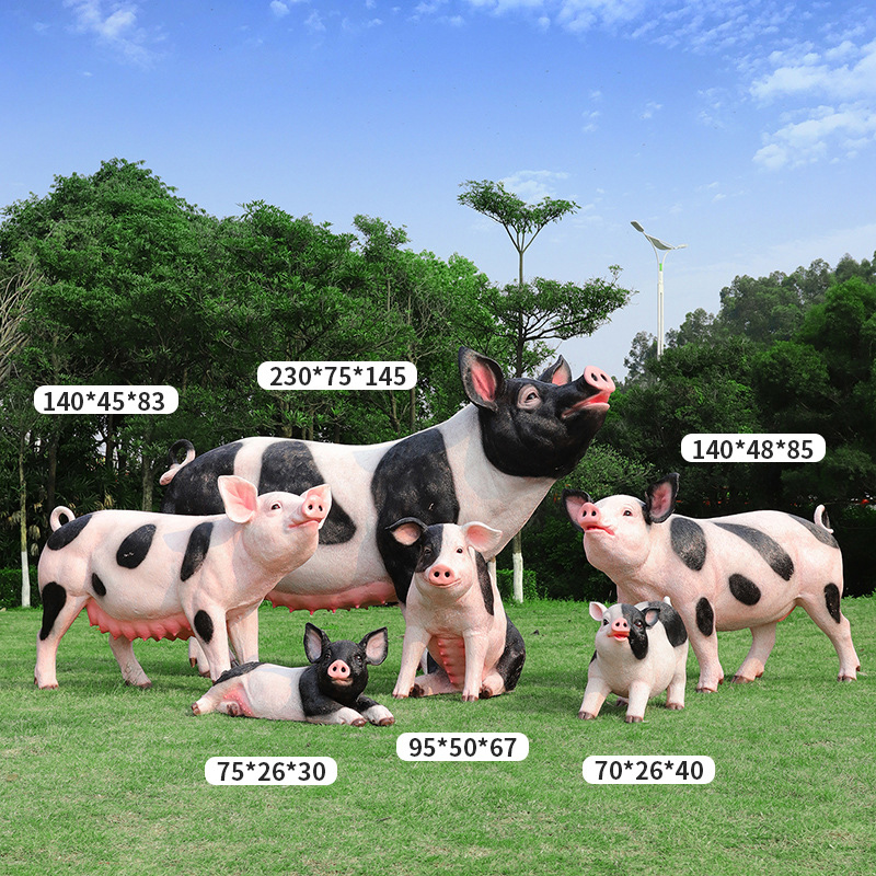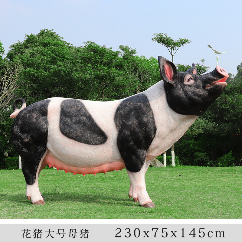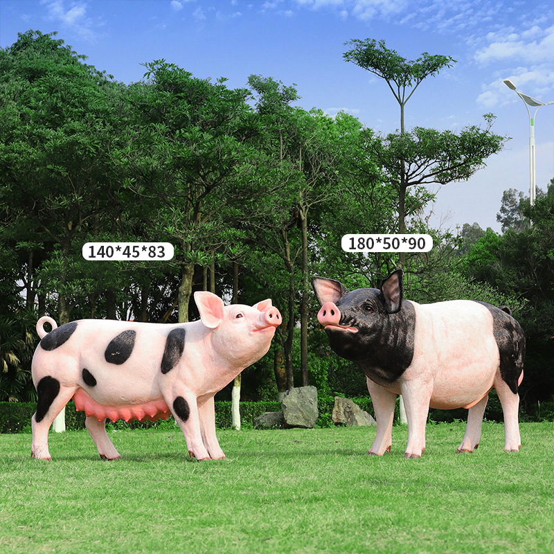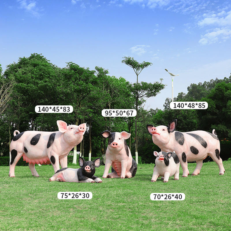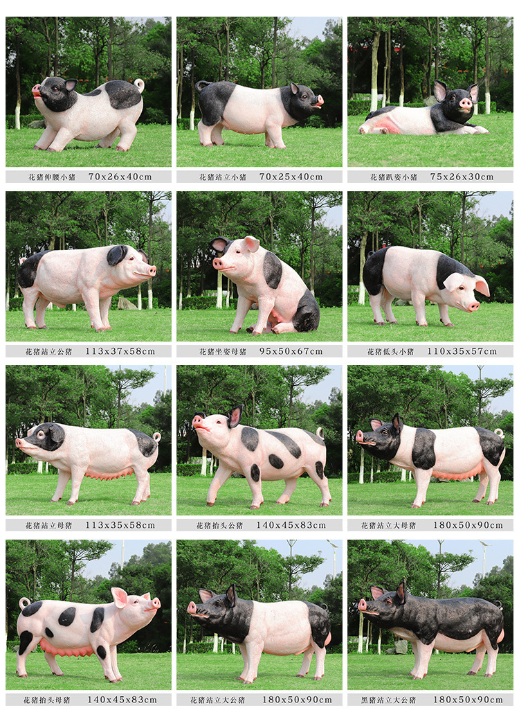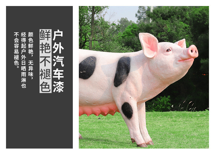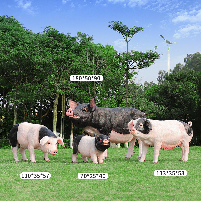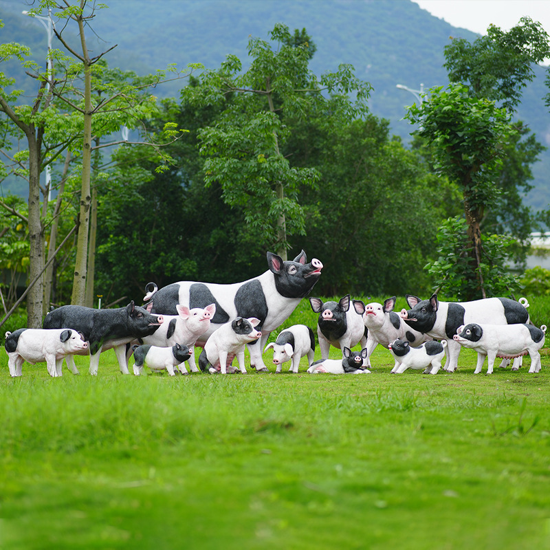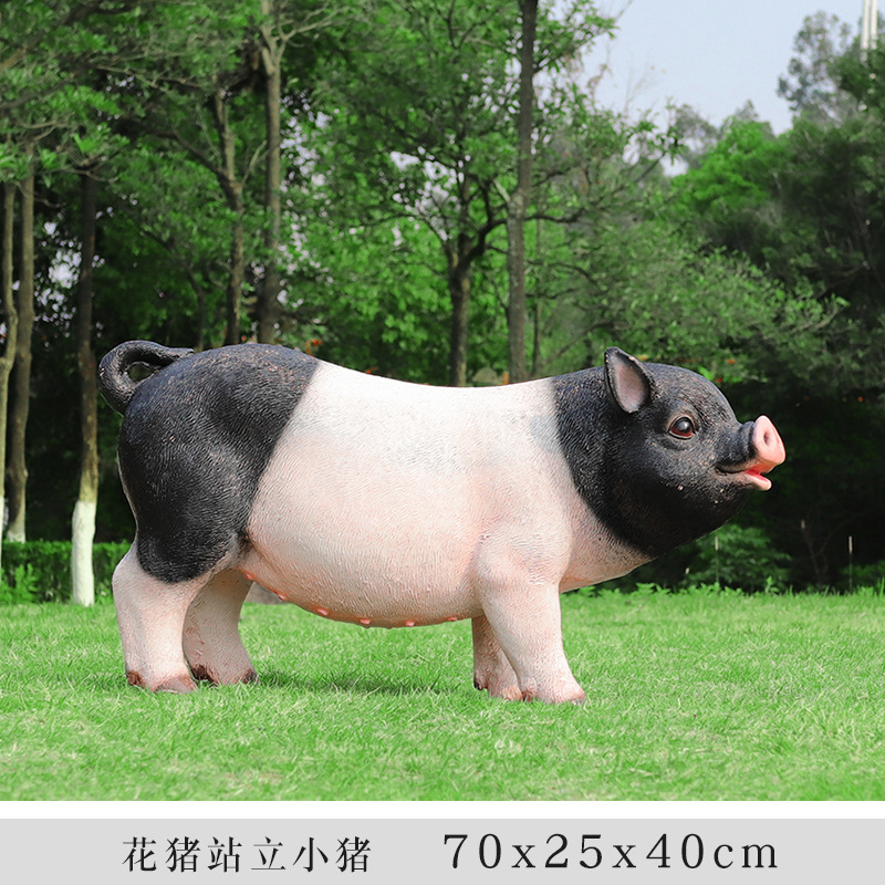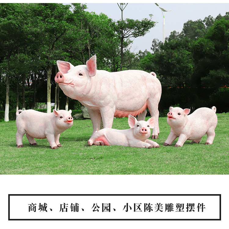 户外仿真猪雕塑玻璃钢花园农场园林造景黑猪模型十二摆件动物装饰