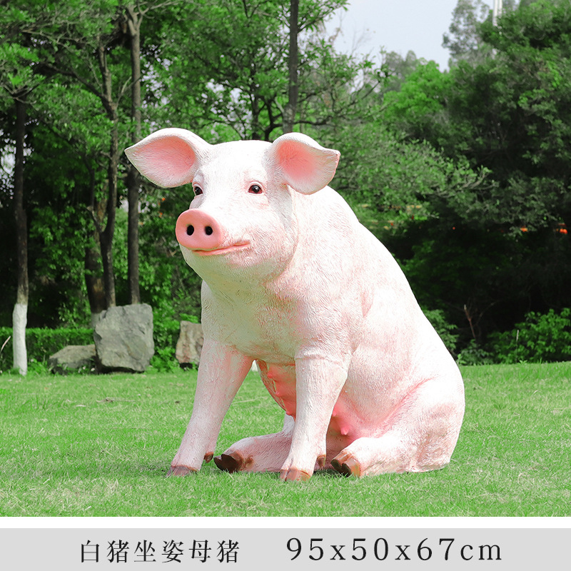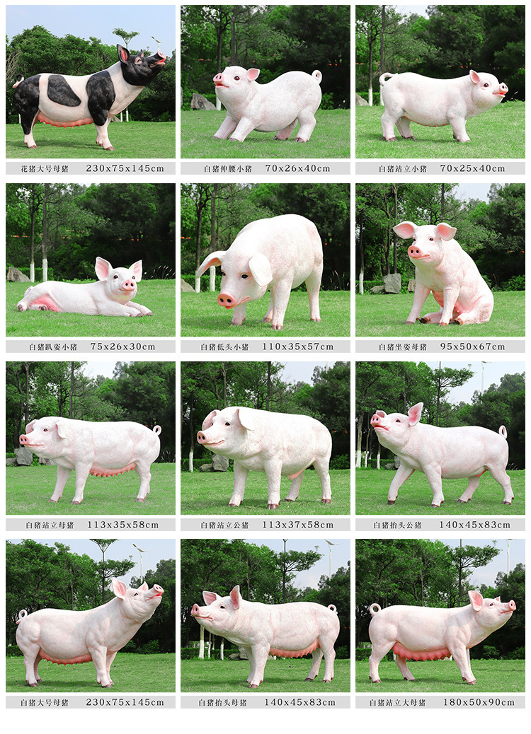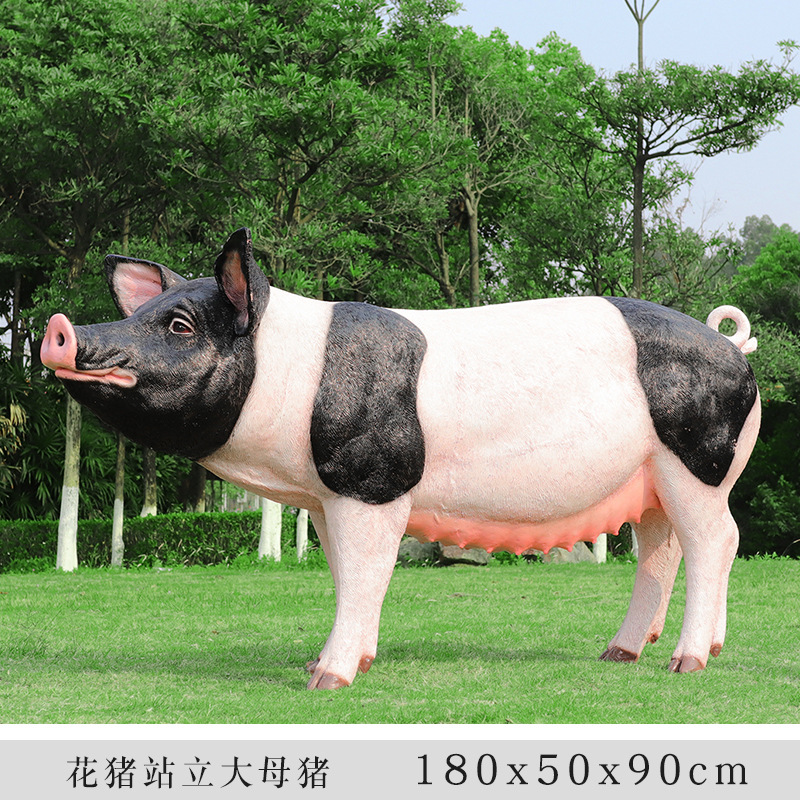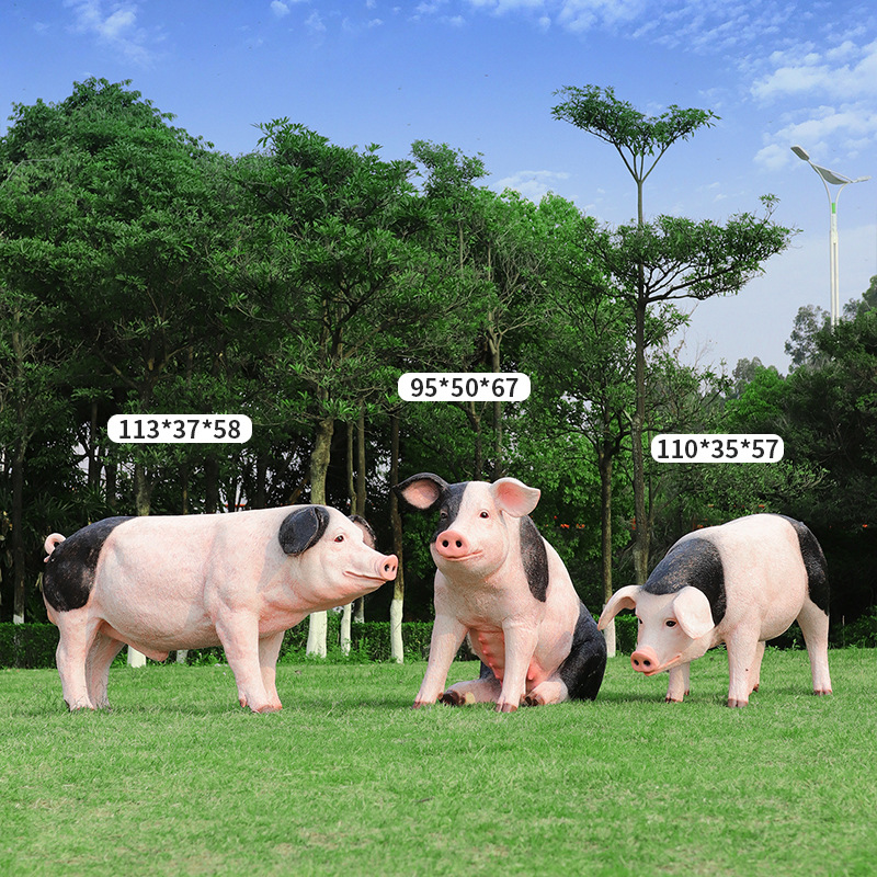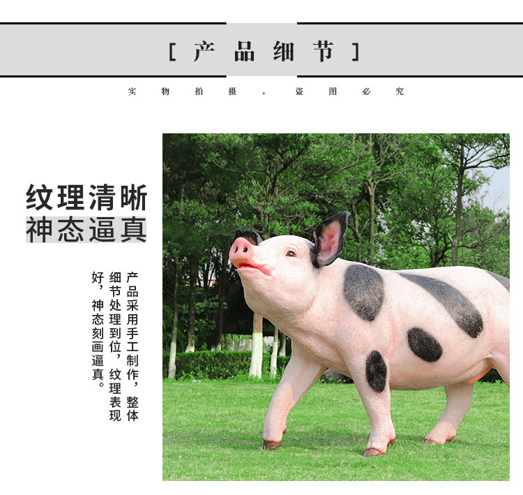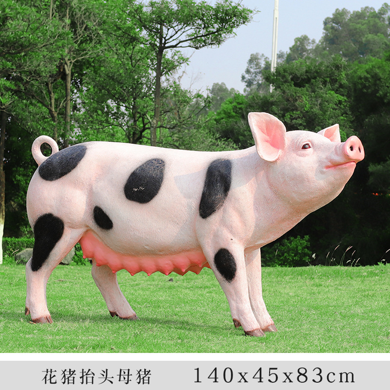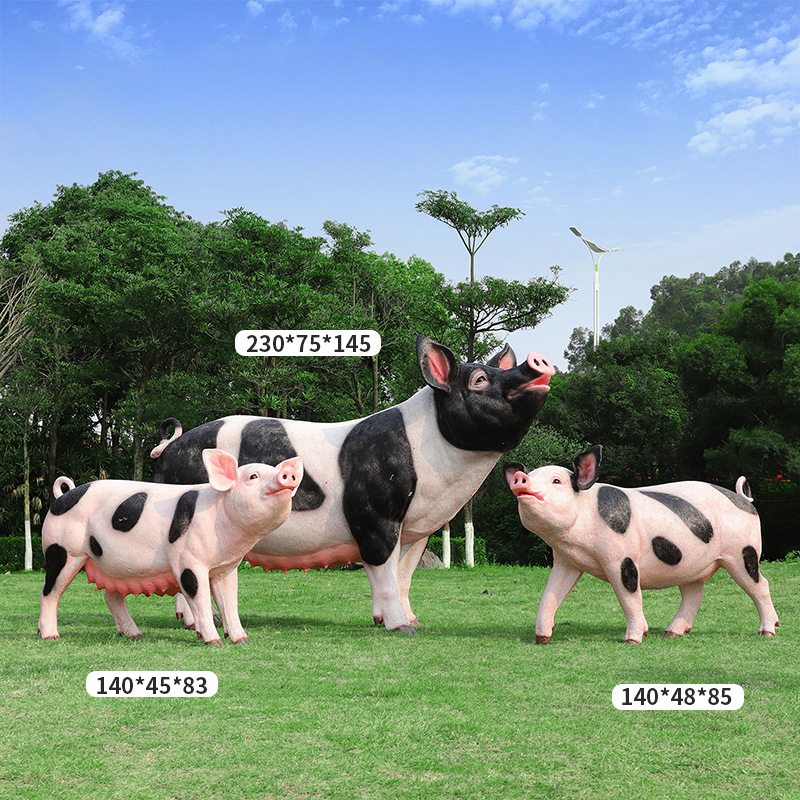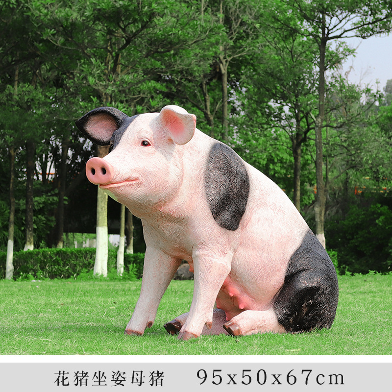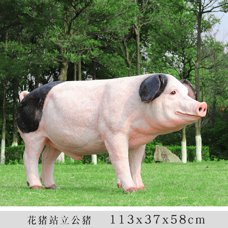 户外仿真猪雕塑玻璃钢花园农场园林造景黑猪模型十二摆件动物装饰