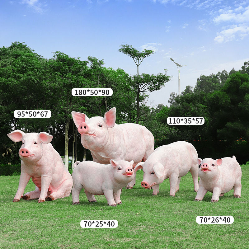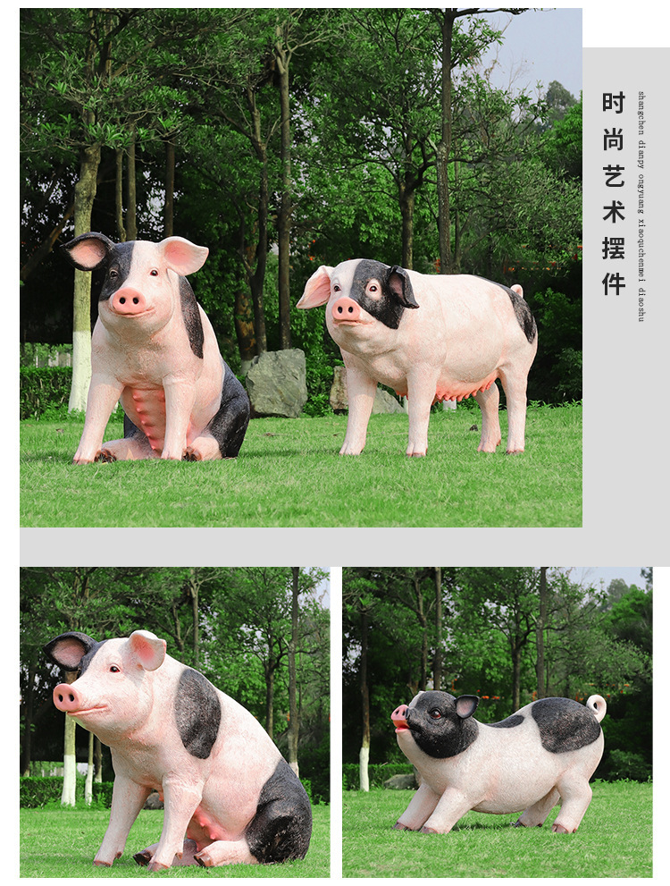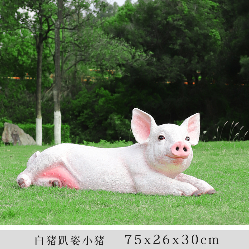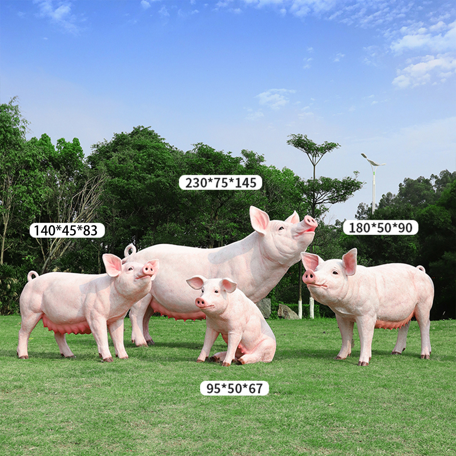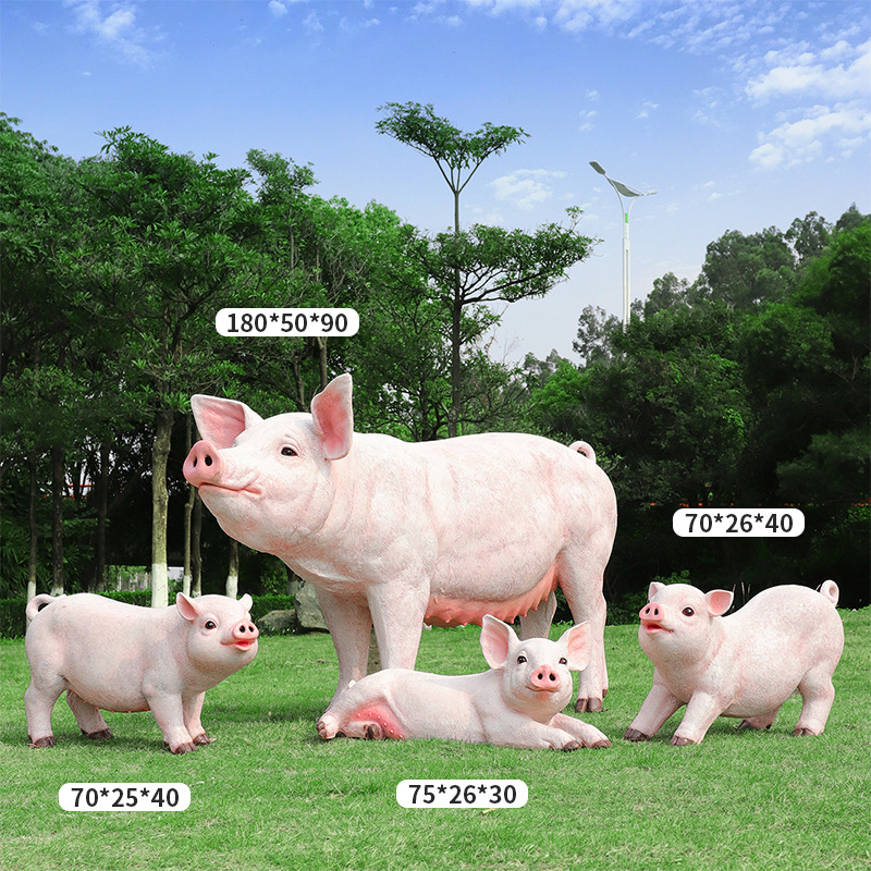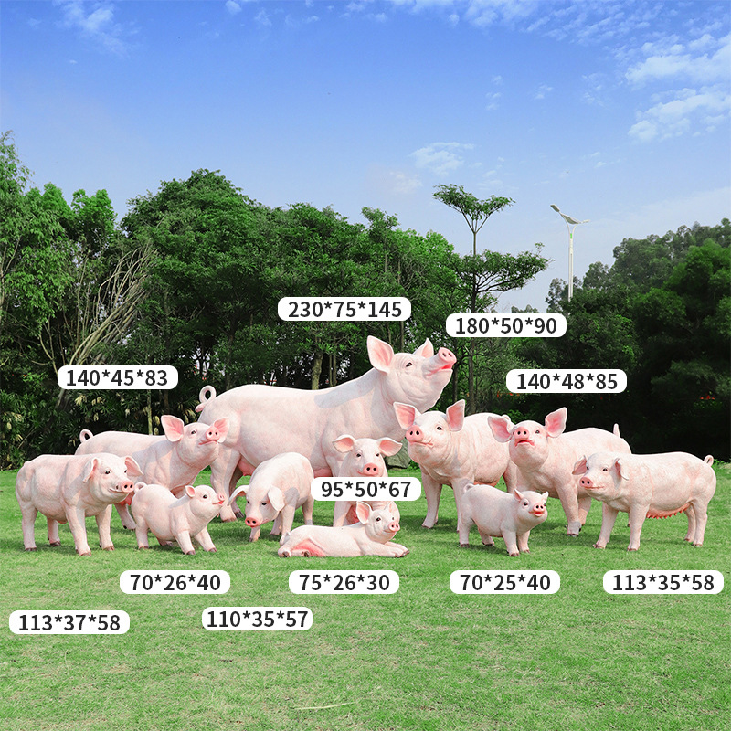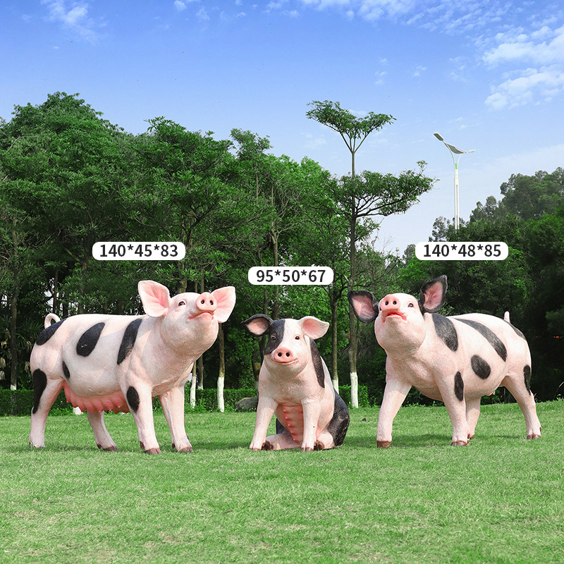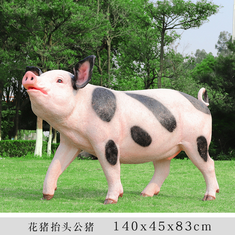 户外仿真猪雕塑玻璃钢花园农场园林造景黑猪模型十二摆件动物装饰