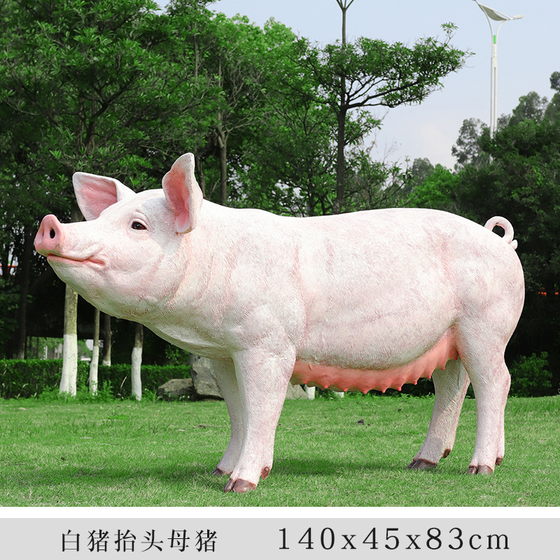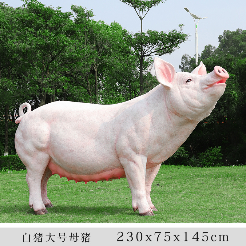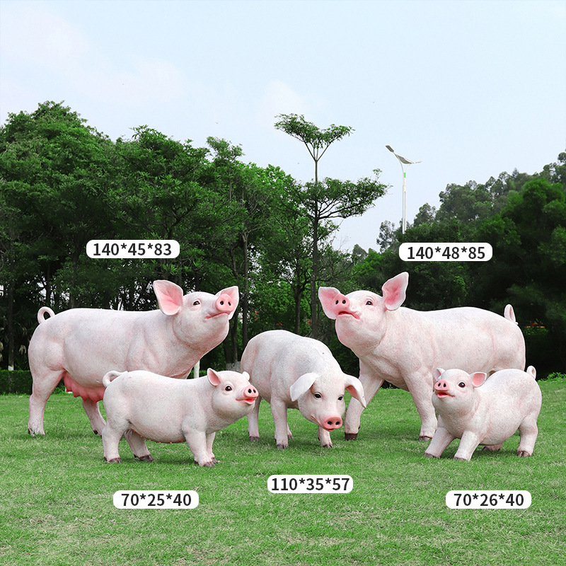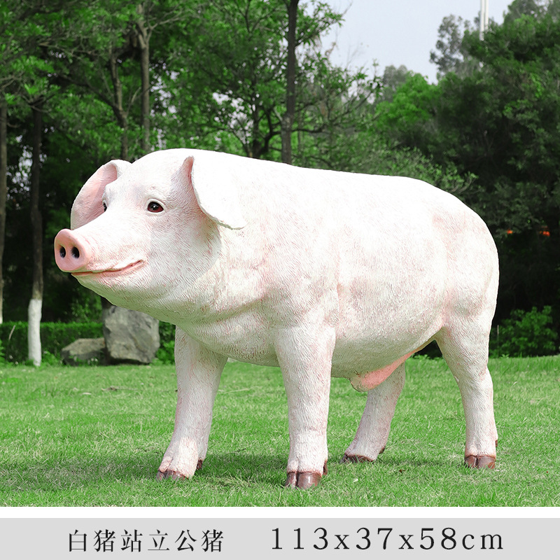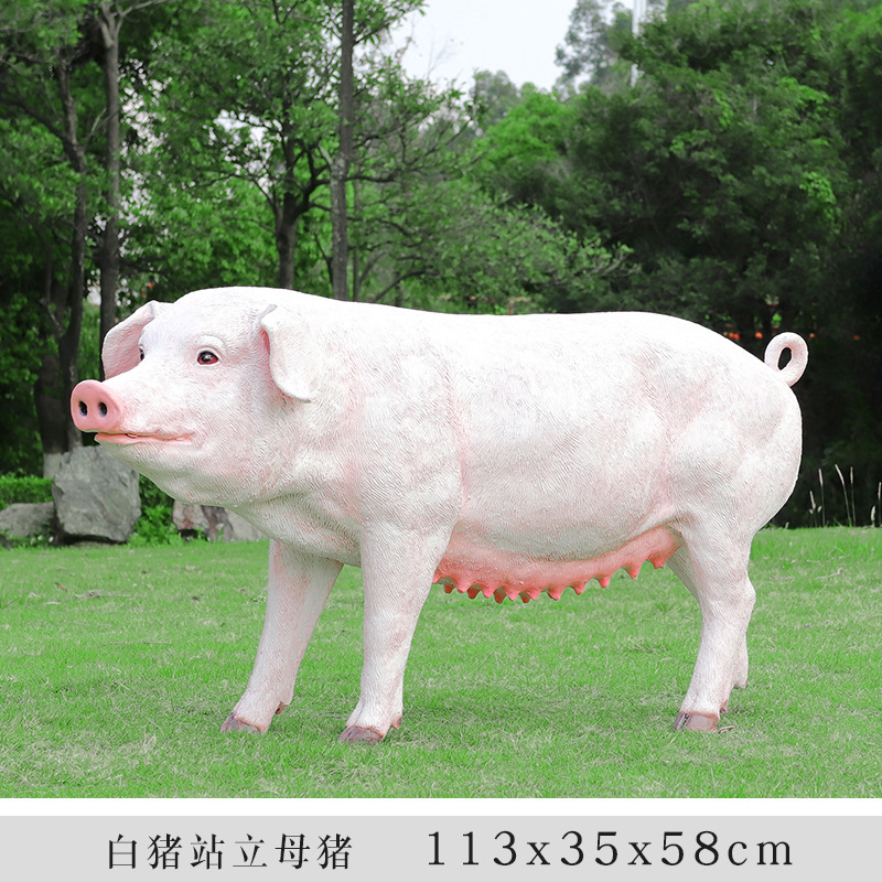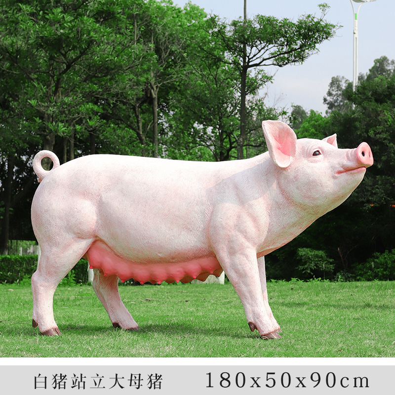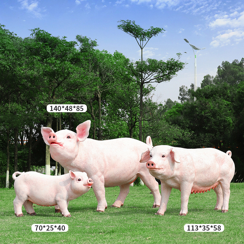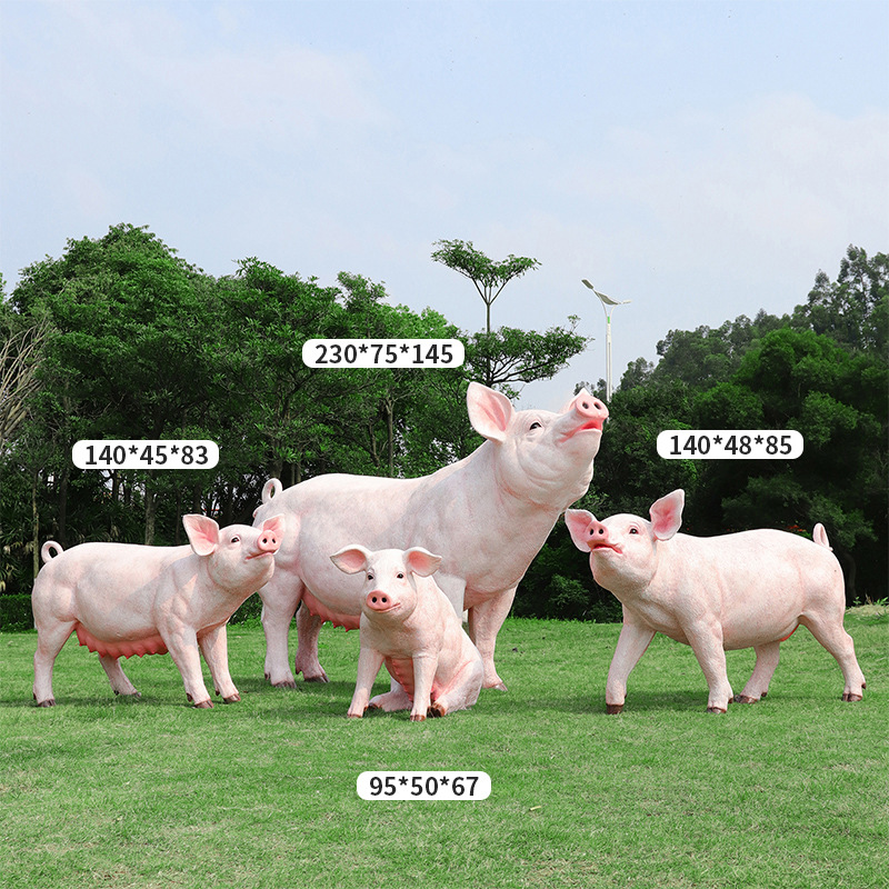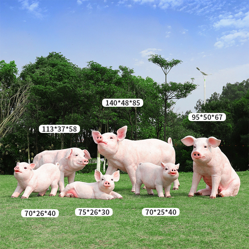 户外仿真猪雕塑玻璃钢花园农场园林造景黑猪模型十二摆件动物装饰