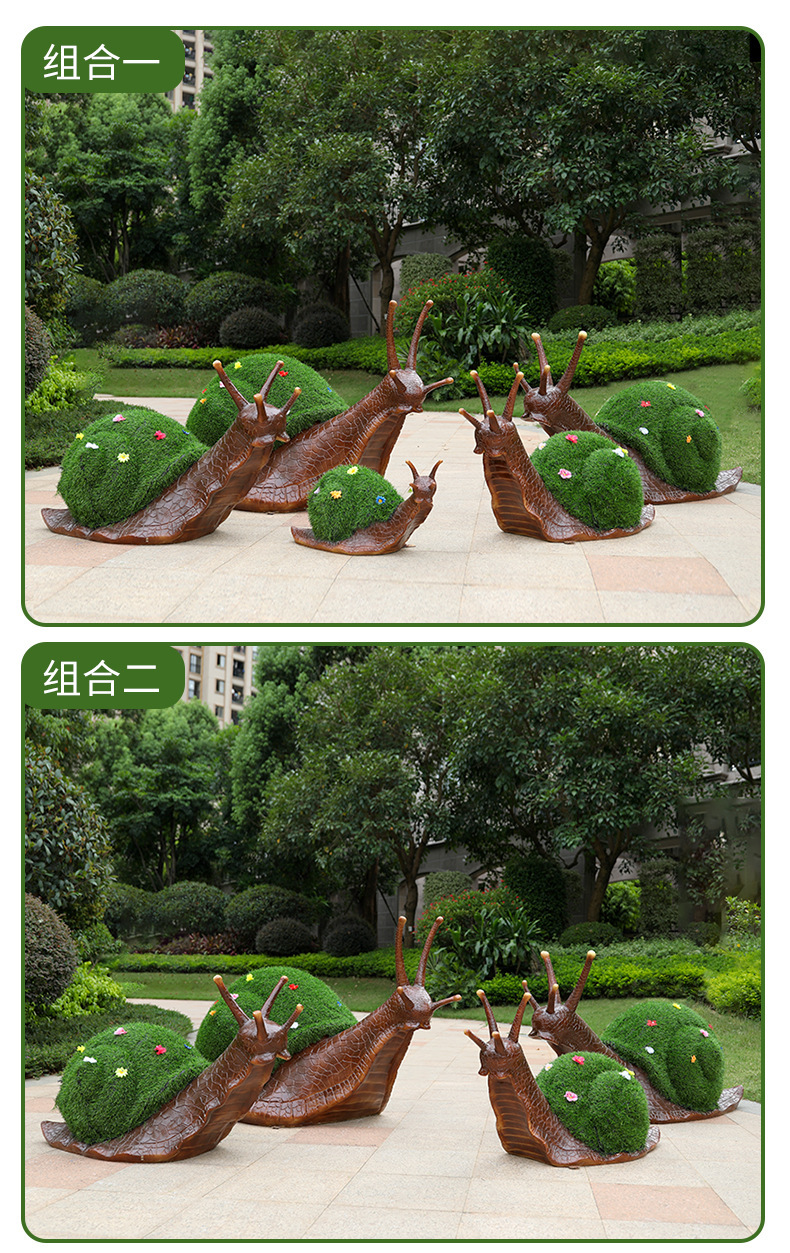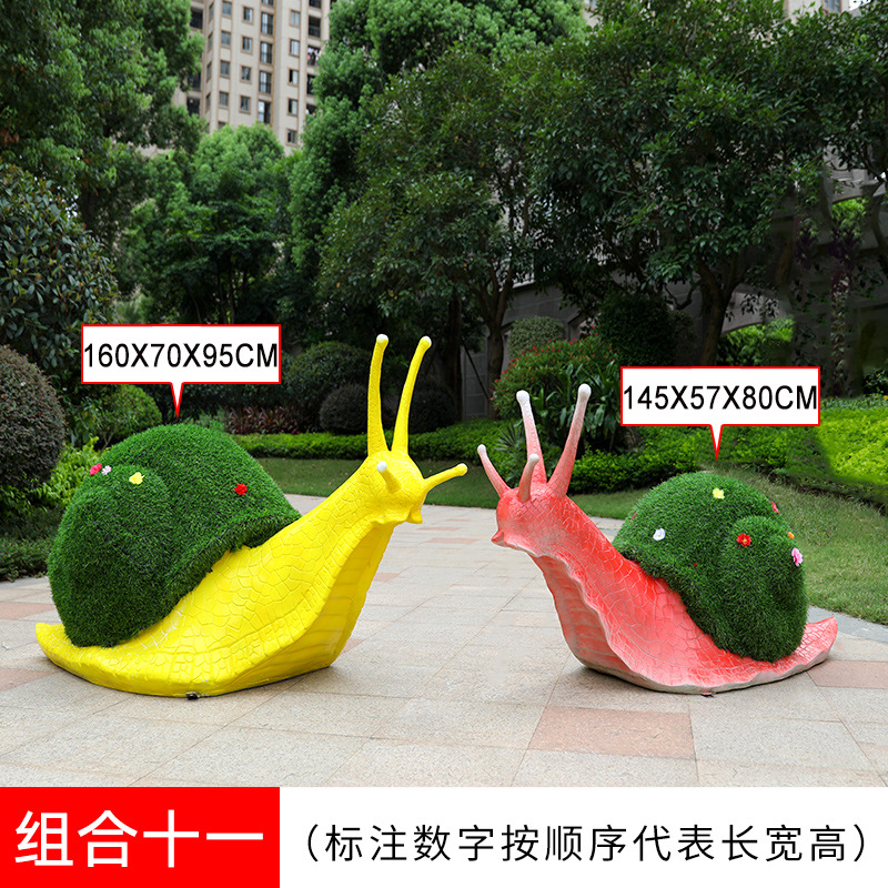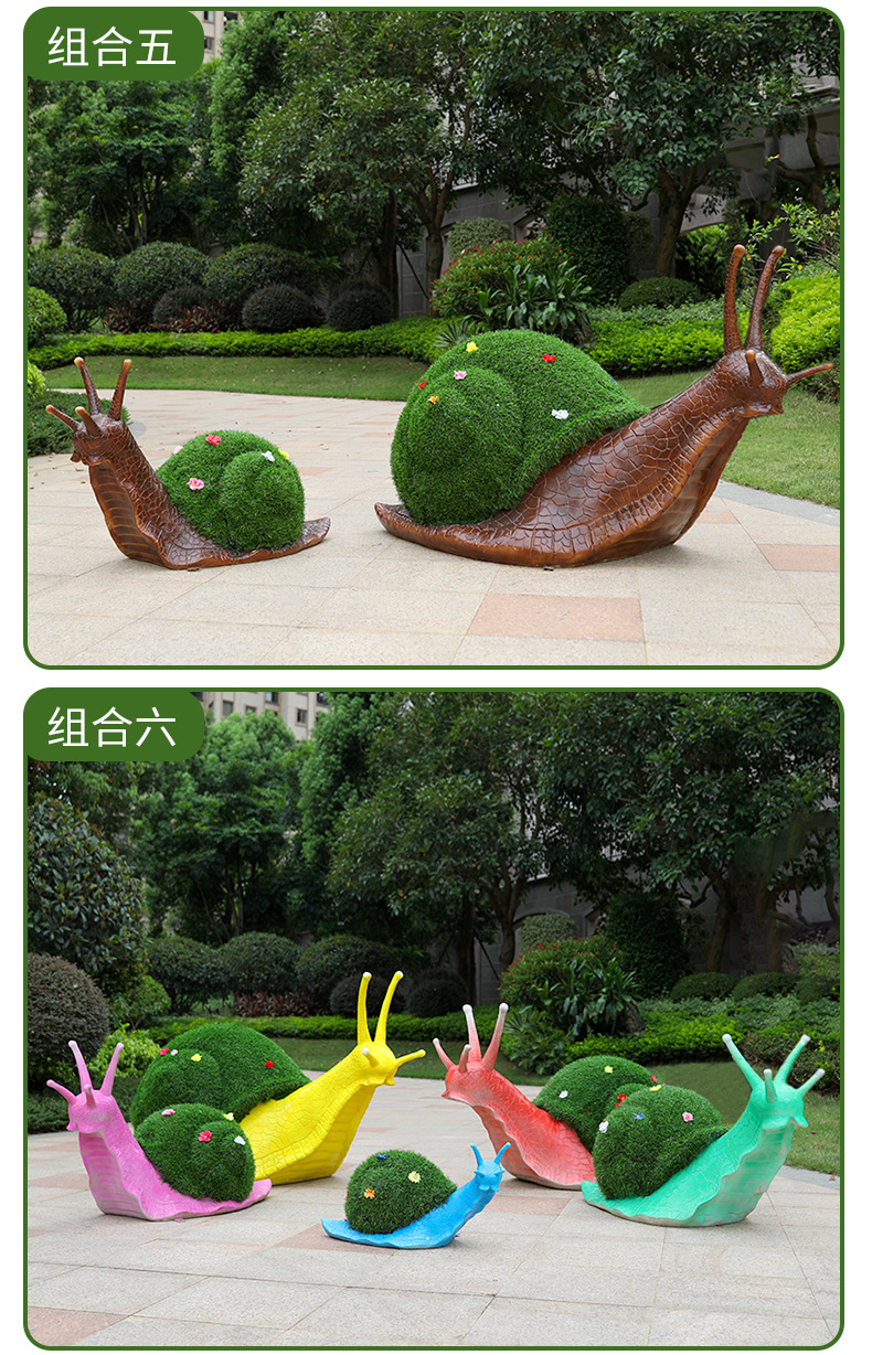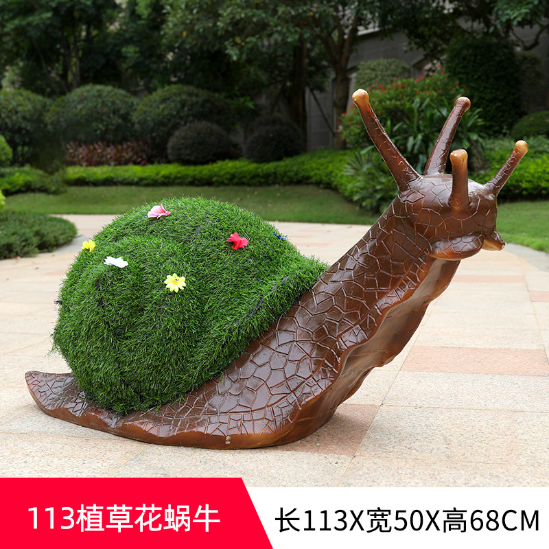 户外大型仿真植绒蜗牛雕塑玻璃钢草皮动物摆件公园小区景观装饰品