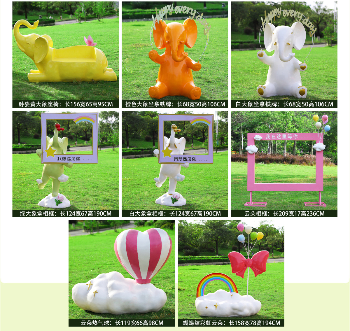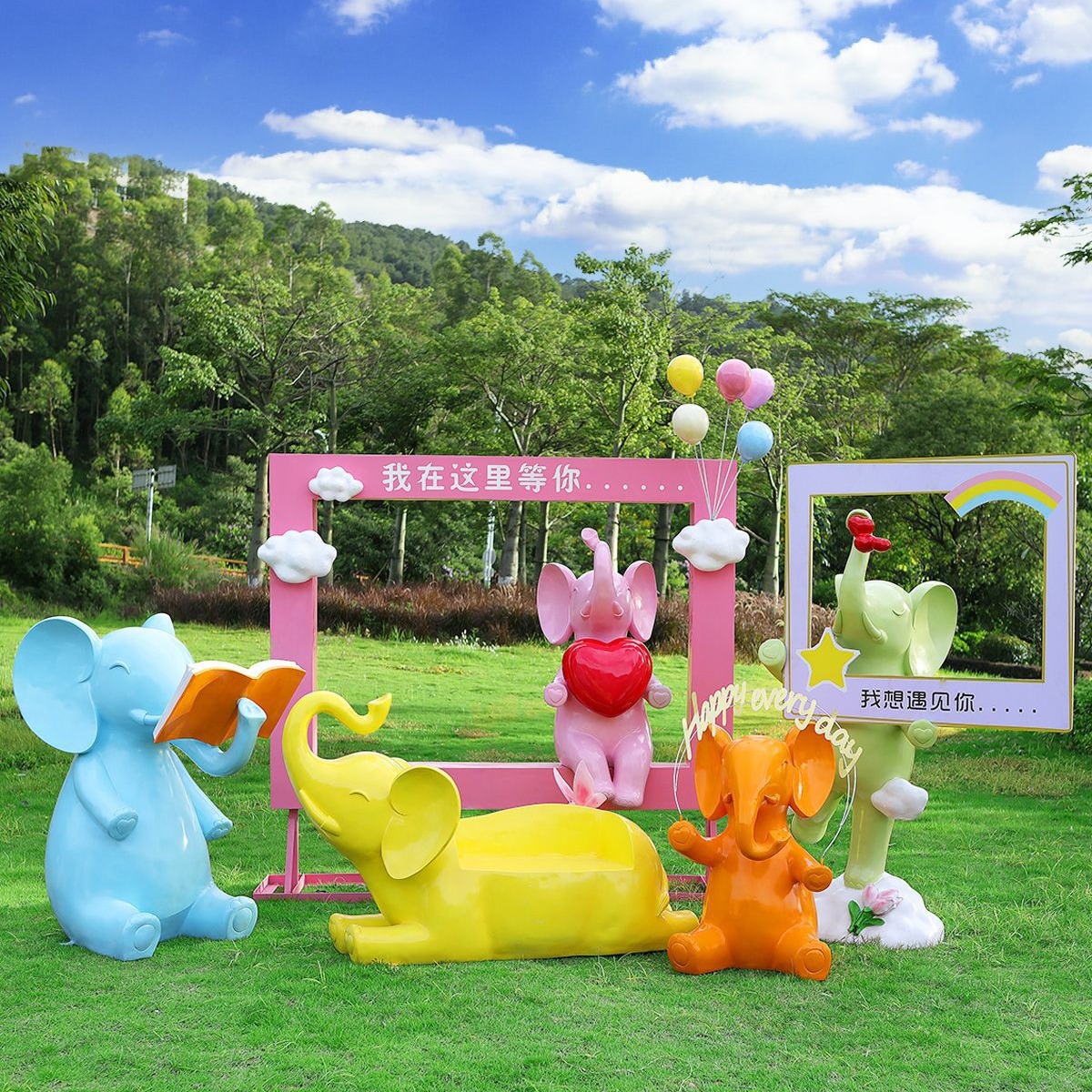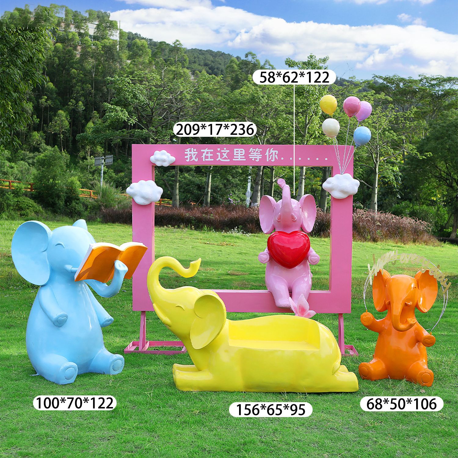 户外卡通动物大象雕塑幼儿园景区公园林网红打卡拍照座椅装饰摆件