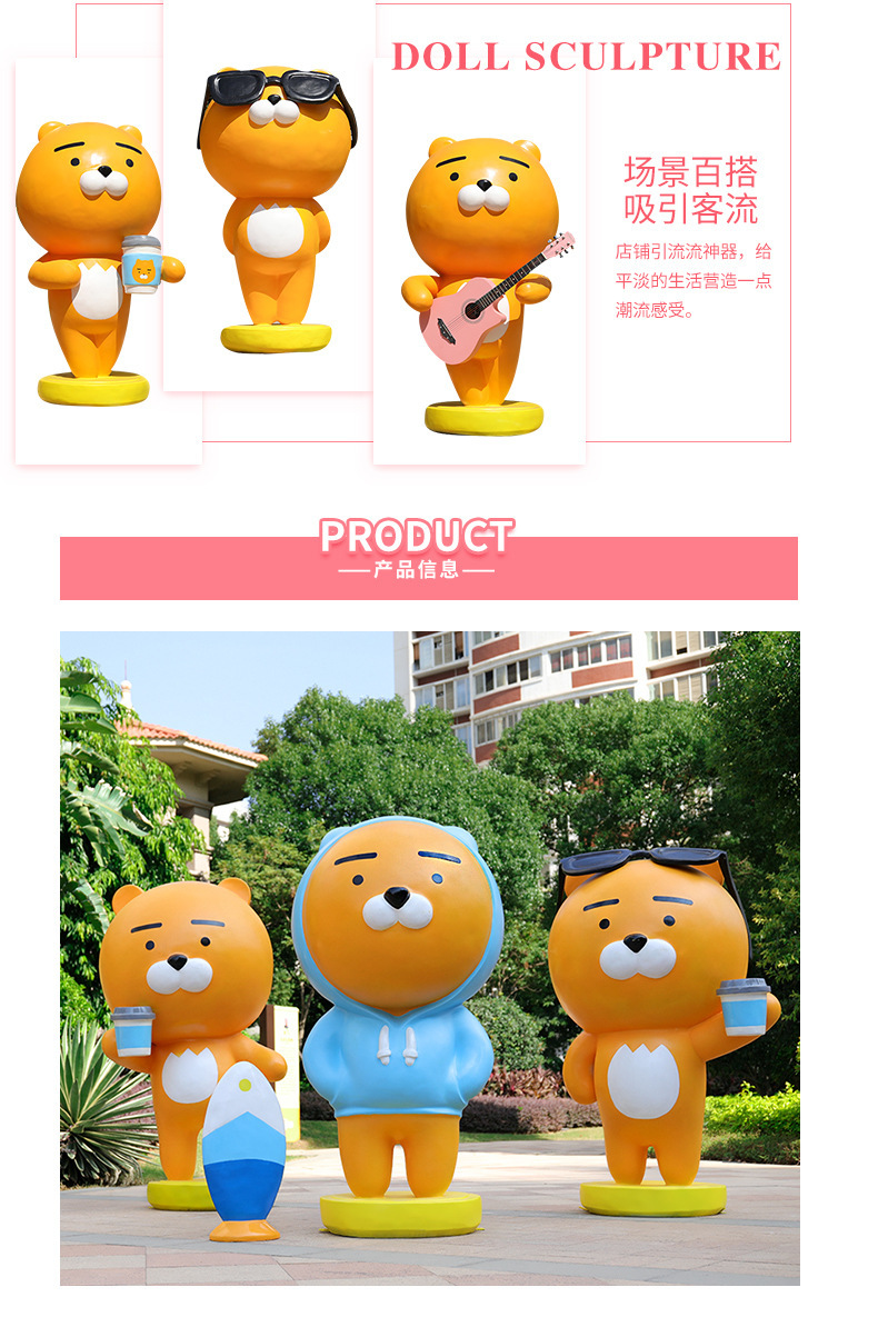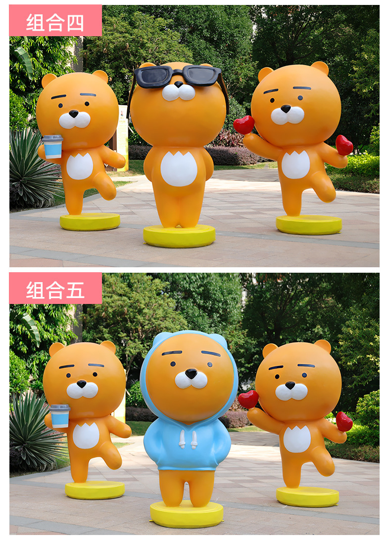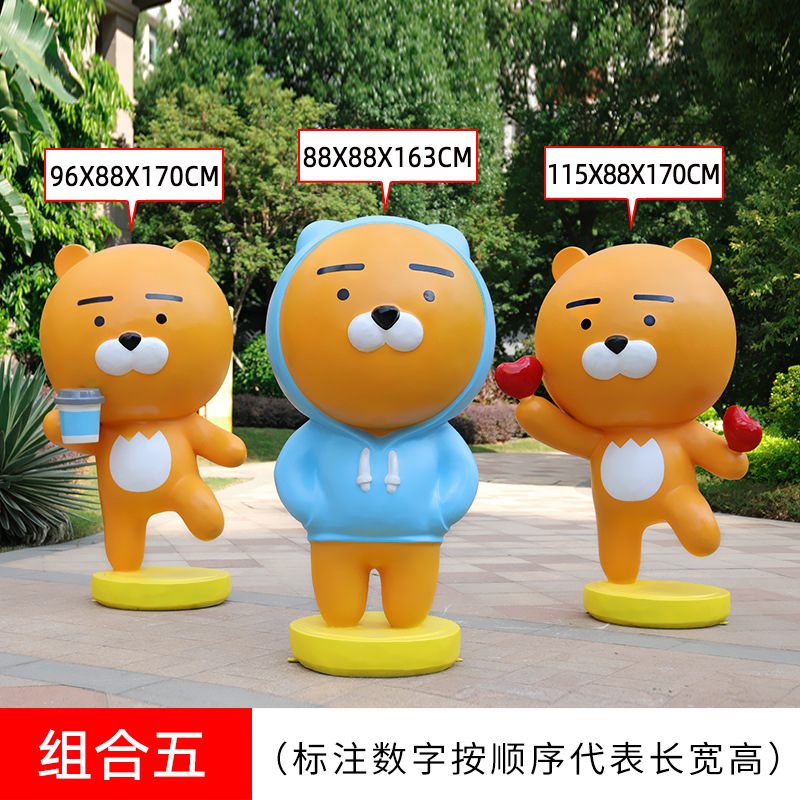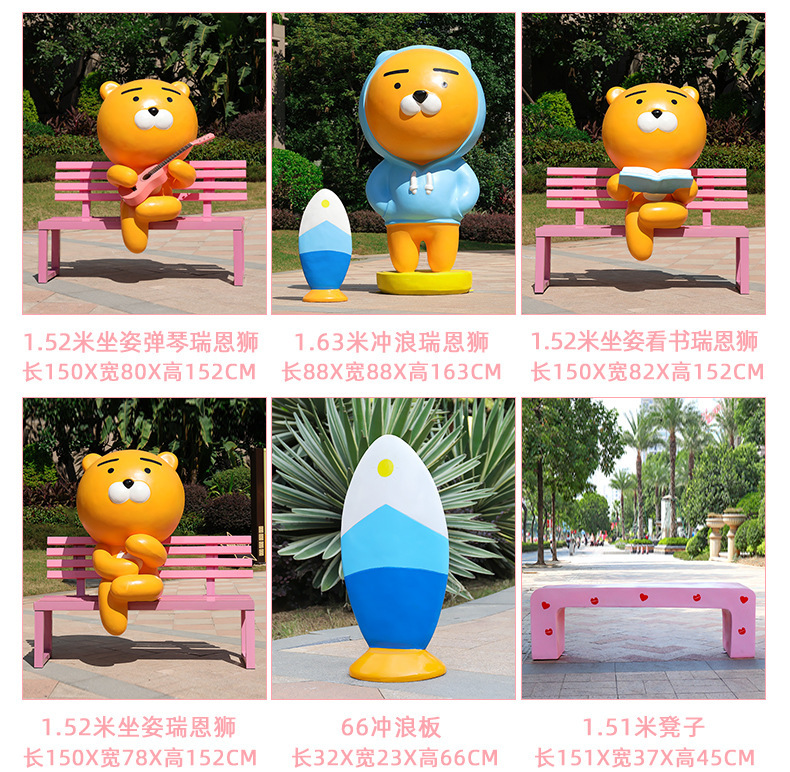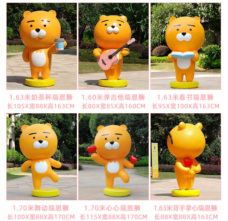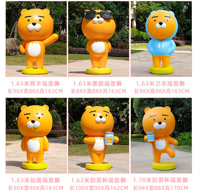卡通网红kakao 瑞恩狮商场门店咖啡店橱窗装饰美陈玻璃钢落地摆件