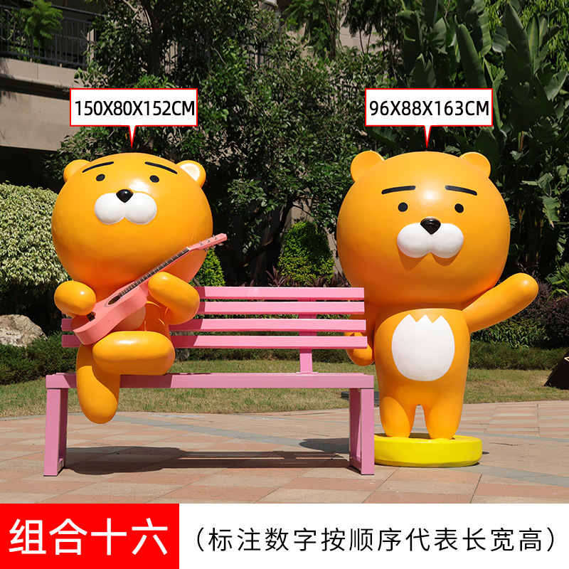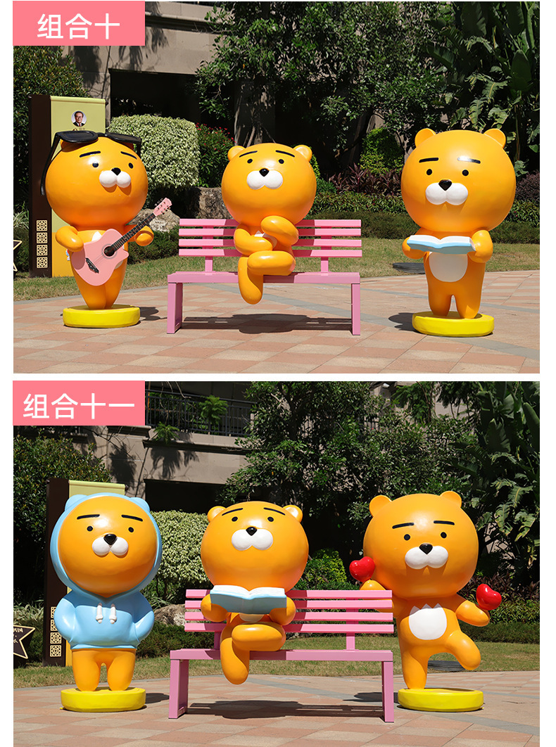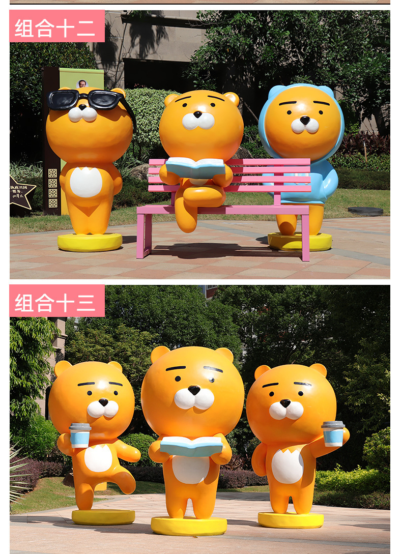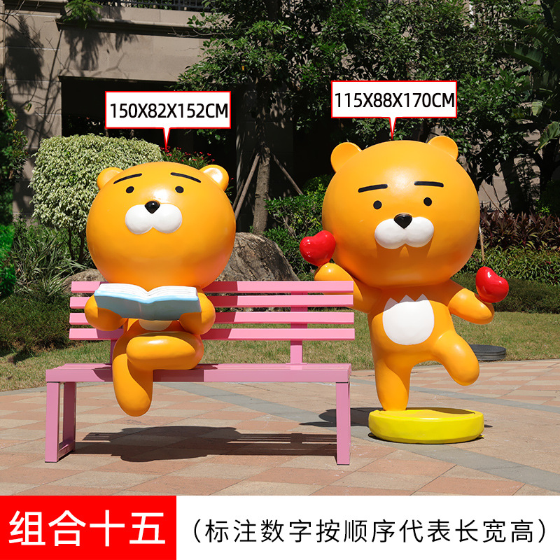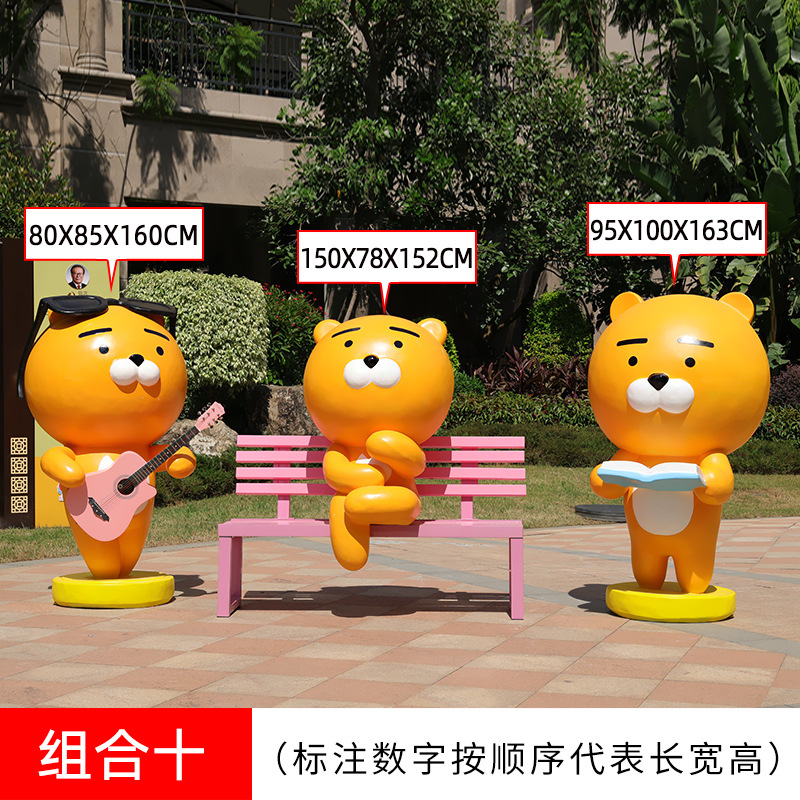 卡通网红kakao 瑞恩狮商场门店咖啡店橱窗装饰美陈玻璃钢落地摆件