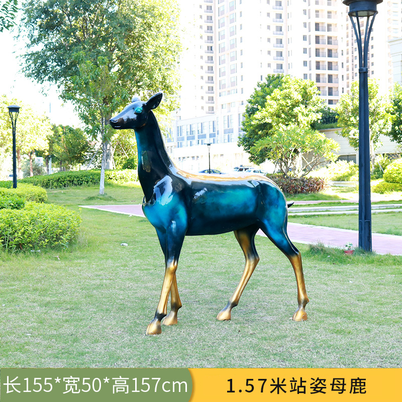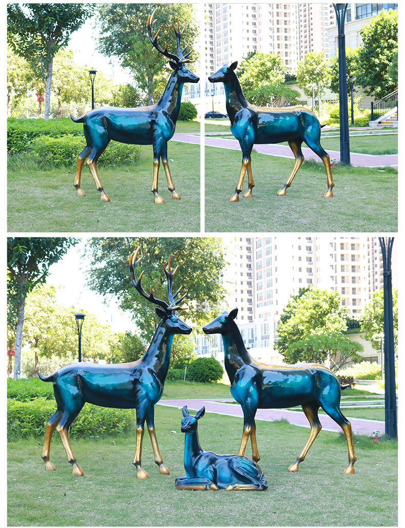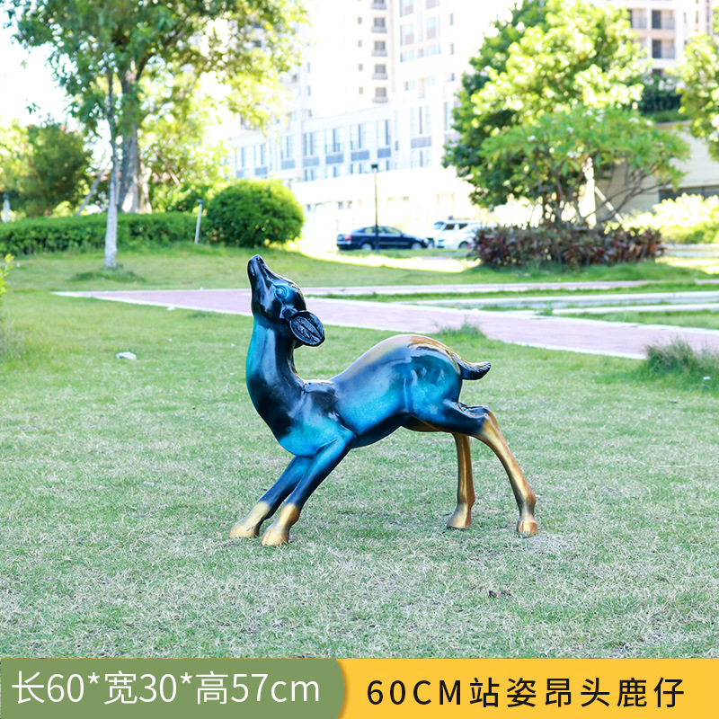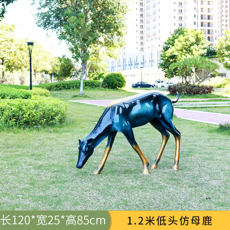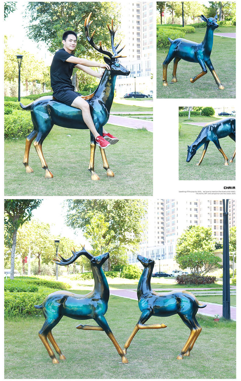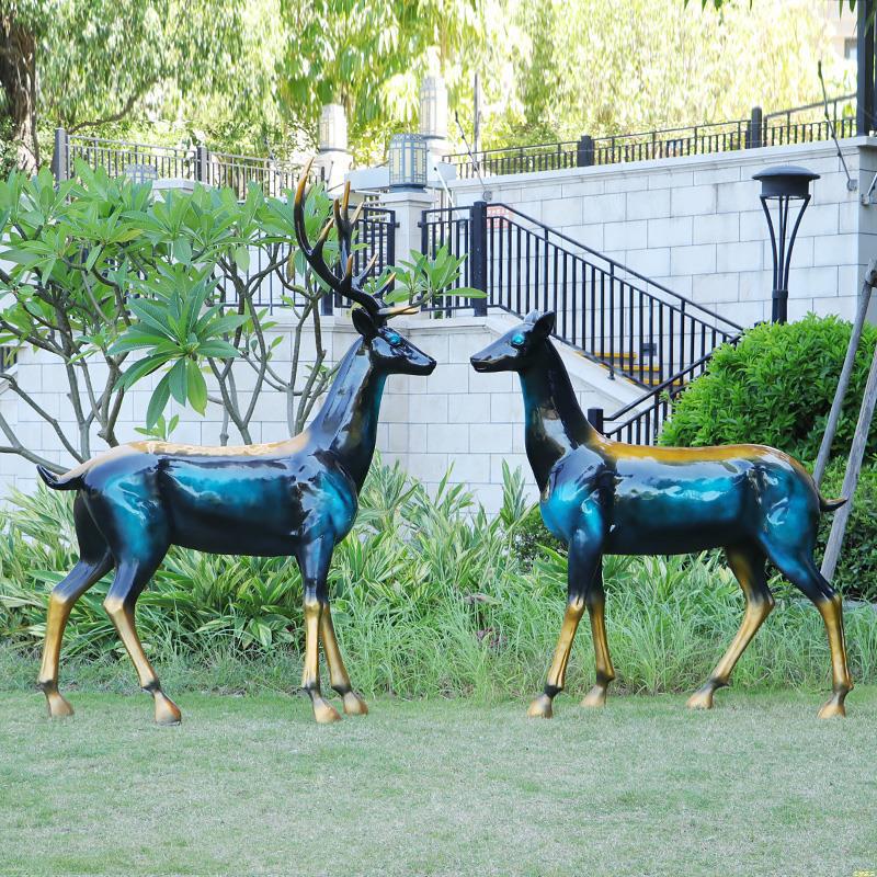 仿真抽象铜鹿动物大摆件户外仿铜鹿玻璃钢雕塑园林景观装饰品美陈