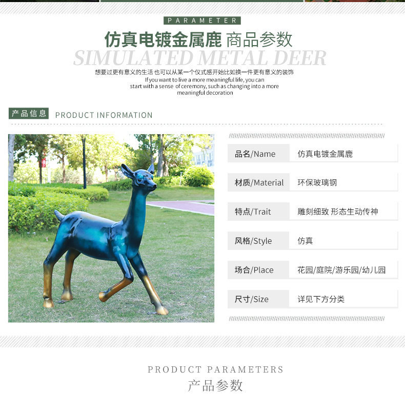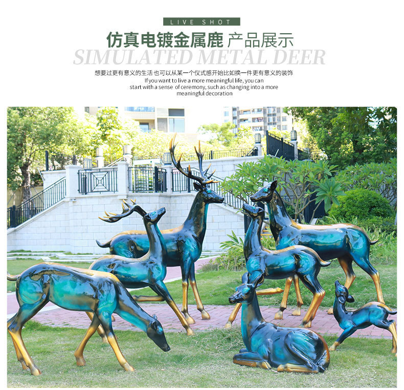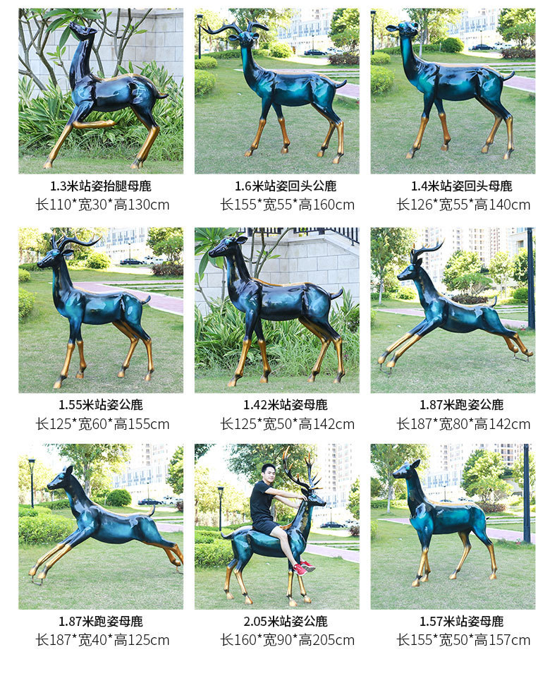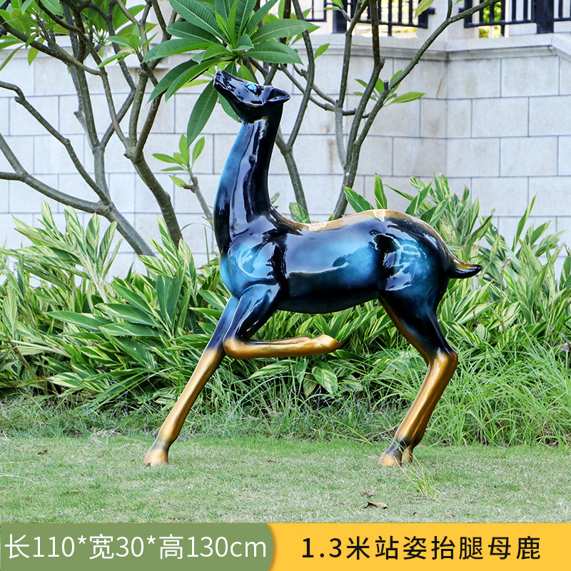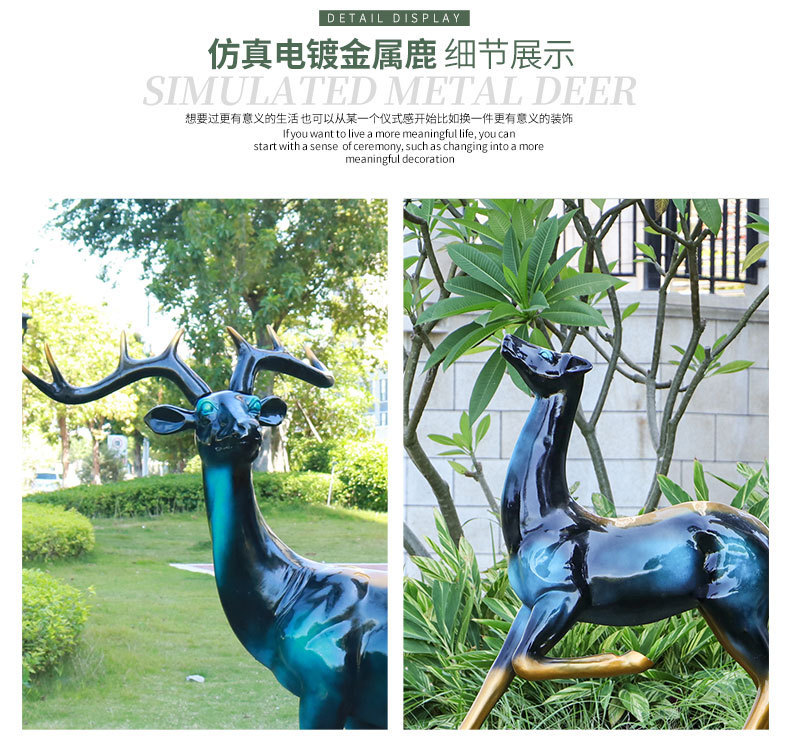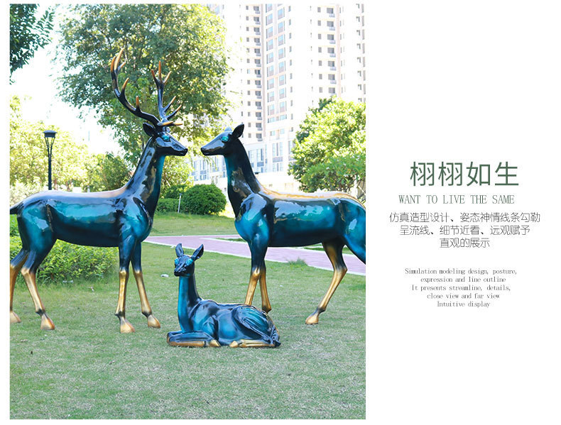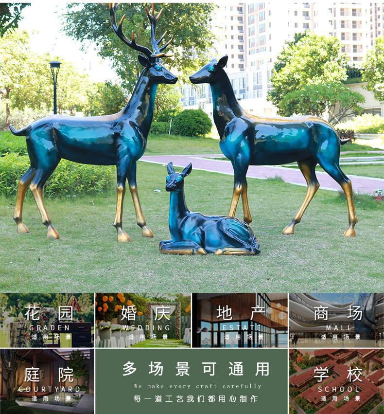 仿真抽象铜鹿动物大摆件户外仿铜鹿玻璃钢雕塑园林景观装饰品美陈