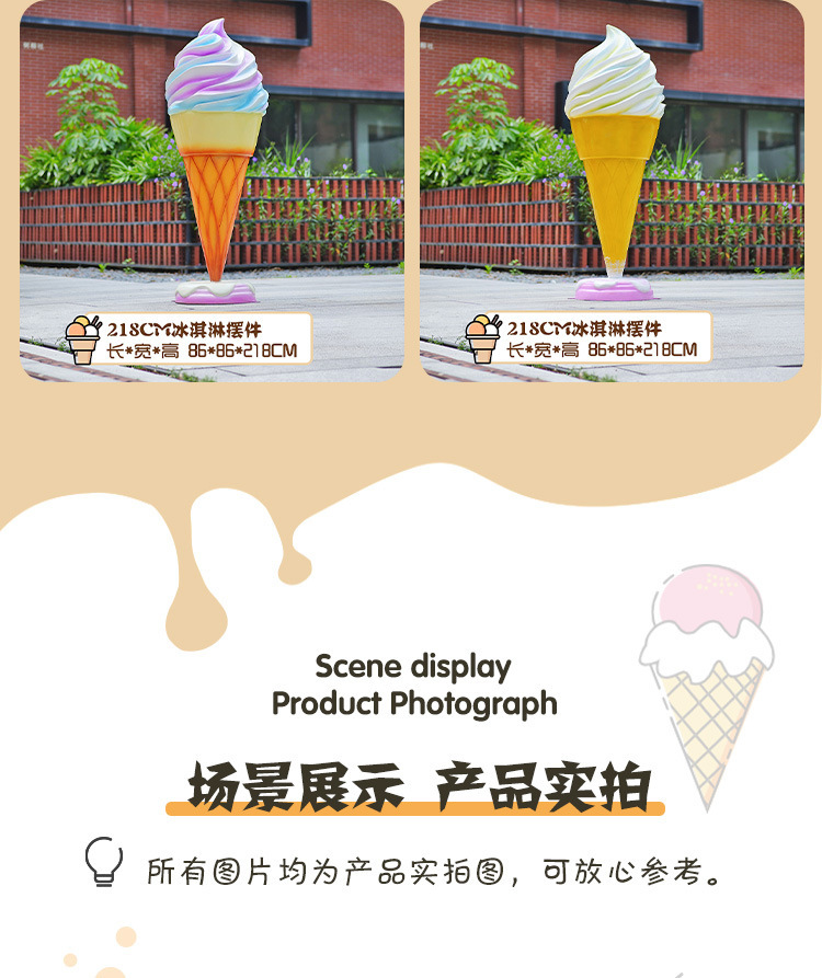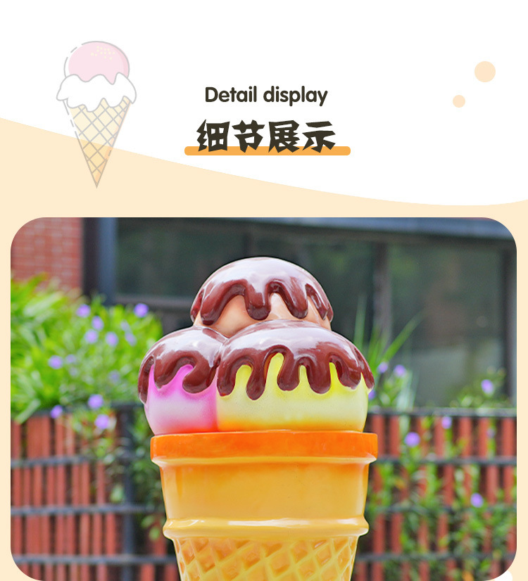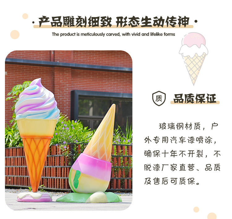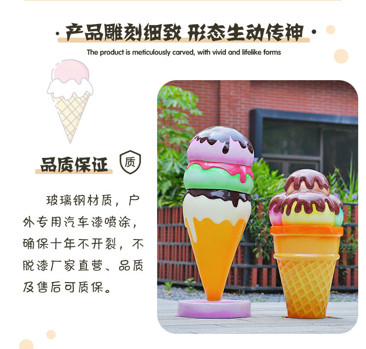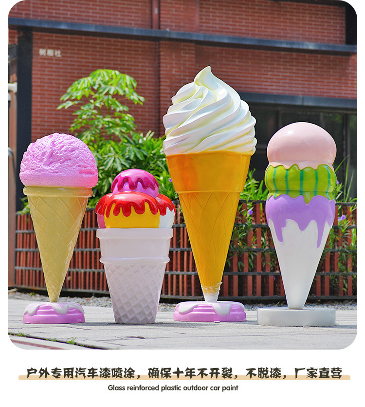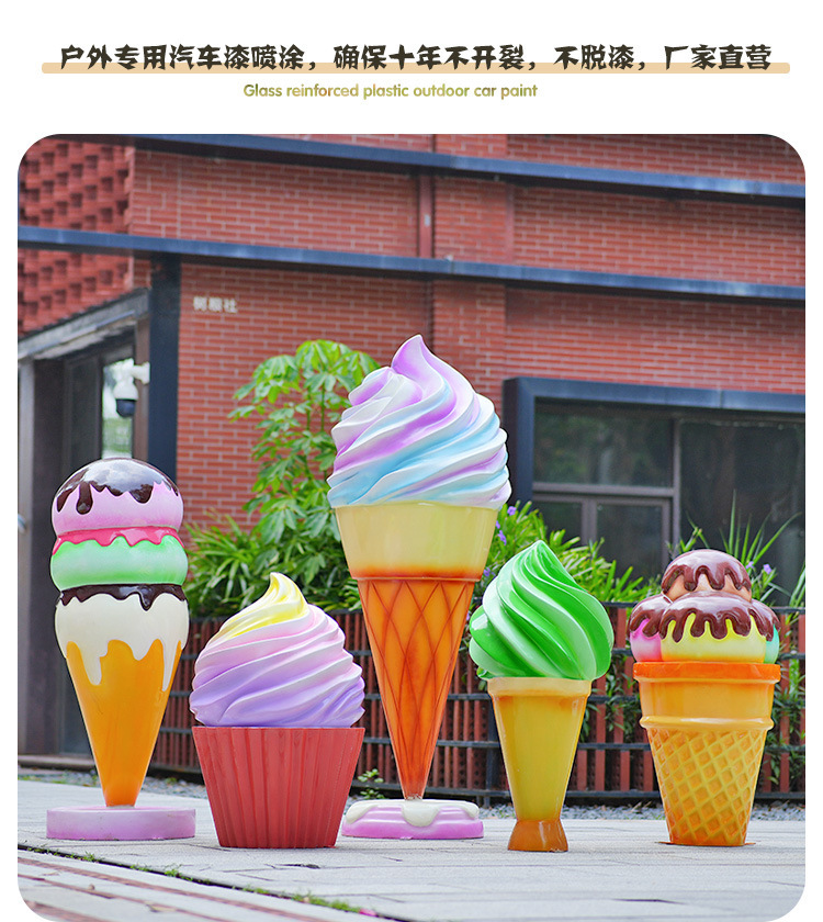 户外仿真雪糕模型商场创意冰淇淋雕塑甜品店甜筒玻璃钢冰激凌摆件