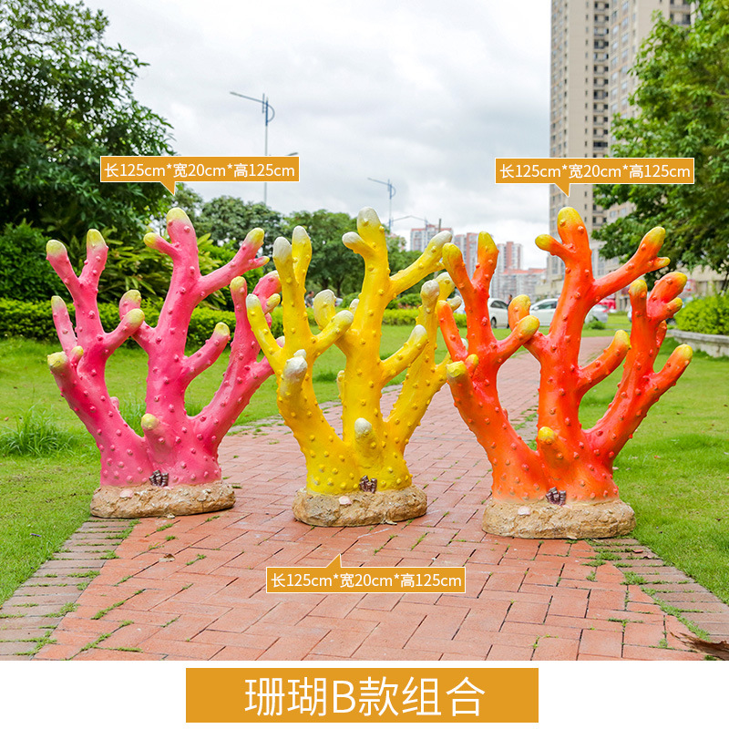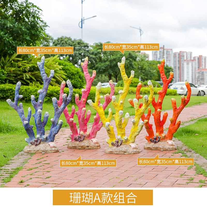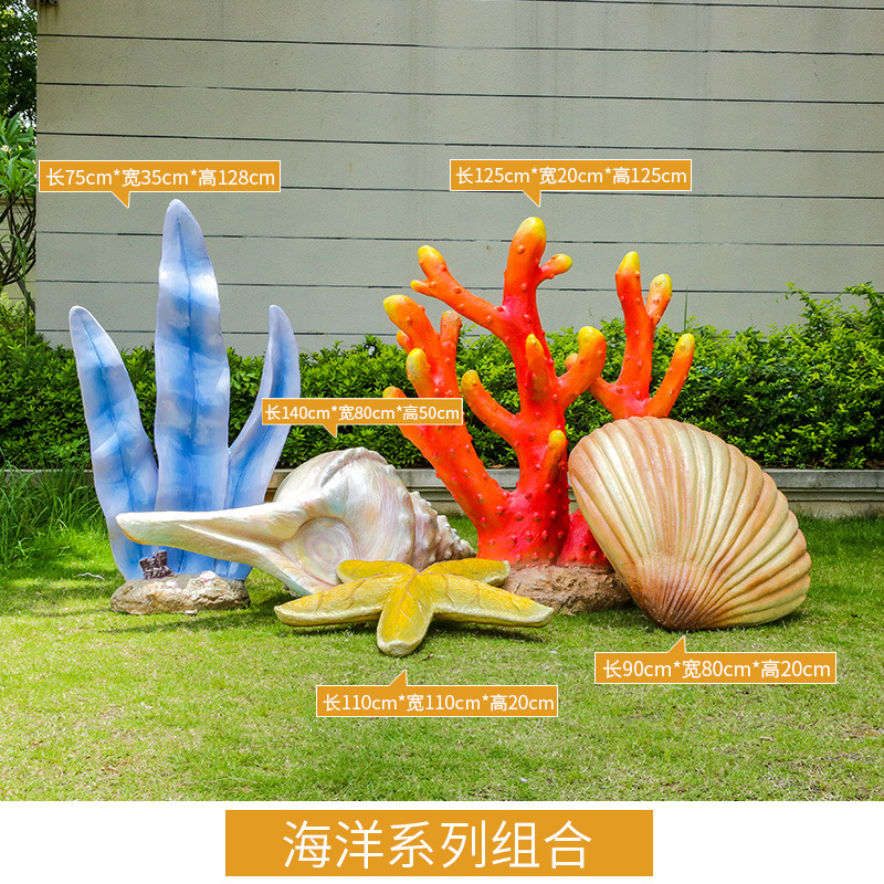 仿真海洋生物贝壳雕塑玻璃钢景观摆件海草珊瑚海螺海星章鱼装饰品