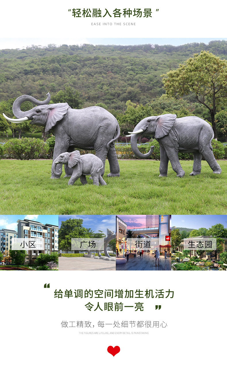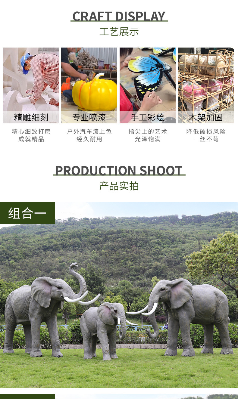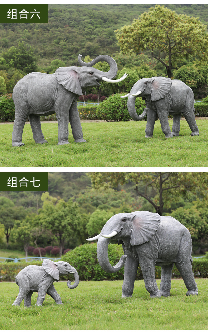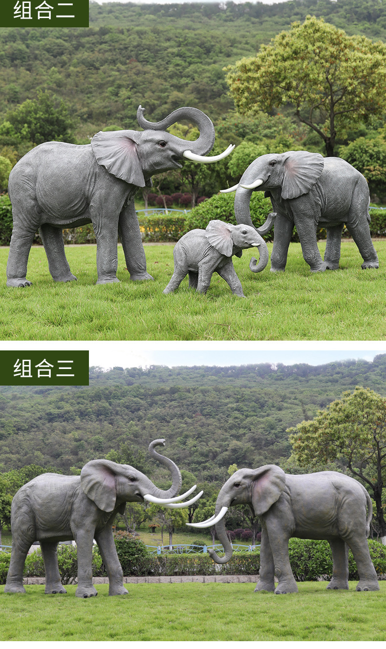 玻璃钢仿真大象雕塑户外公园林景观小区草坪装饰大型动物摆件造景