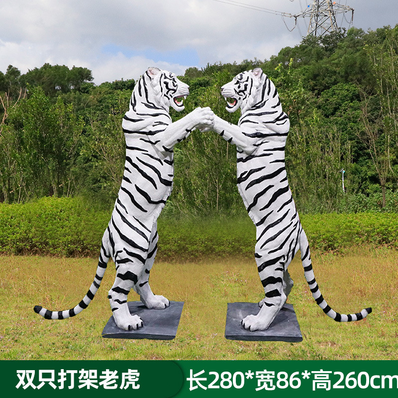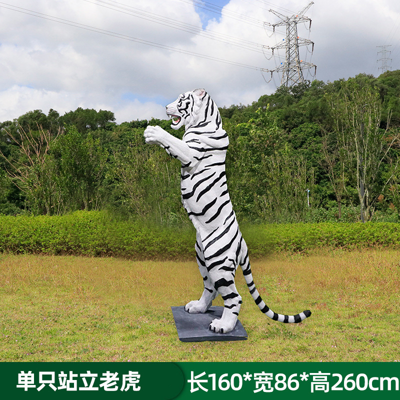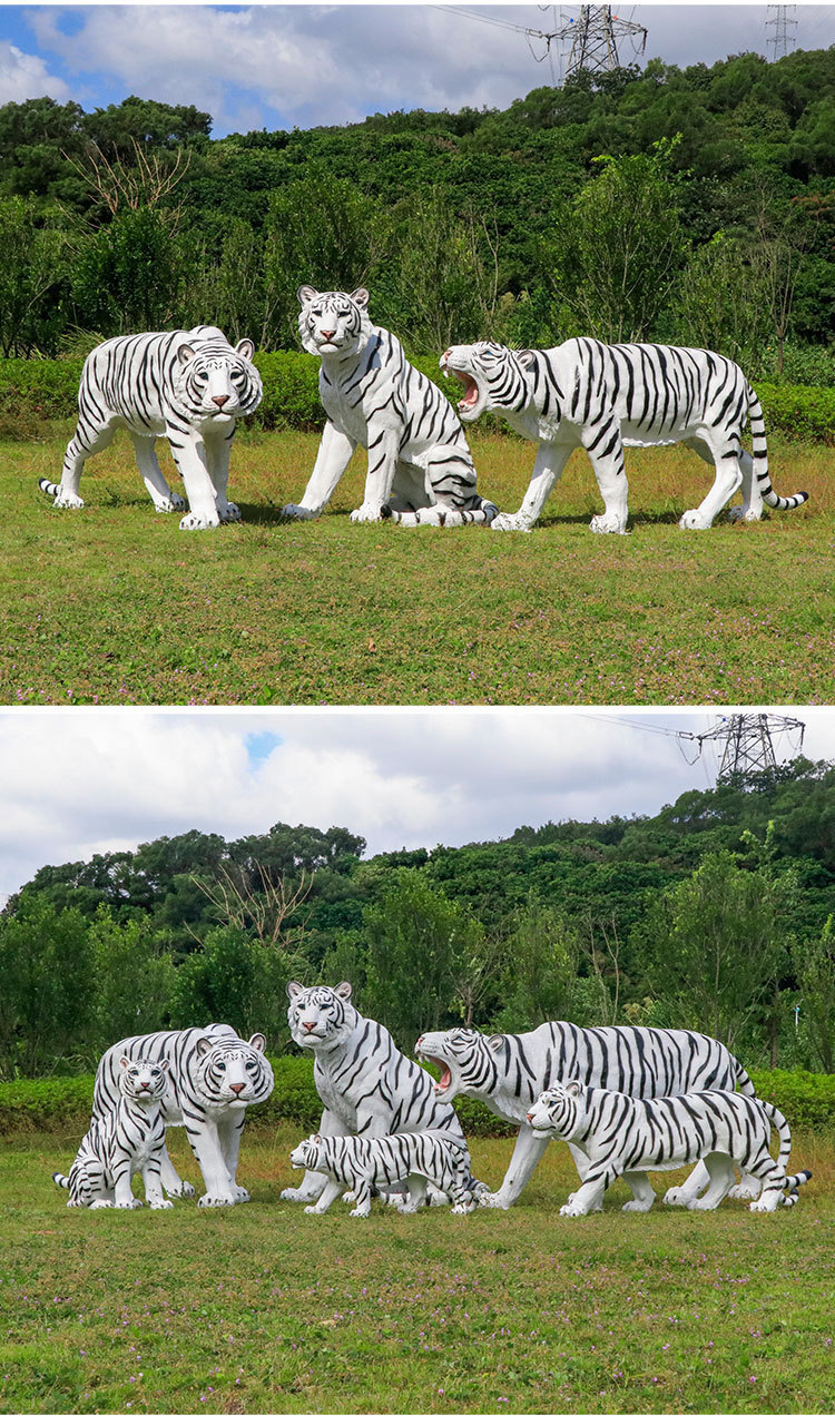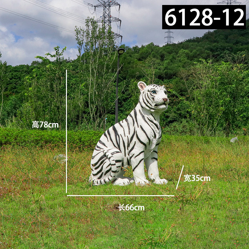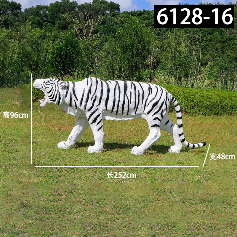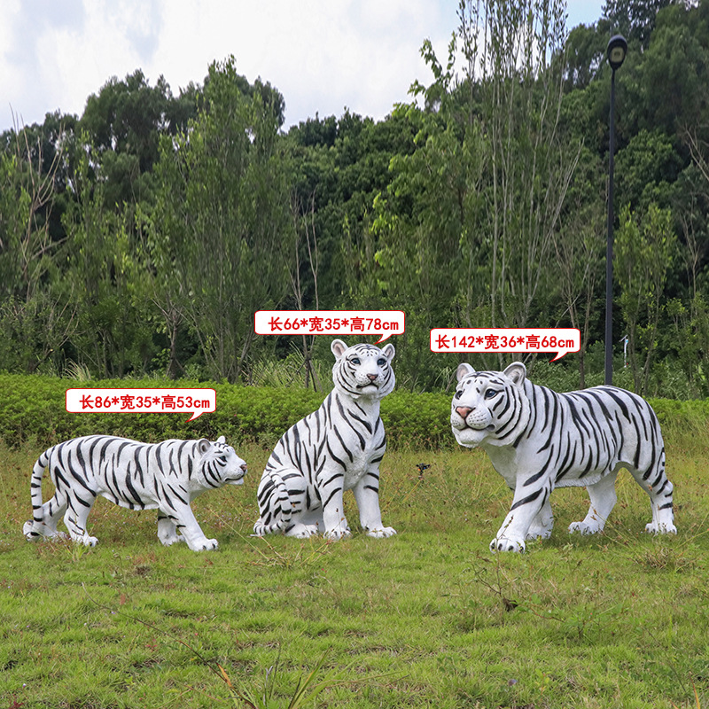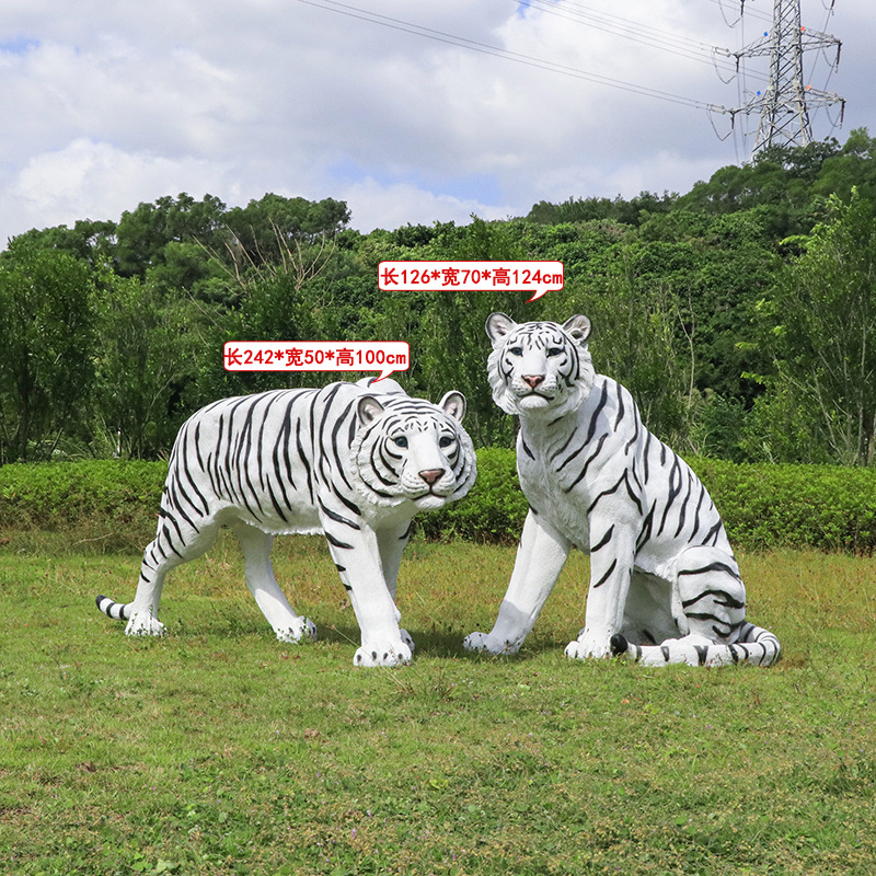 户外园林仿真老虎雕塑玻璃钢白虎摆件公园景区动物园模型景观装饰