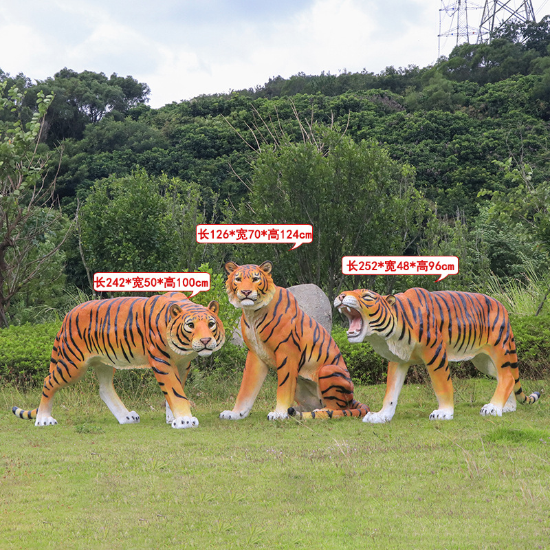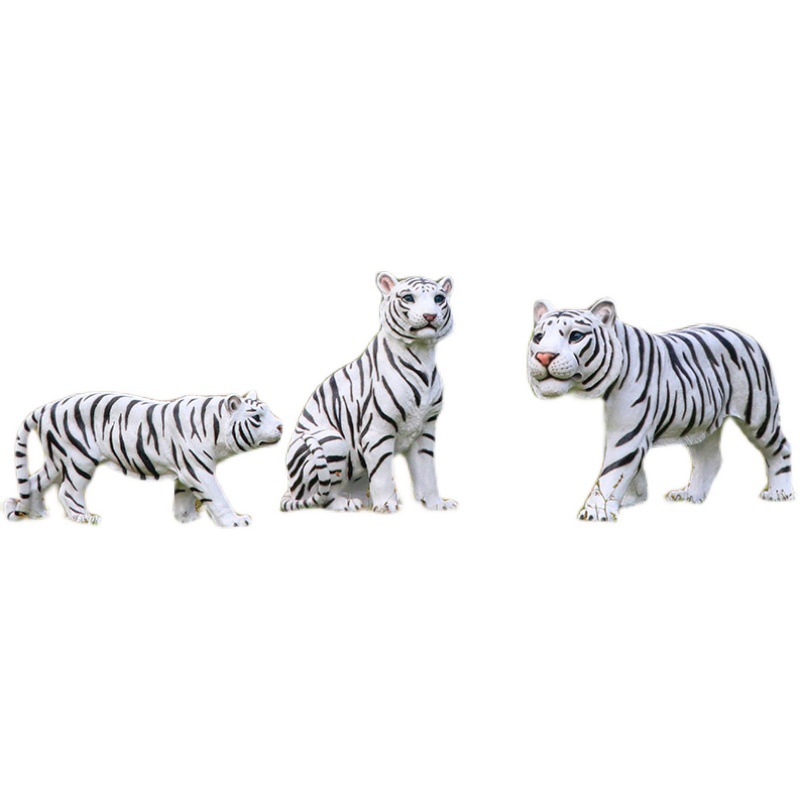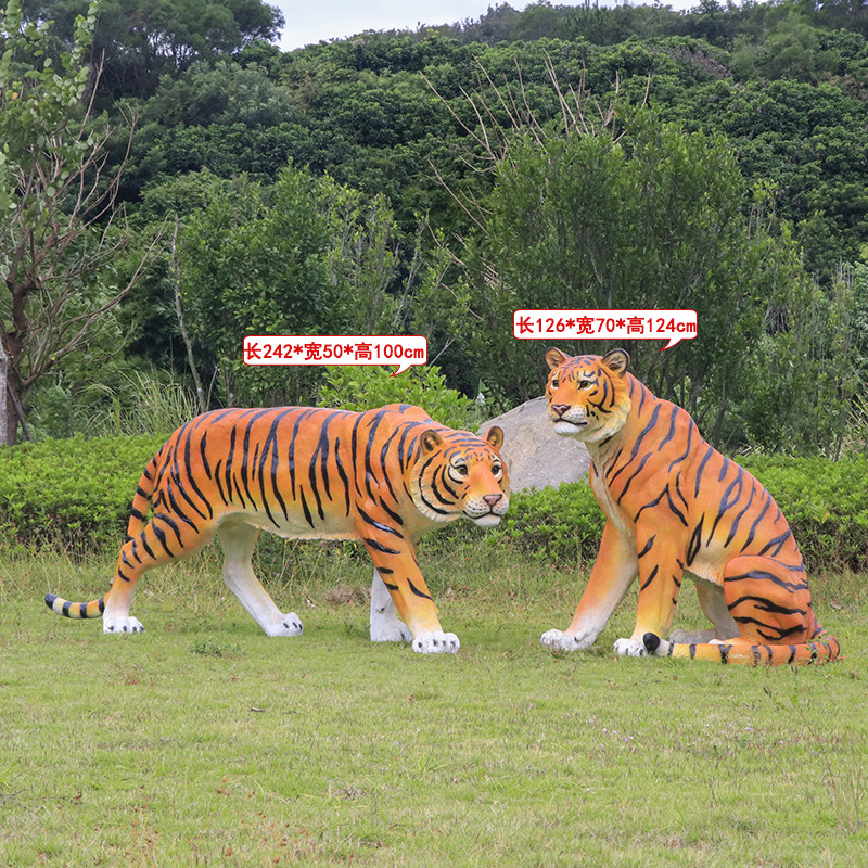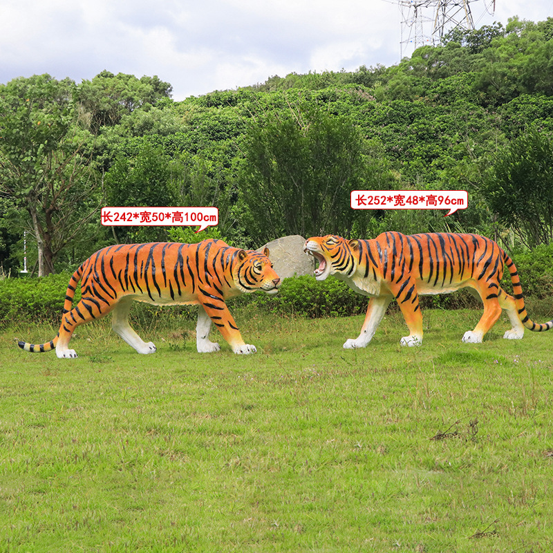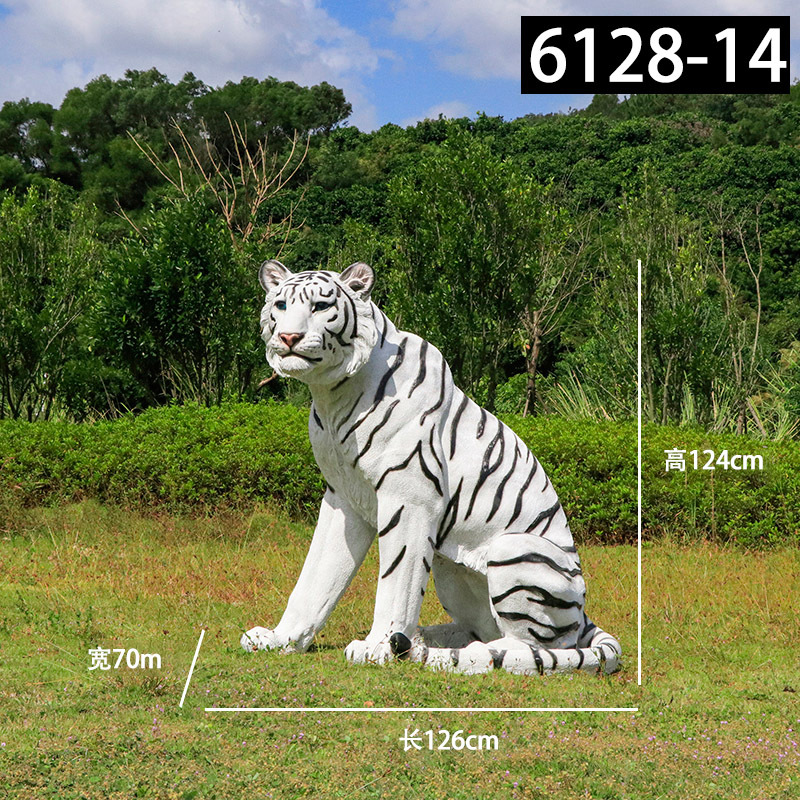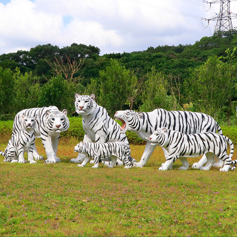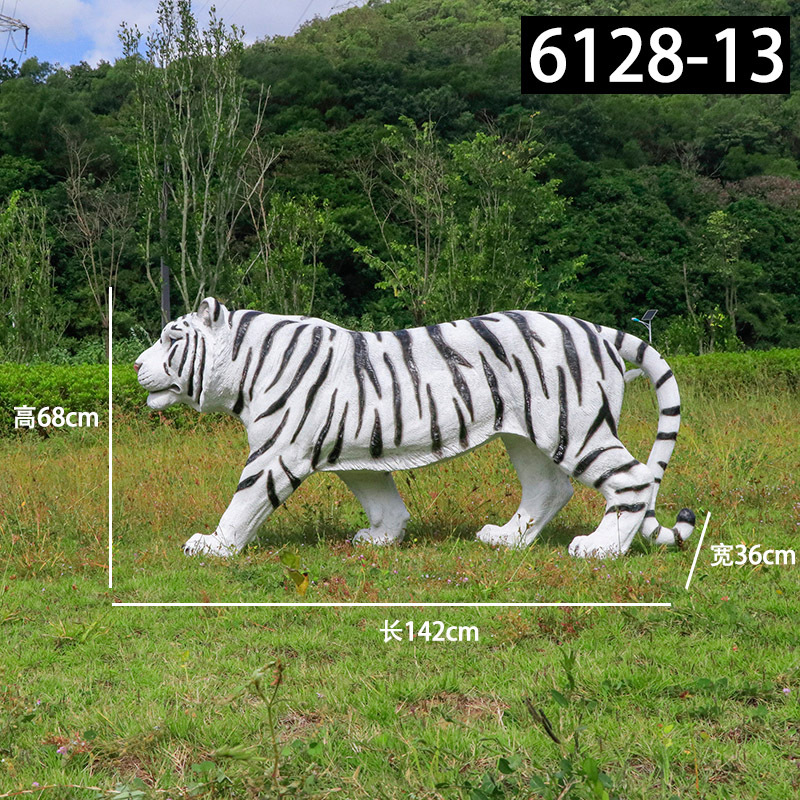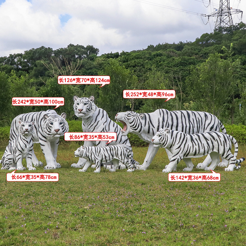 户外园林仿真老虎雕塑玻璃钢白虎摆件公园景区动物园模型景观装饰