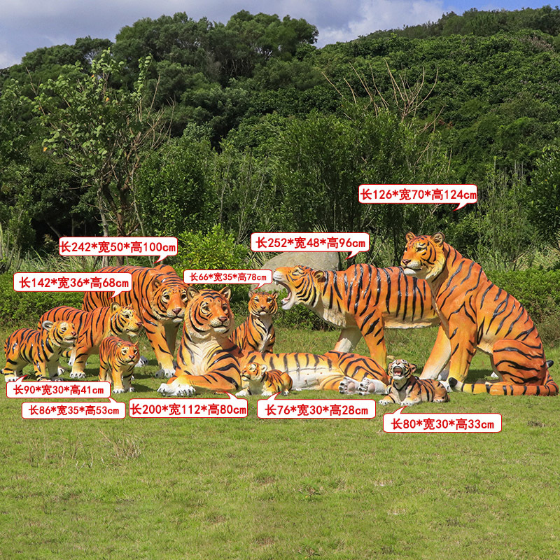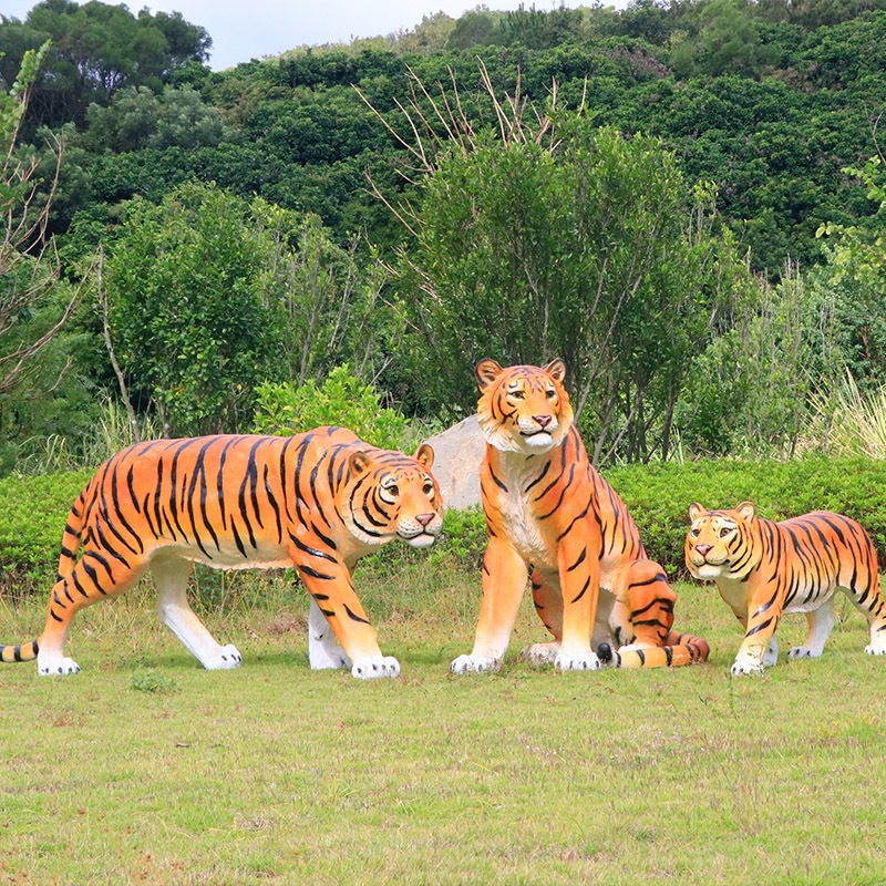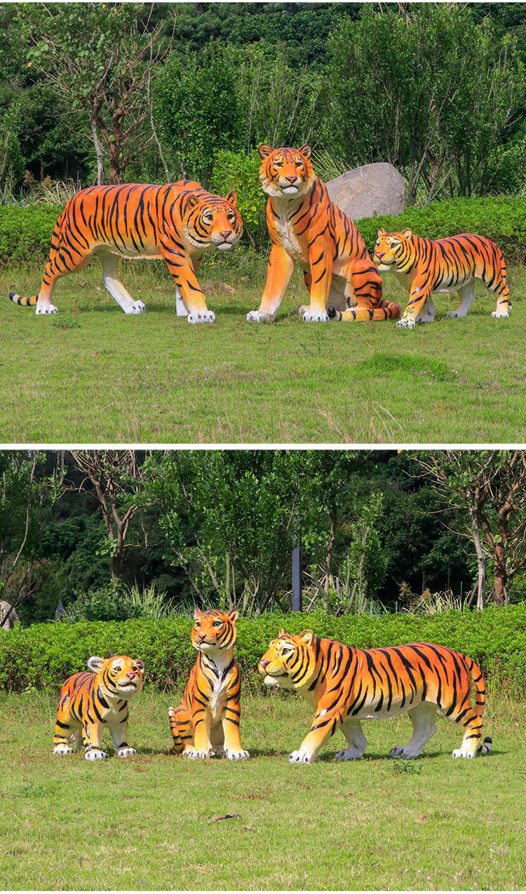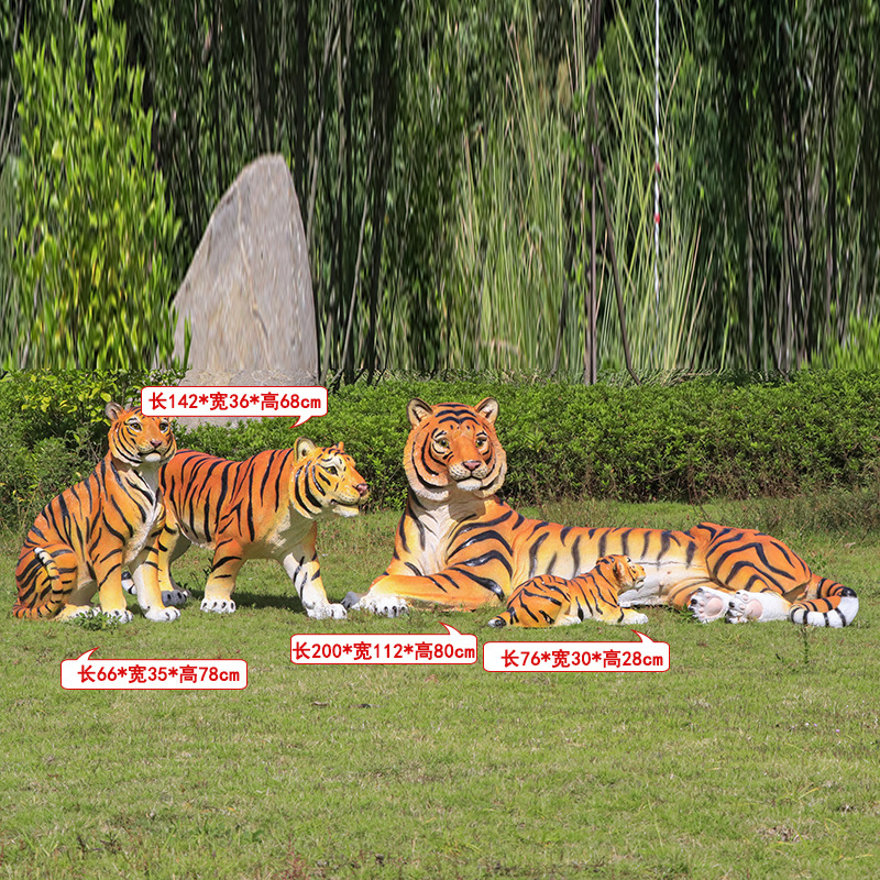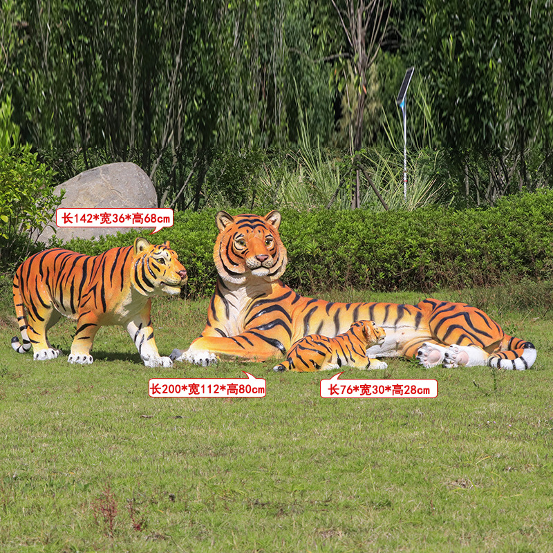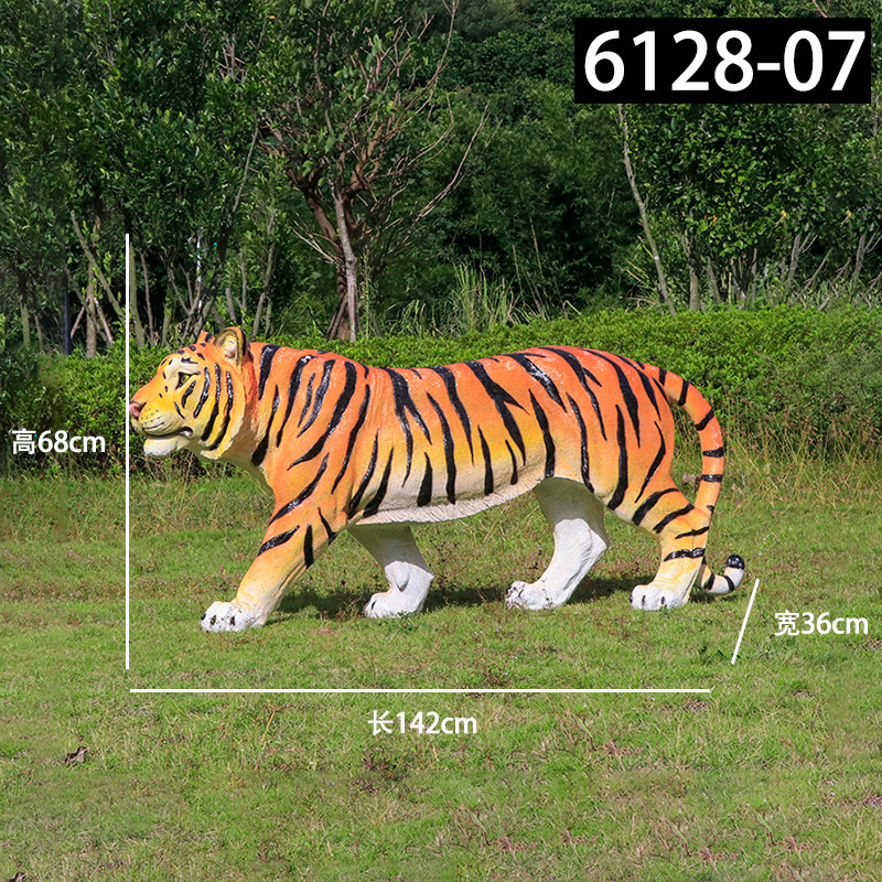 户外园林仿真老虎雕塑玻璃钢白虎摆件公园景区动物园模型景观装饰