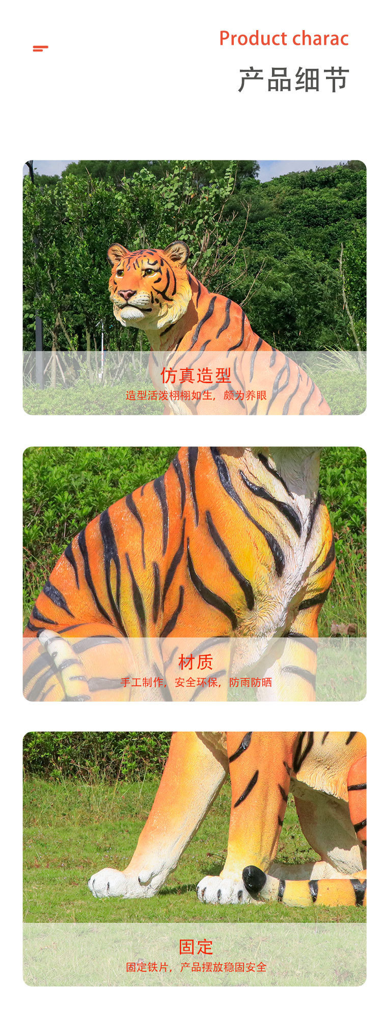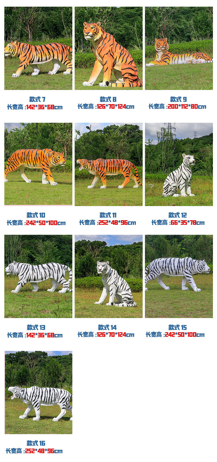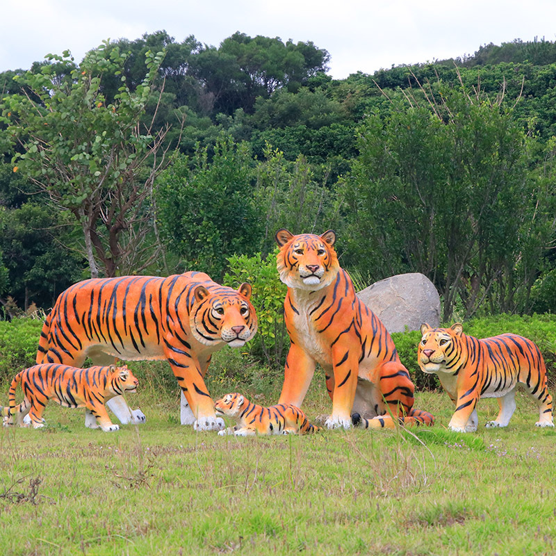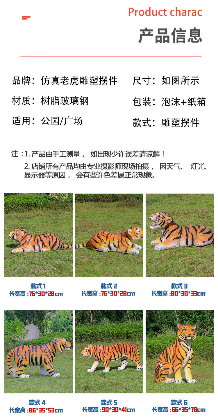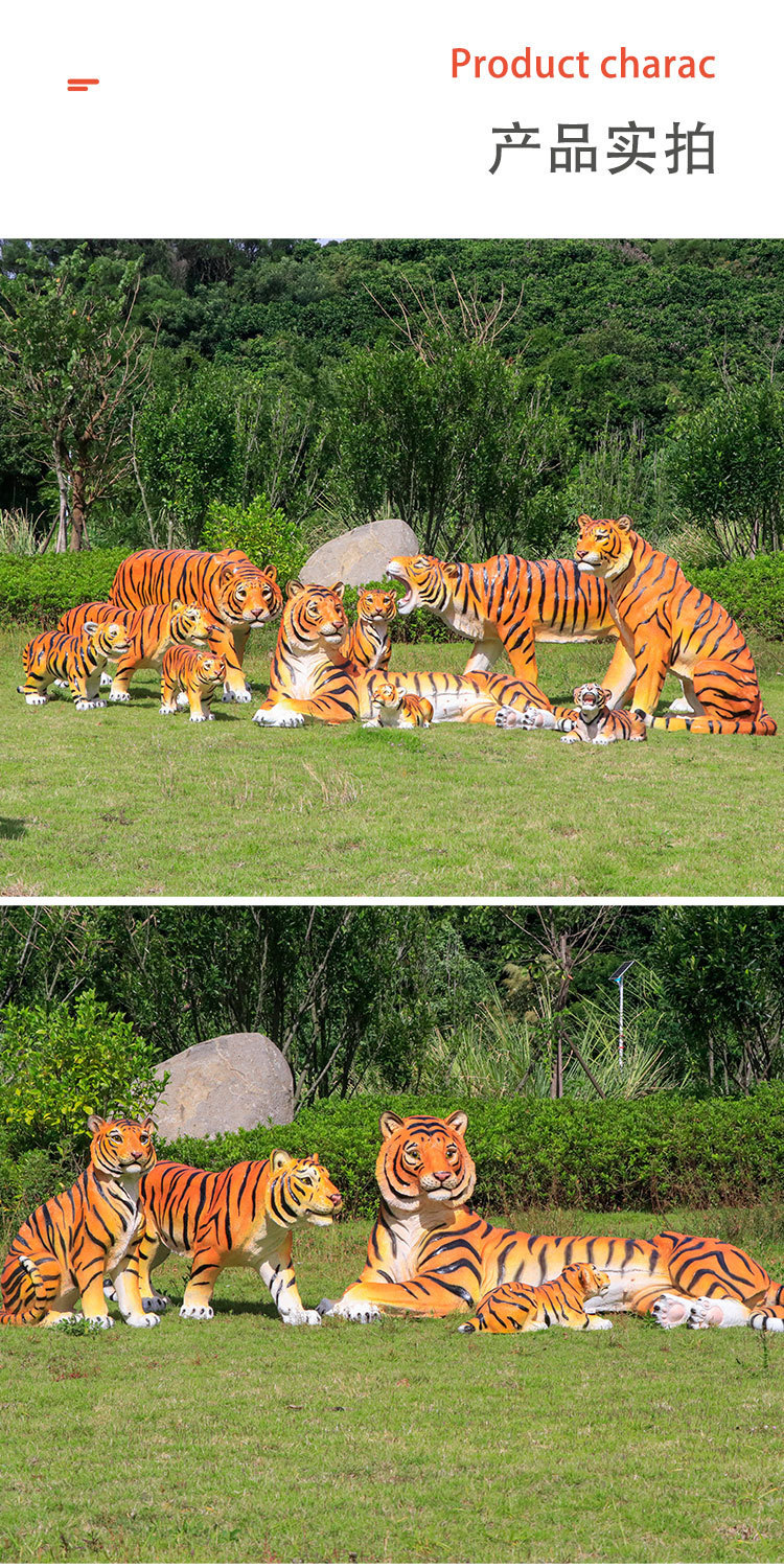 户外园林仿真老虎雕塑玻璃钢白虎摆件公园景区动物园模型景观装饰