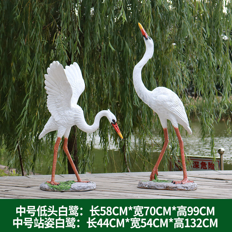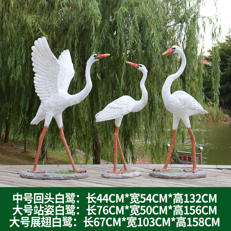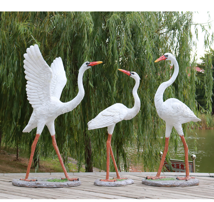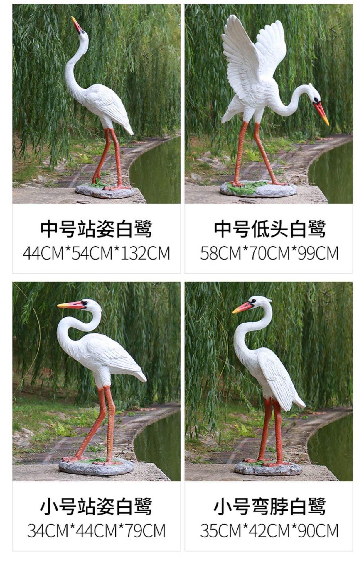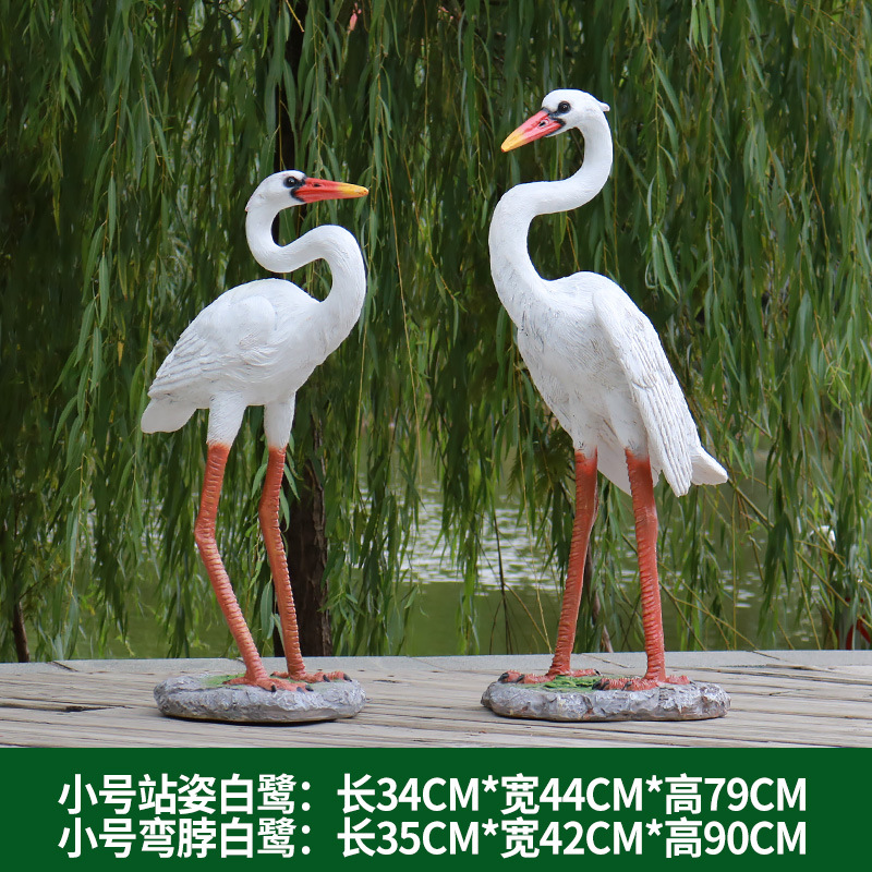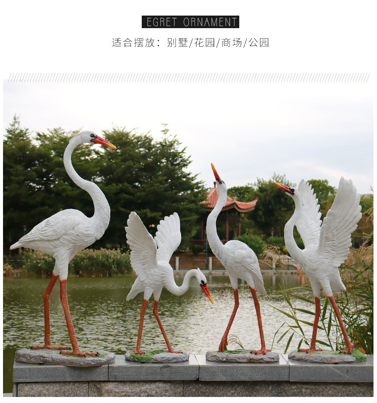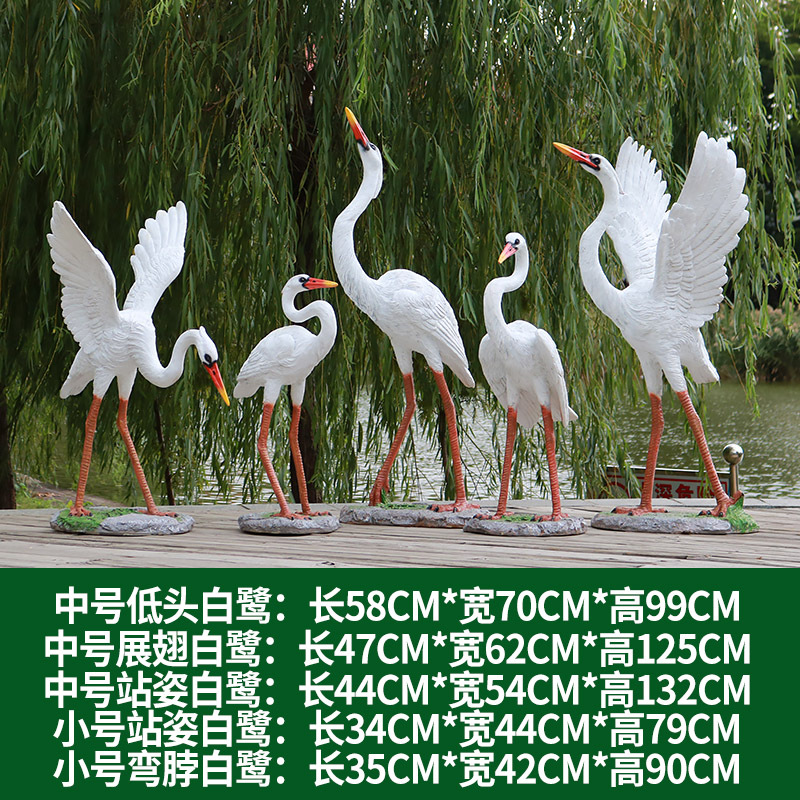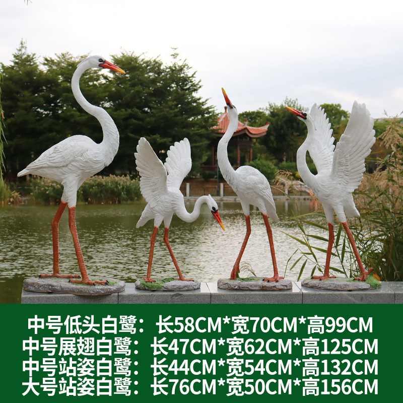 仿真白鹭摆件户外园林动物玻璃钢仙鹤丹顶鹤雕塑花园庭院水景装饰