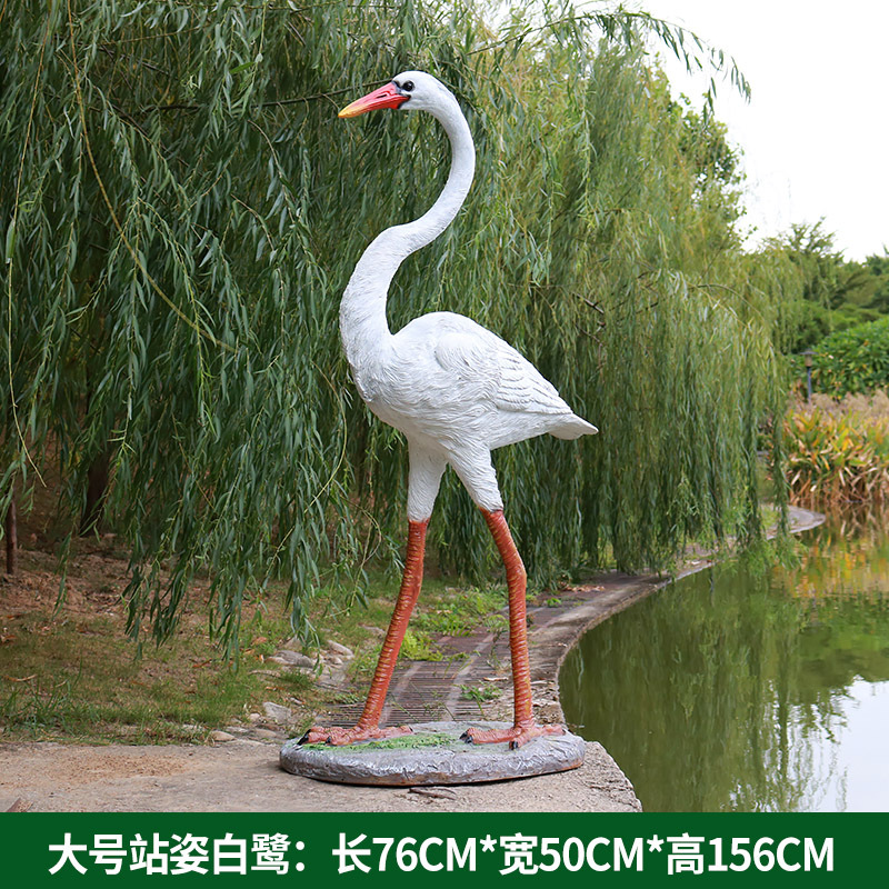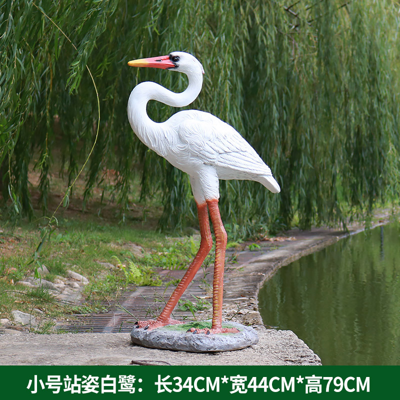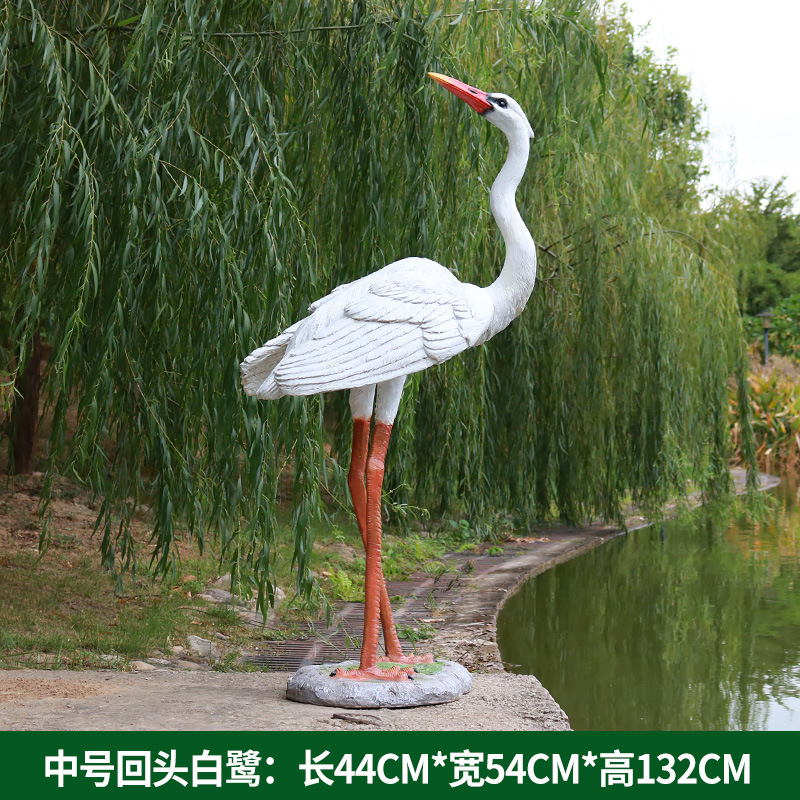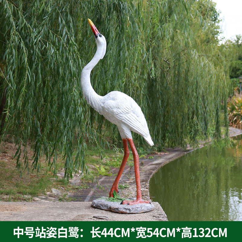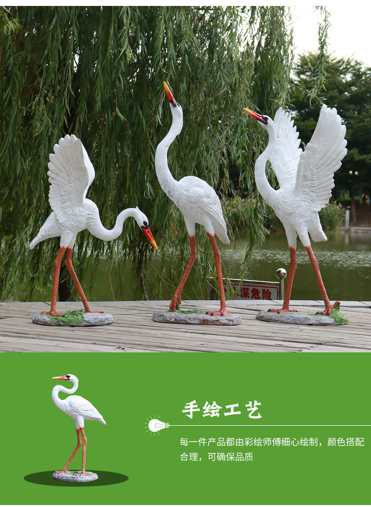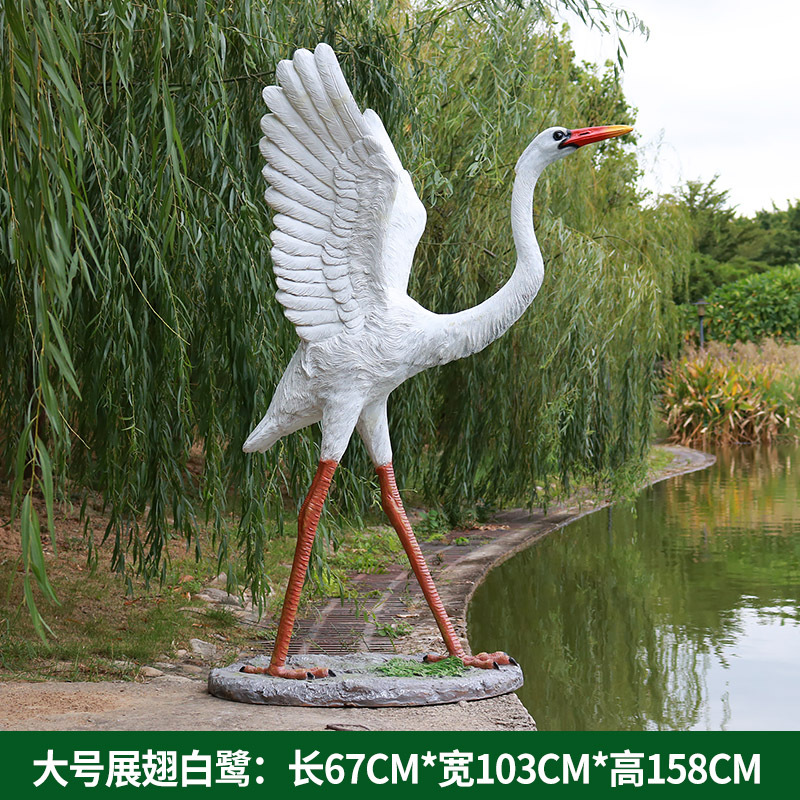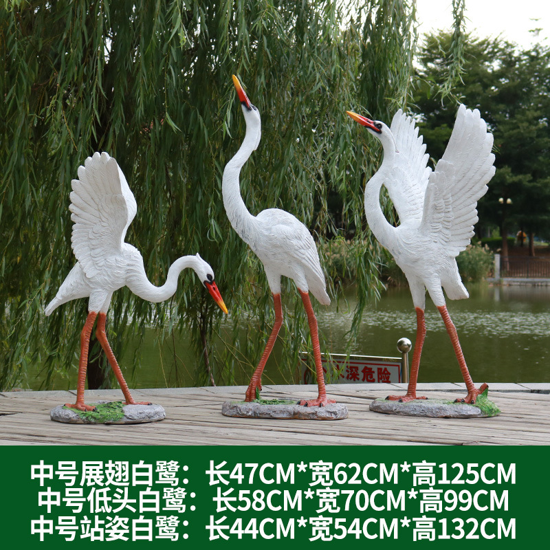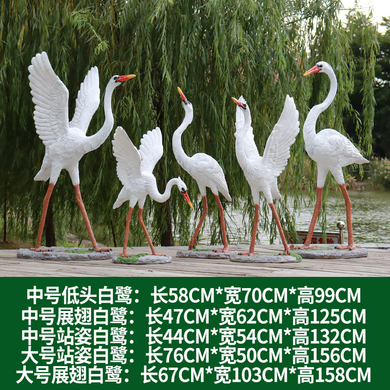 仿真白鹭摆件户外园林动物玻璃钢仙鹤丹顶鹤雕塑花园庭院水景装饰